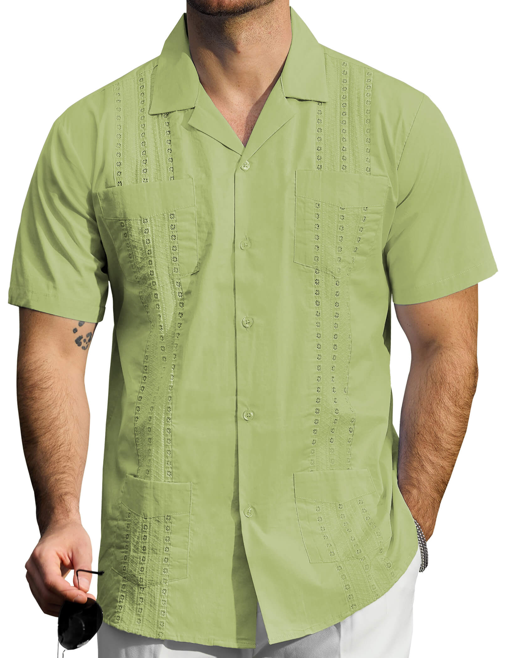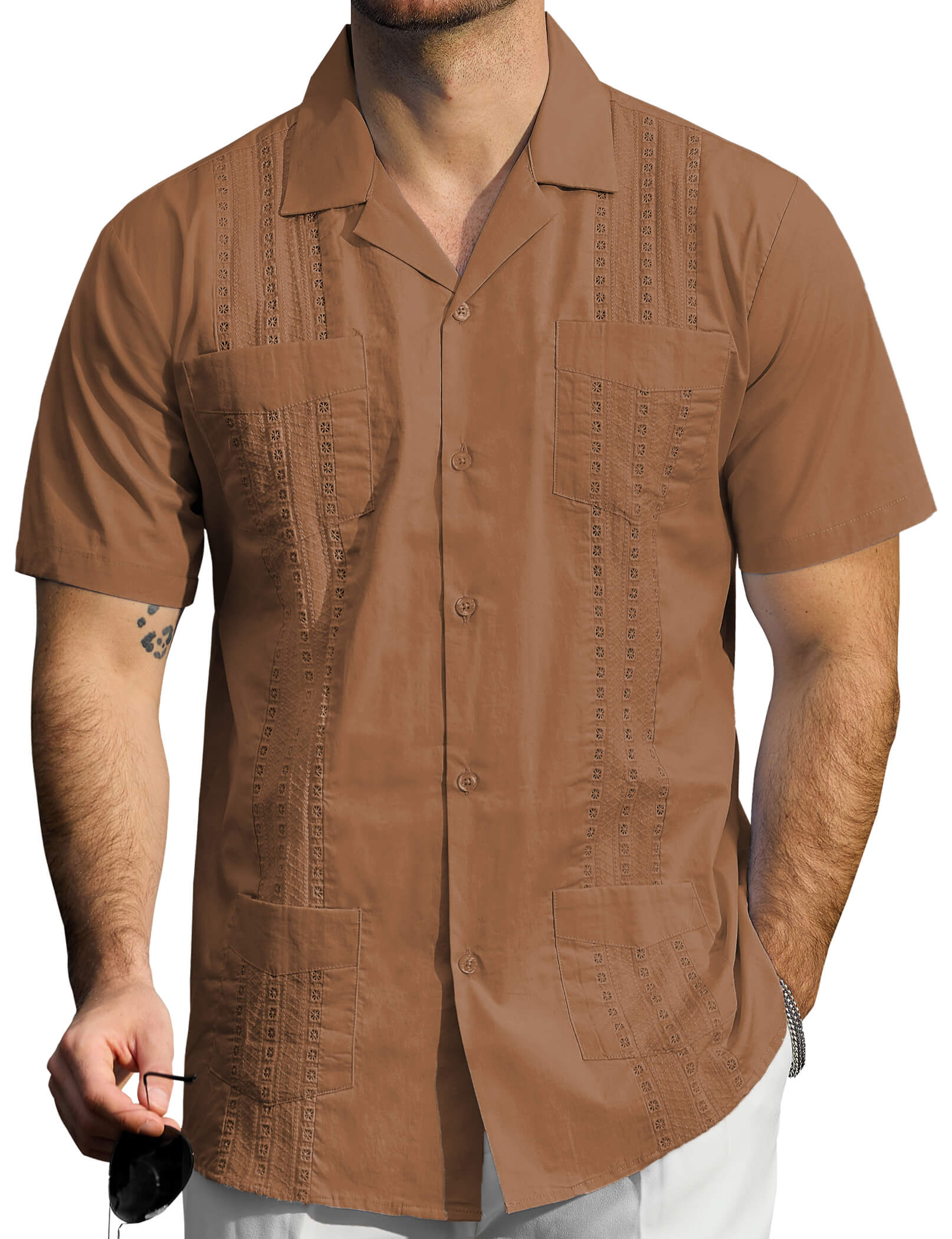 Men's Guayabera Cuban Short Sleeve Casual Button Beach Shirt