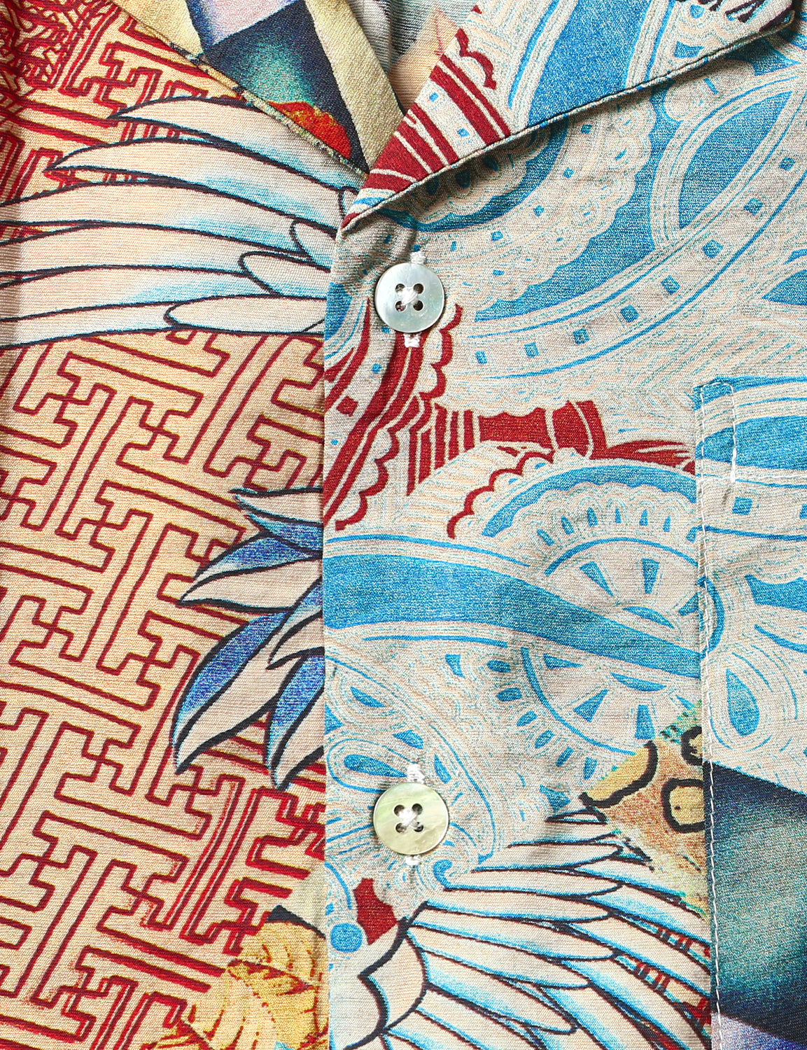 - A vibrant print adds tropical appeal to this casual aloha shirt with unique vintage pattern.