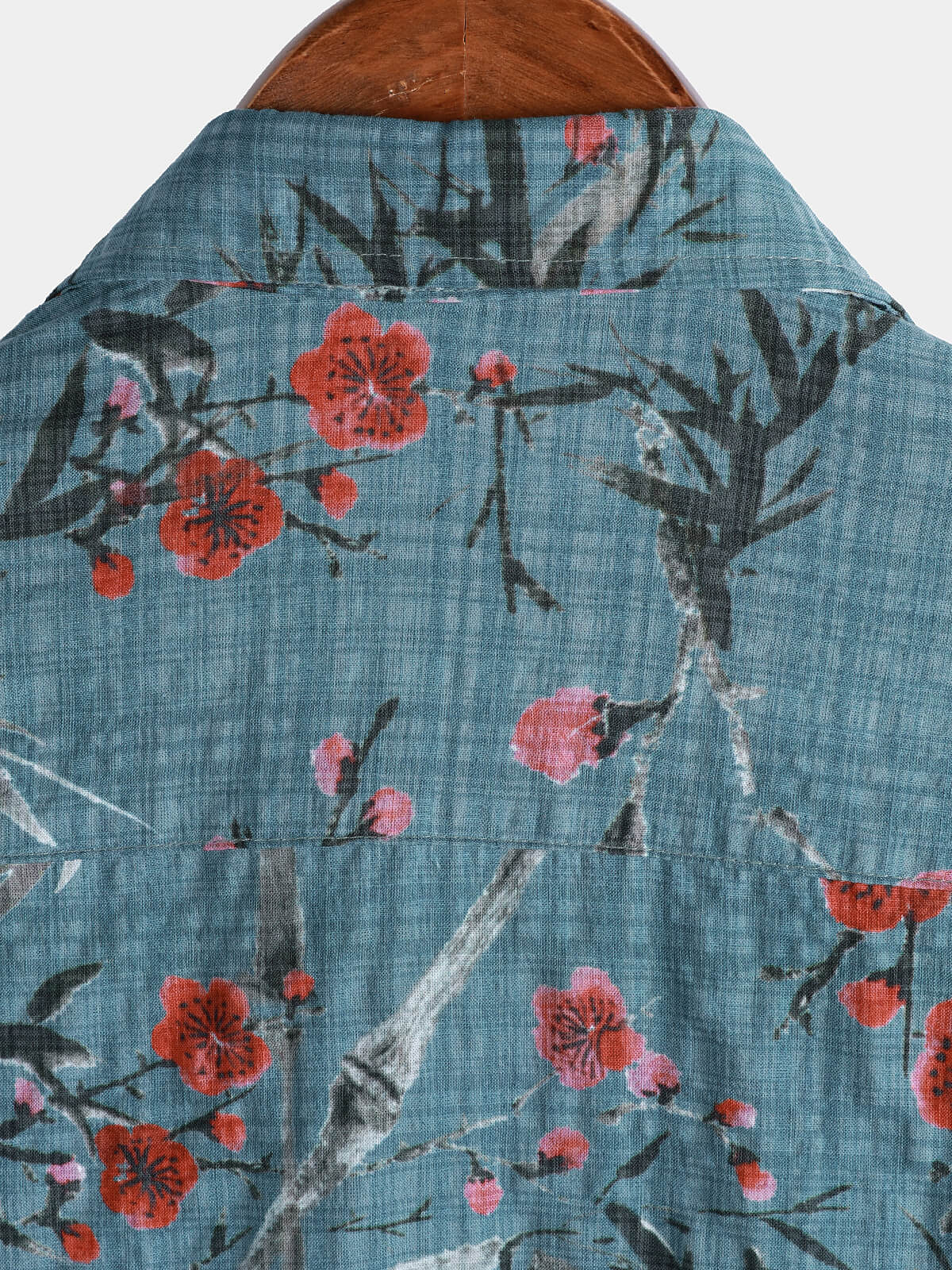Men's Blossom Print Summer Holiday Short Sleeve Shirt