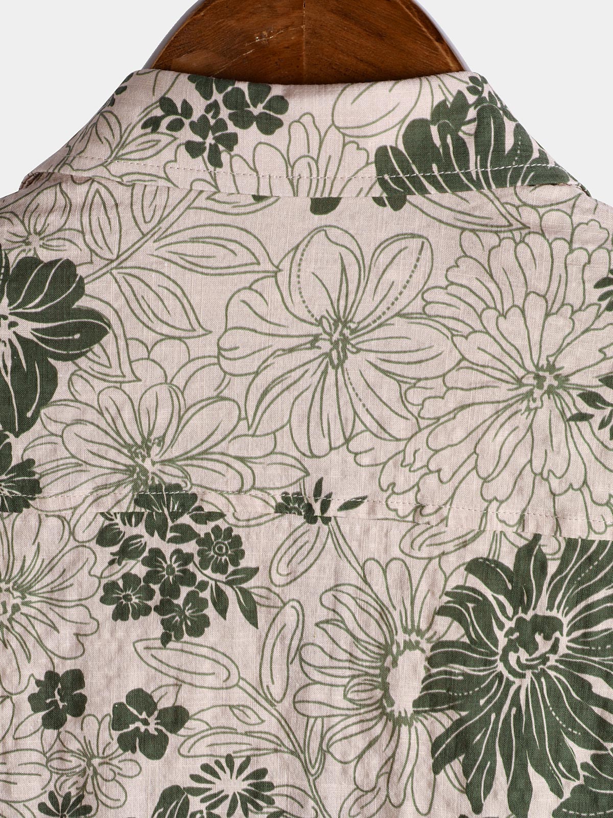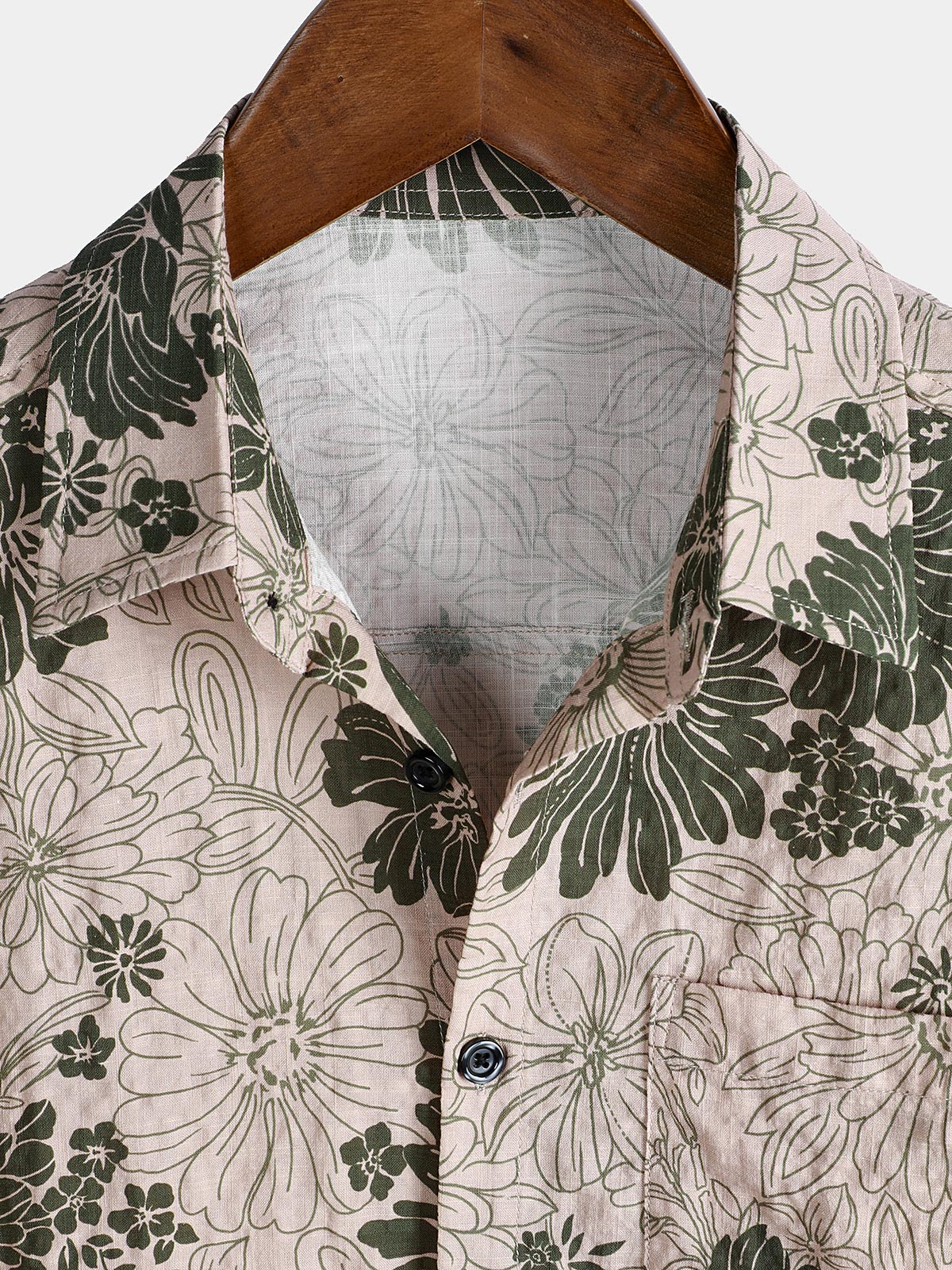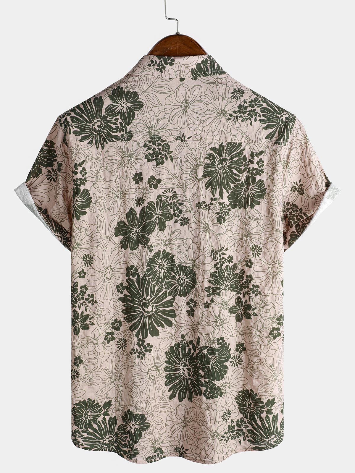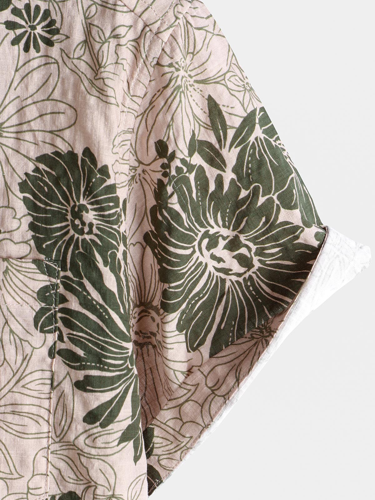 Men's Daisy Print Retro Pocket Resort Short Sleeve Shirt