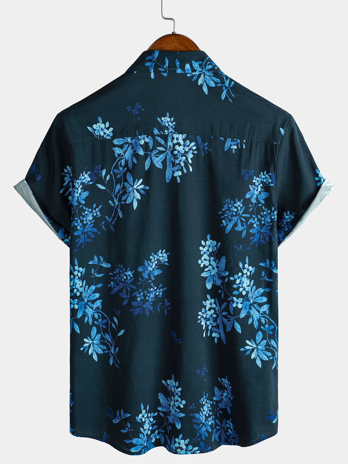 Men's Floral Holiday Hawaiian Short Sleeve Summer Beach Shirt