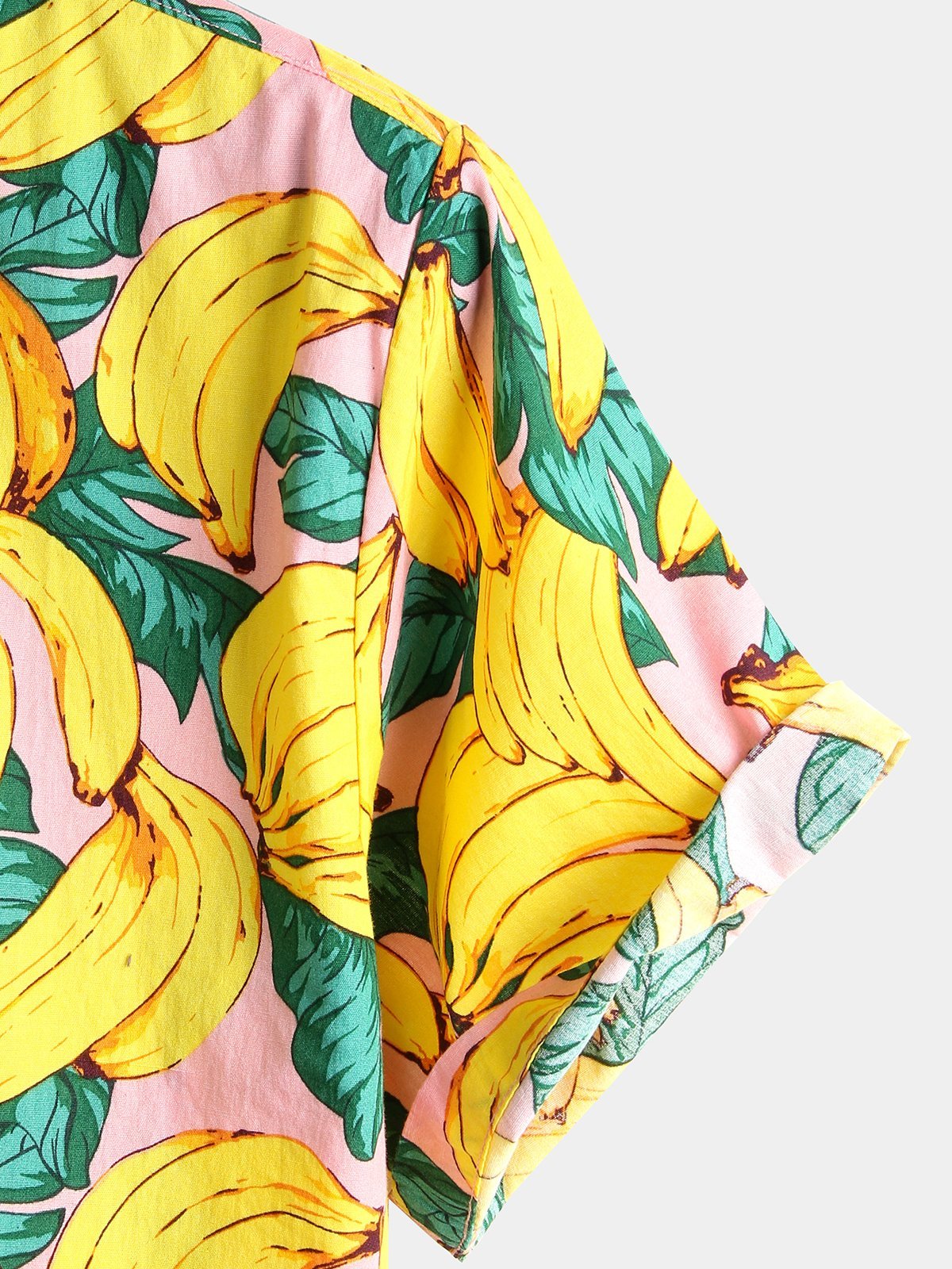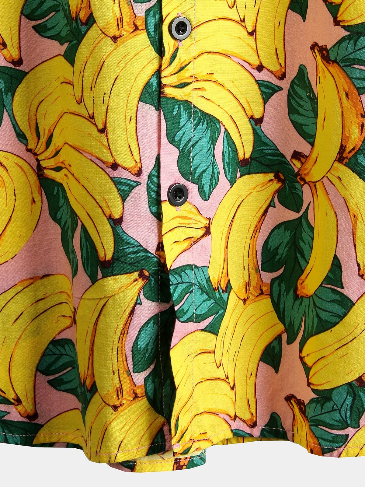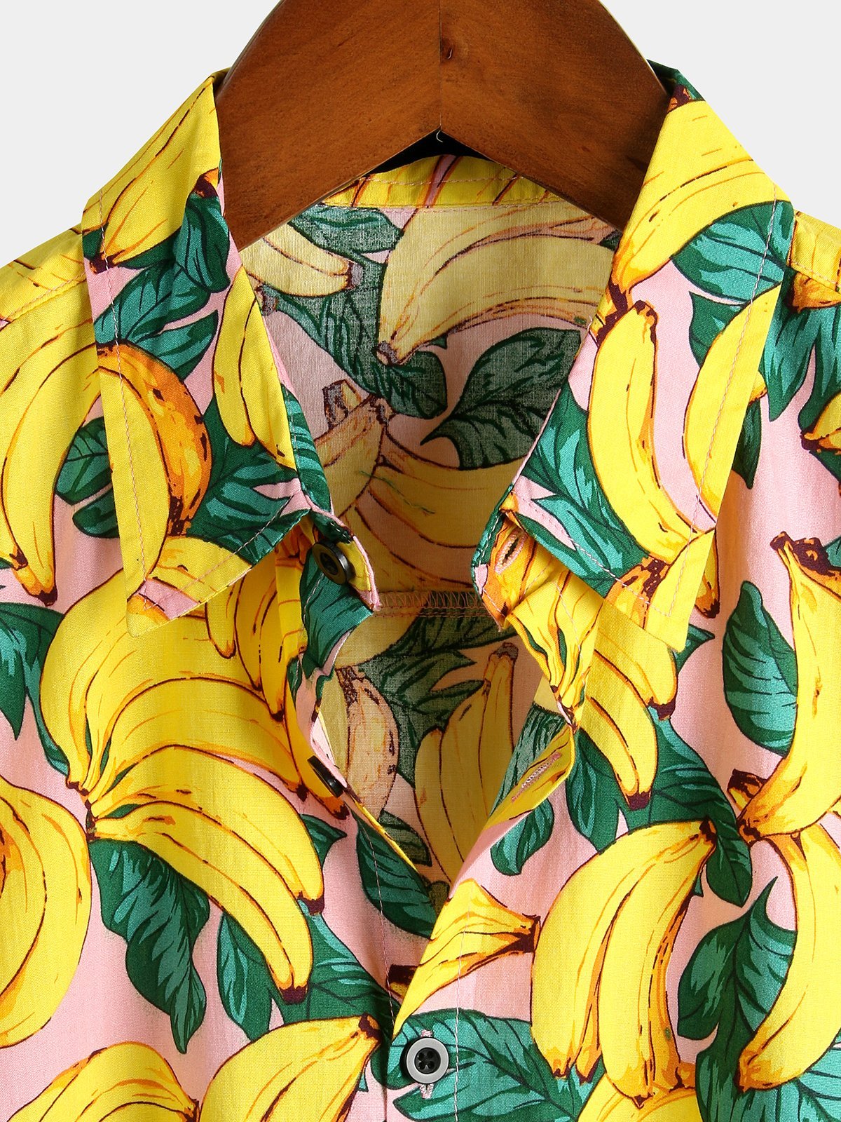 Men's Banana Cotton Yellow Fruit Print Tropical Hawaiian Aloha Shirt