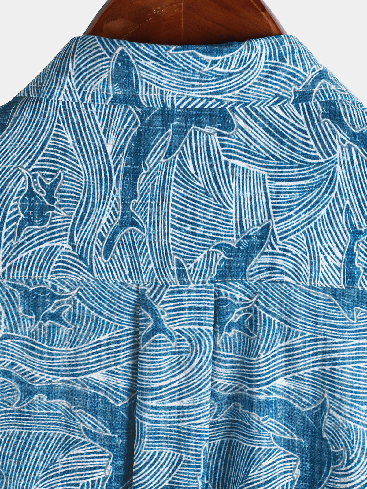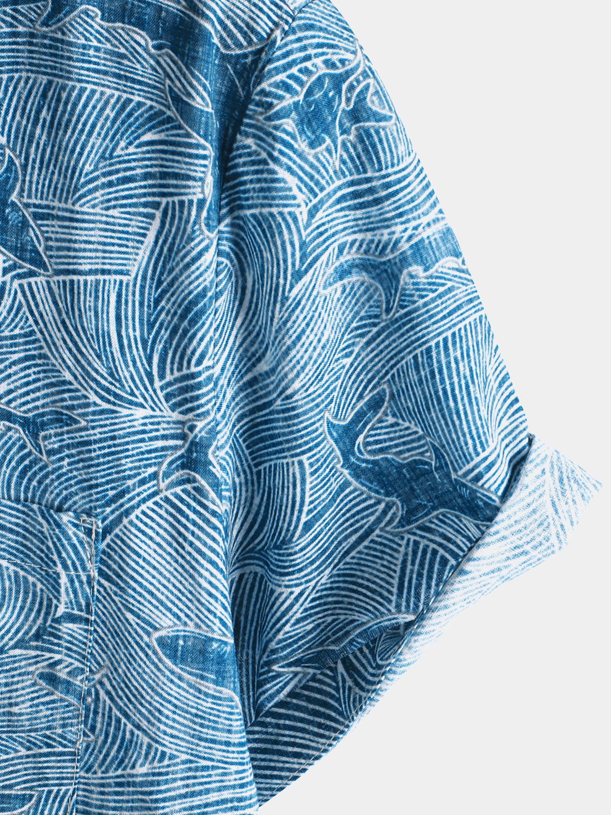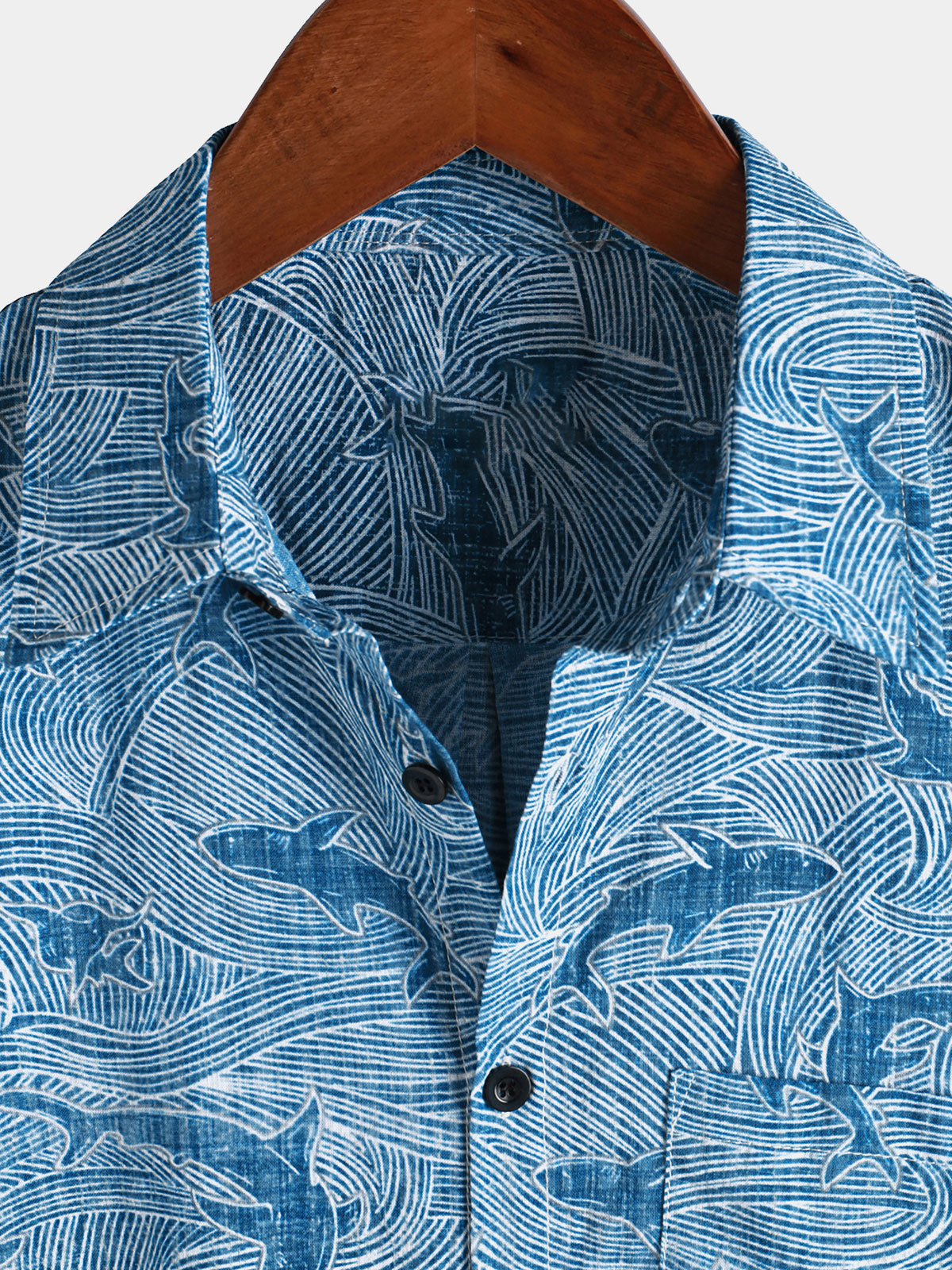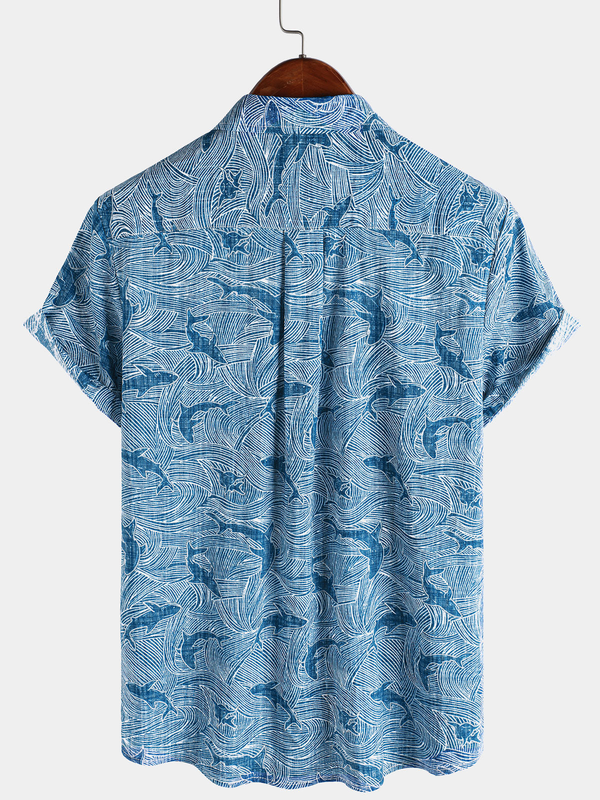 Men's Summer Ocean Shark Beach Hawaiian Short Sleeve Shirt