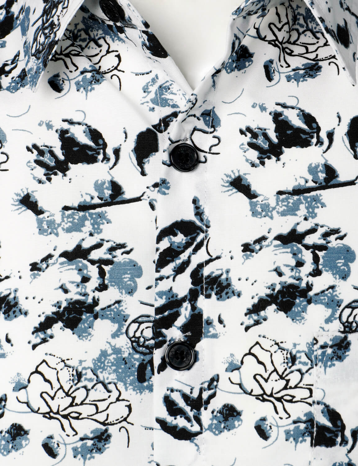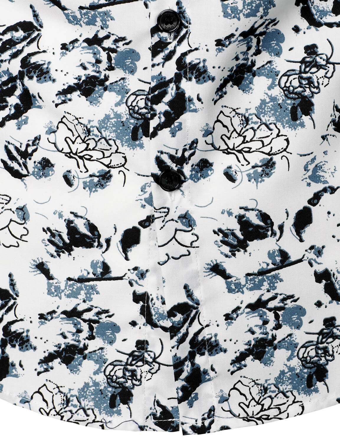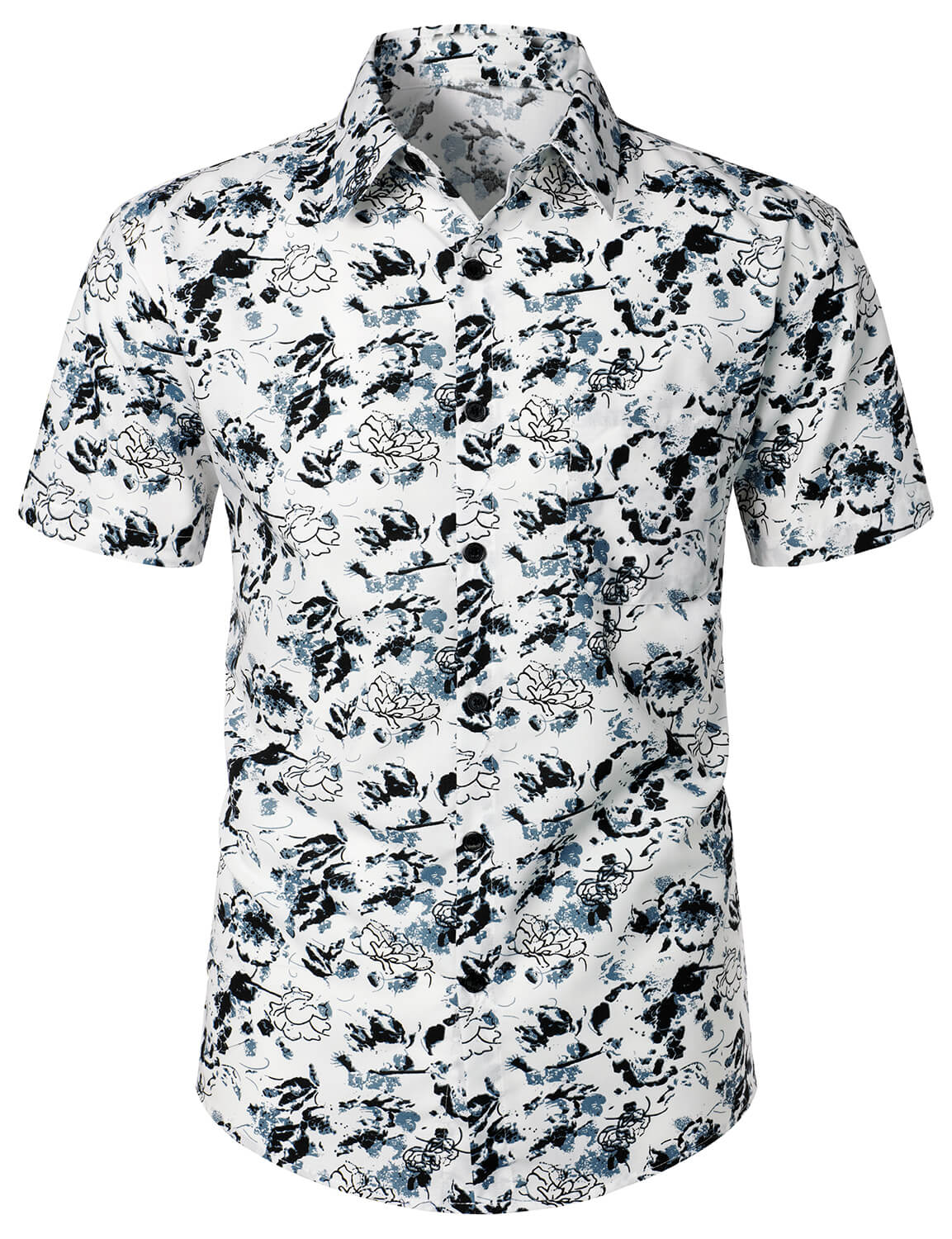 Men's White and Black Floral Summer Flower Button Up Cotton Short Sleeve Shirt