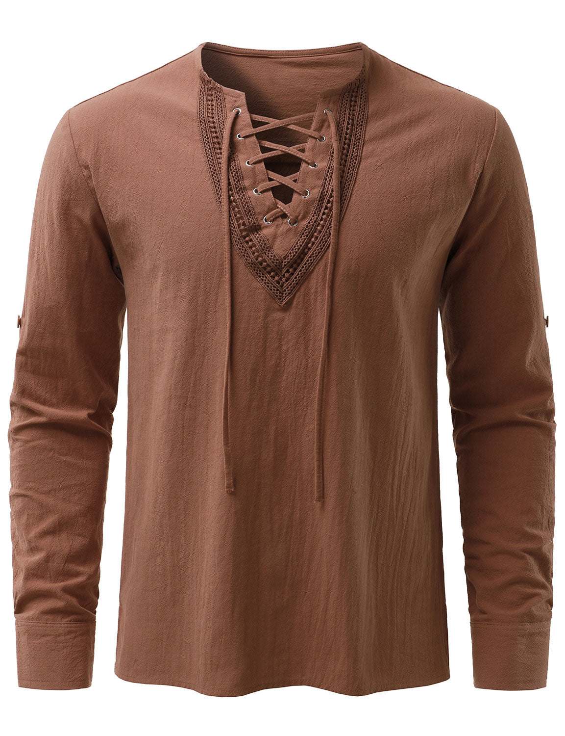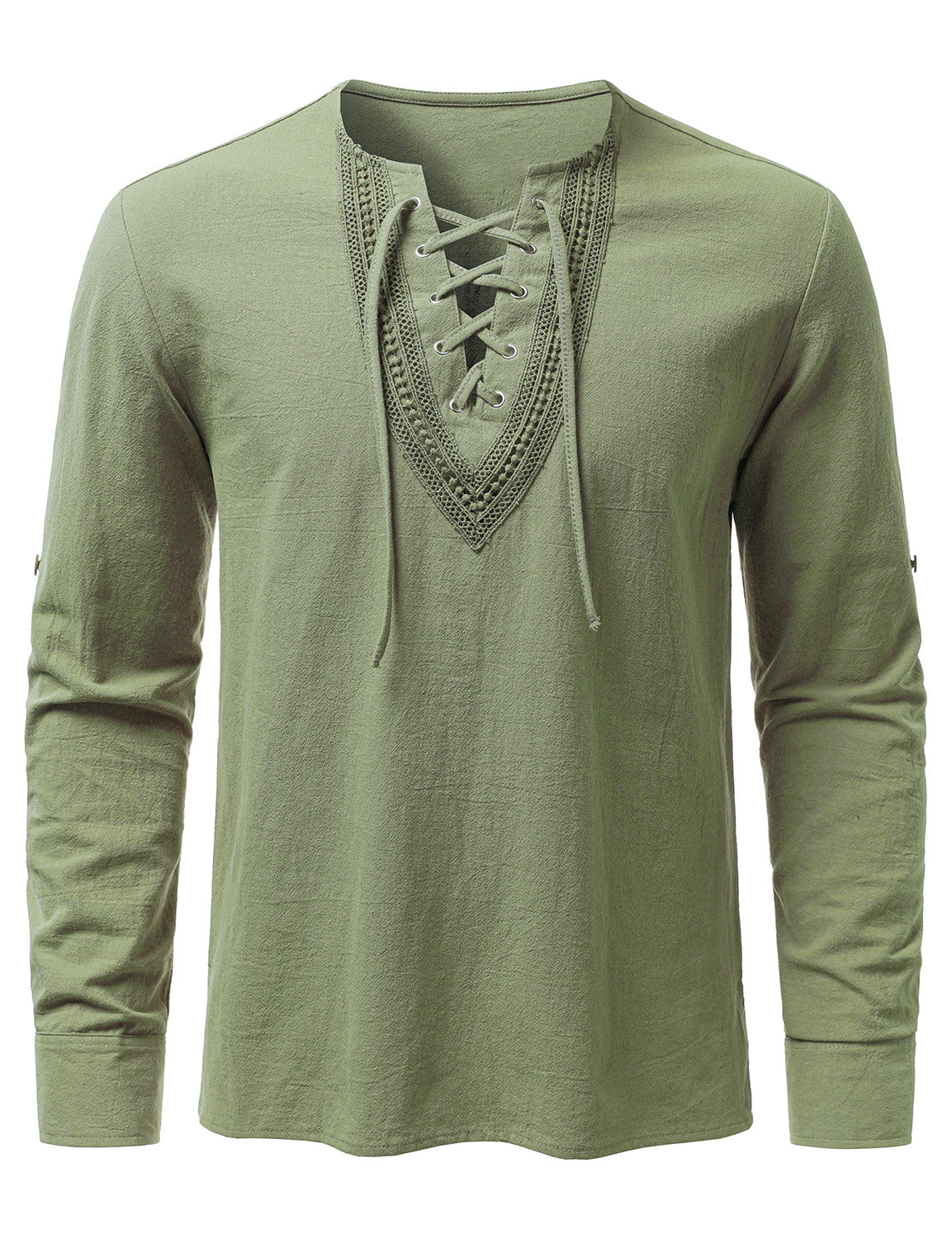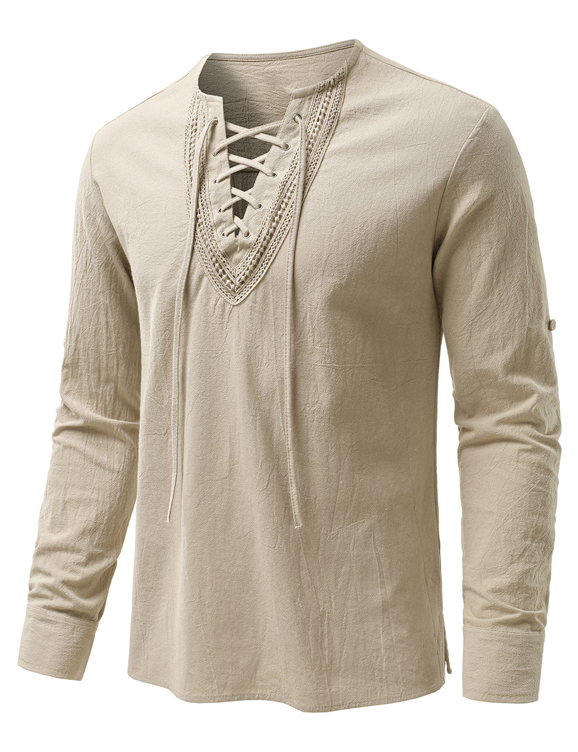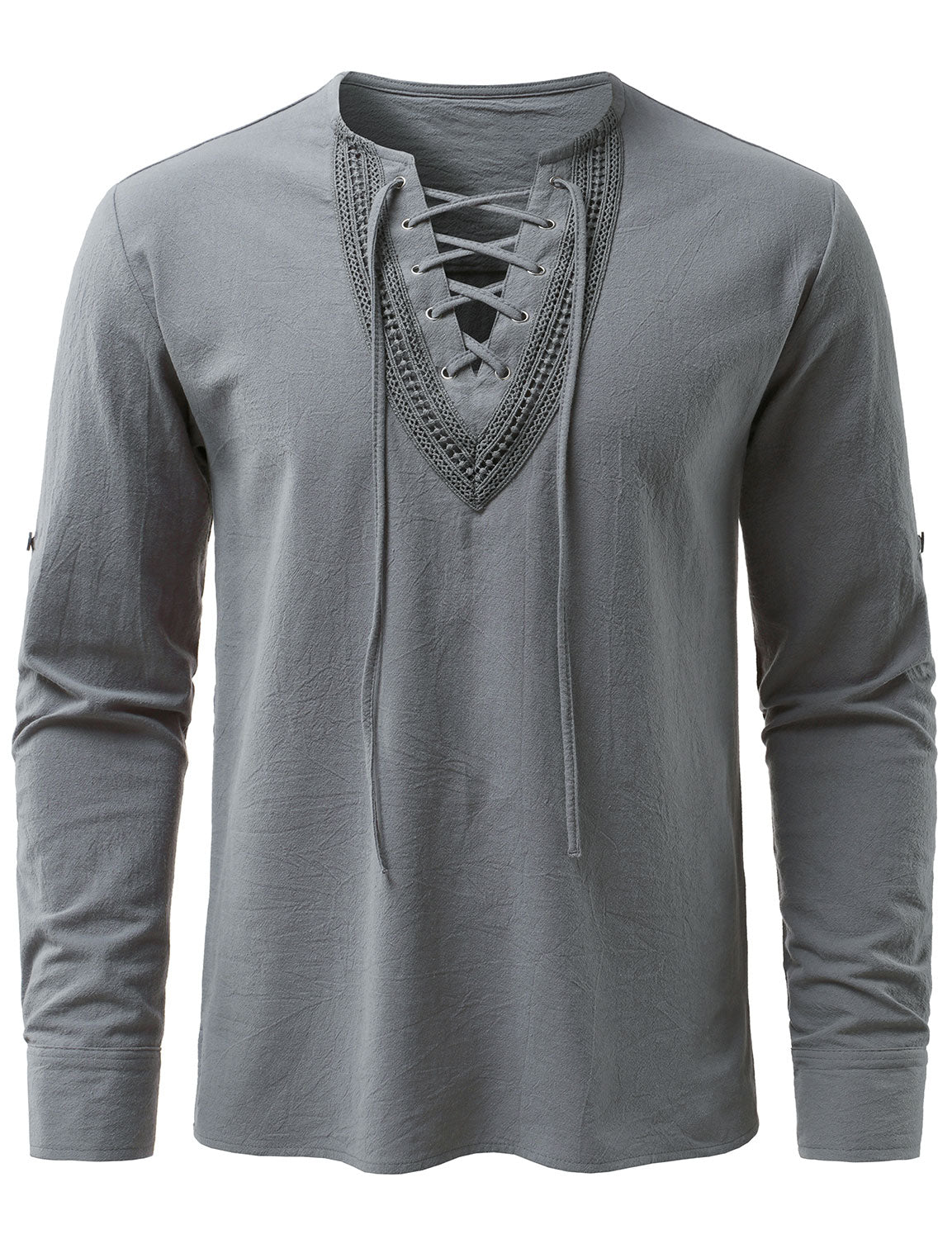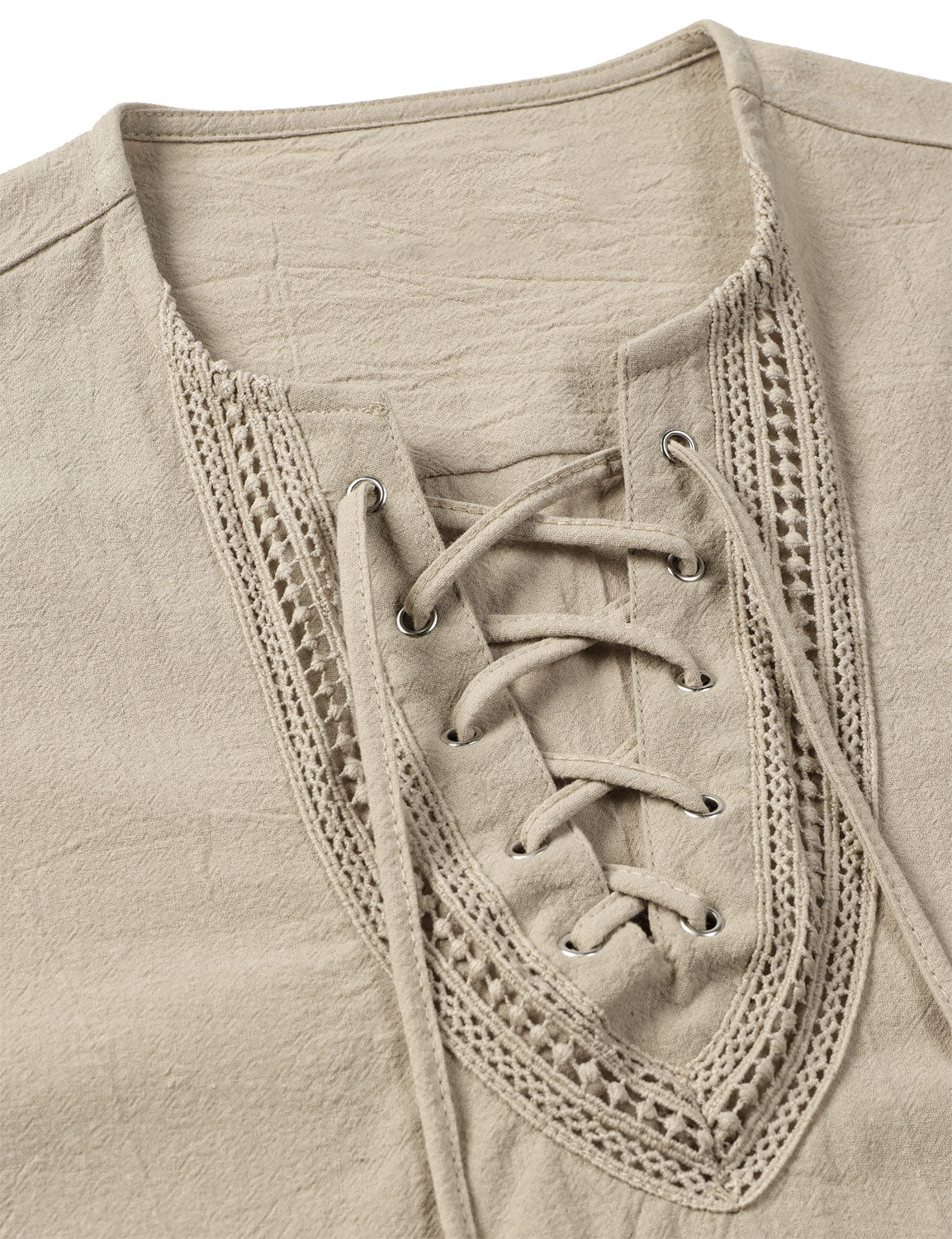 - Design: Medieval Pirate Style/ Retro Renaissance Shirts/ Viking Tunic/ Roll-up Sleeves/ Novel Lace V-neck Collar