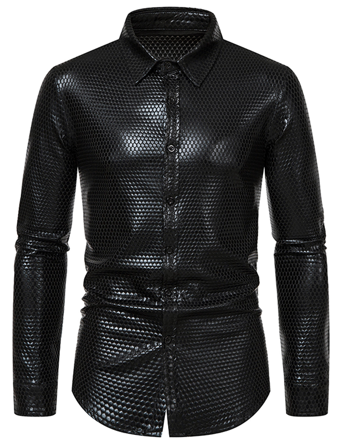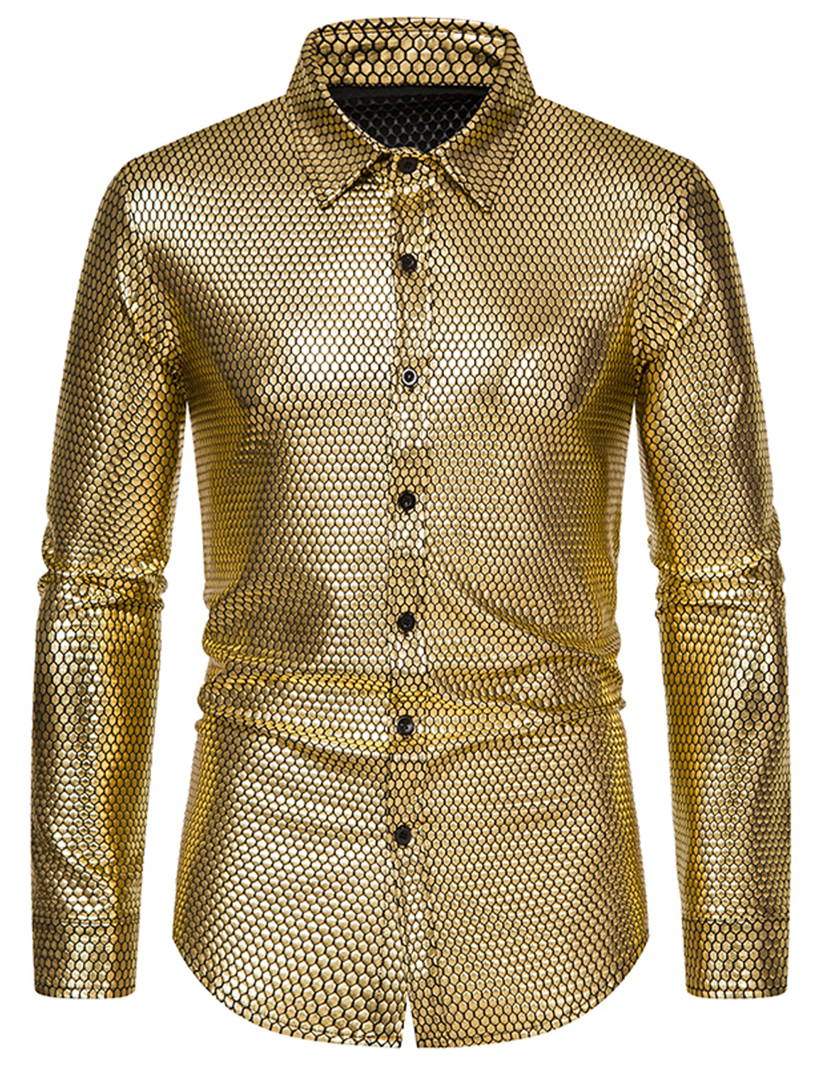 Men's 70's Disco Sequins Button Up Long Sleeve Costume Party Shirt