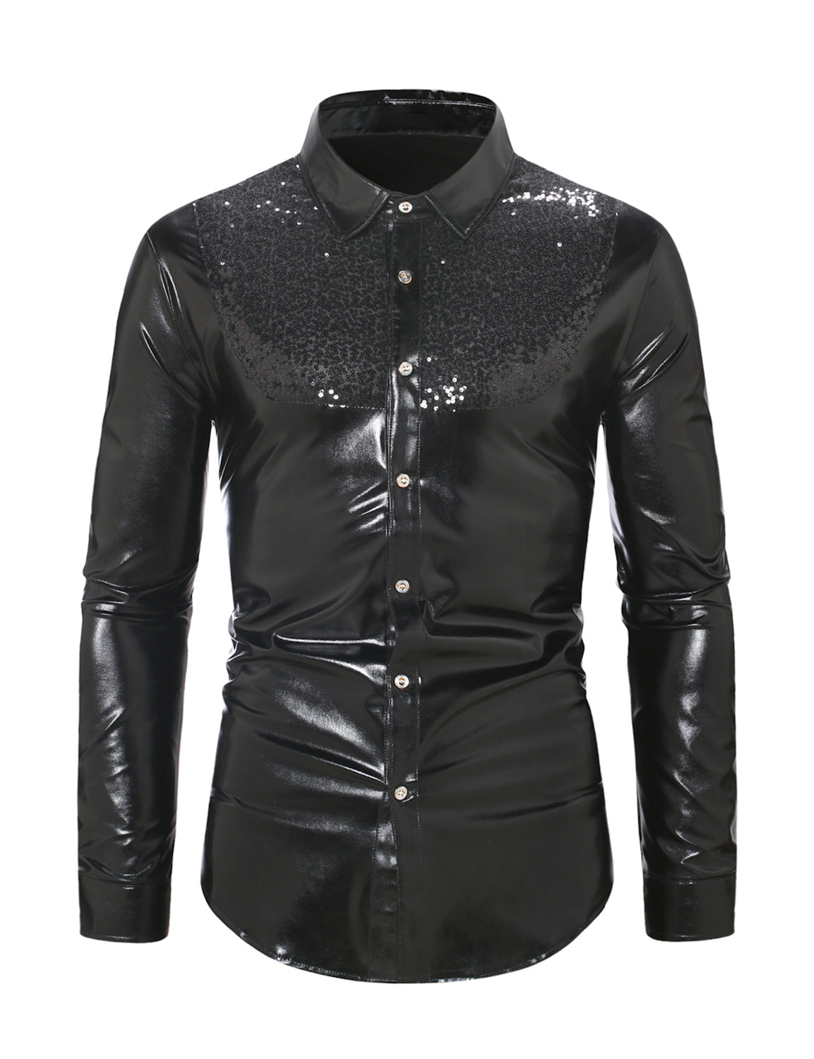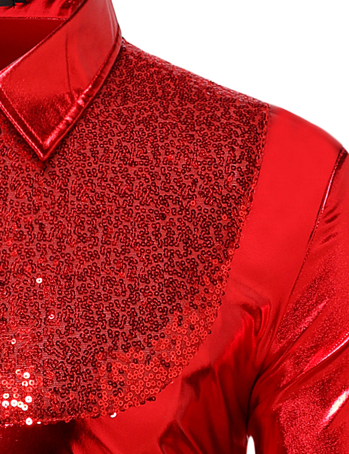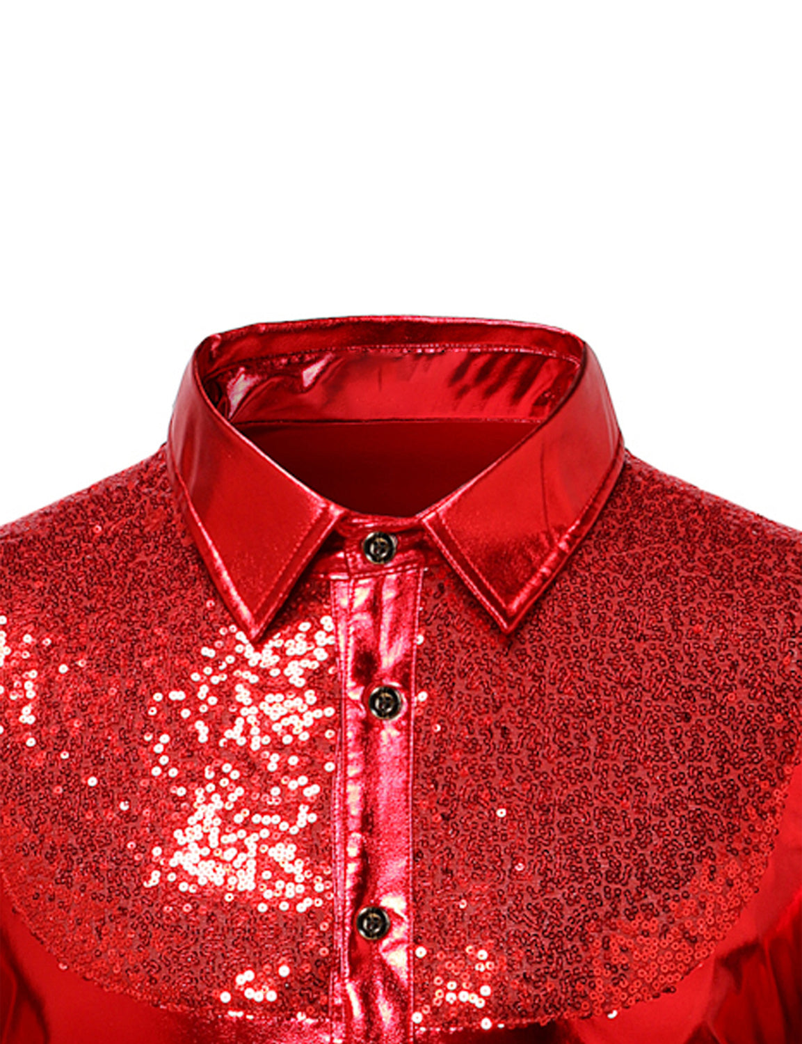 Men's Luxury Shiny Button Up Tuxedo Costume Long Sleeve Party Dress Shirt