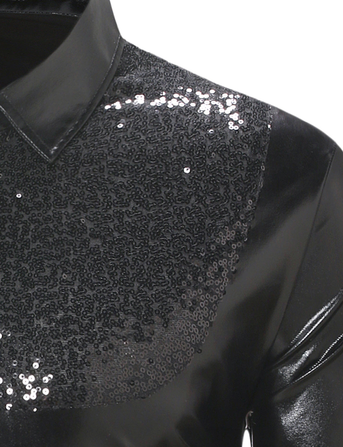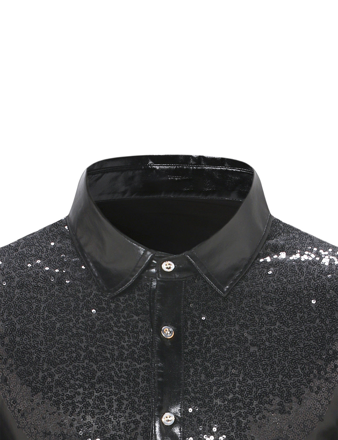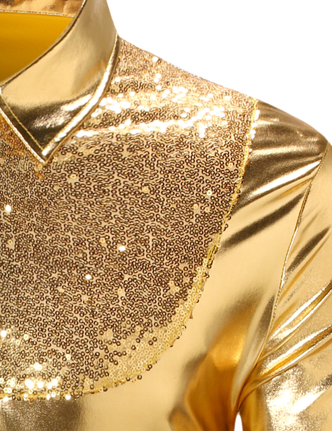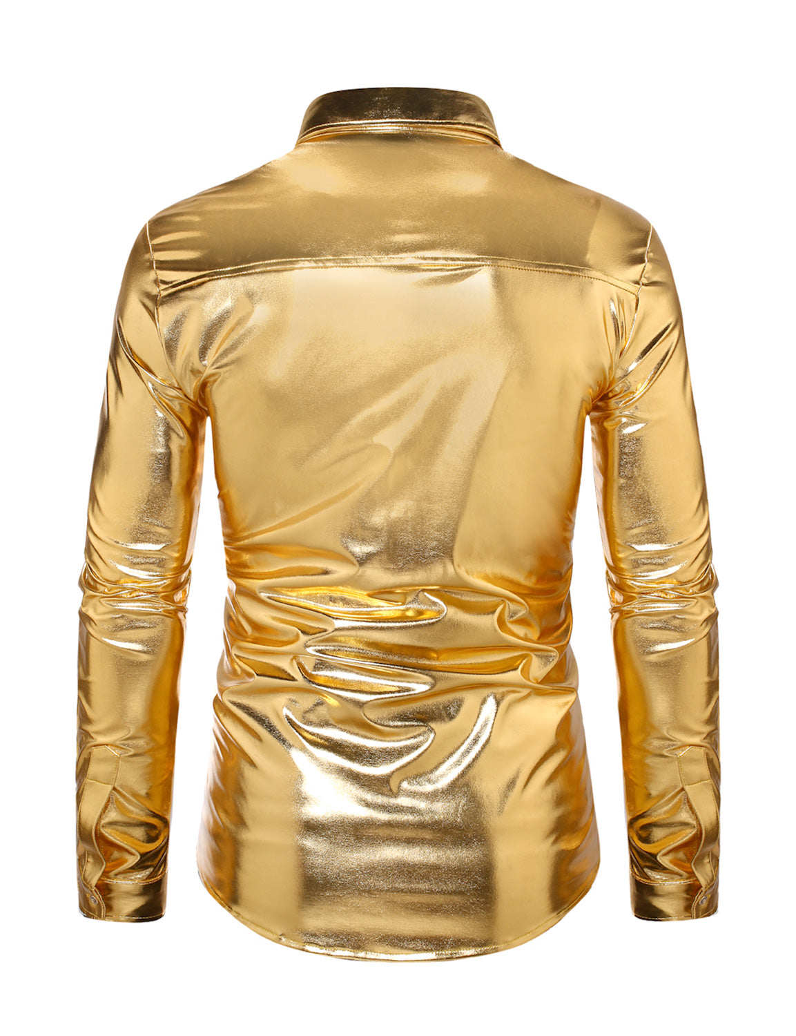 Men's Luxury Shiny Button Up Tuxedo Costume Long Sleeve Party Dress Shirt