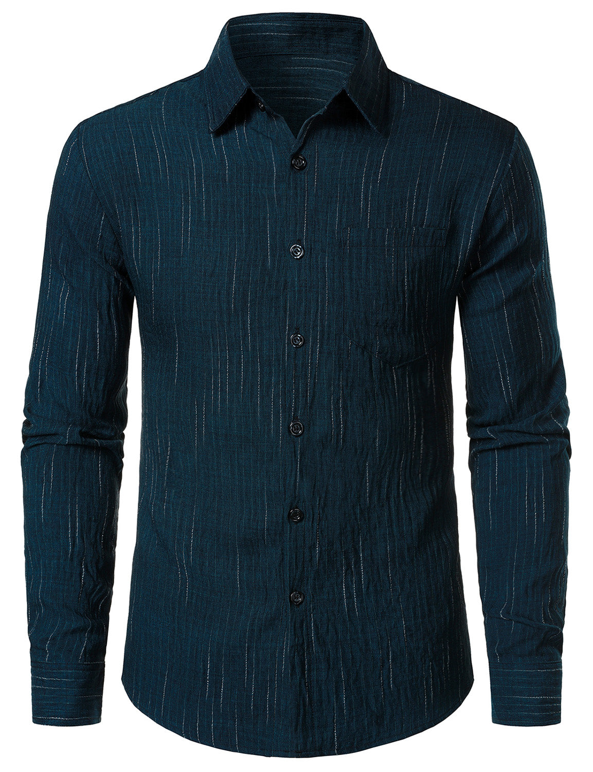 Men's Navy Blue Casual Button Long Sleeve Shirt