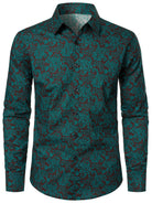 Men's Paisley Floral Green Cotton Long Sleeve Shirt