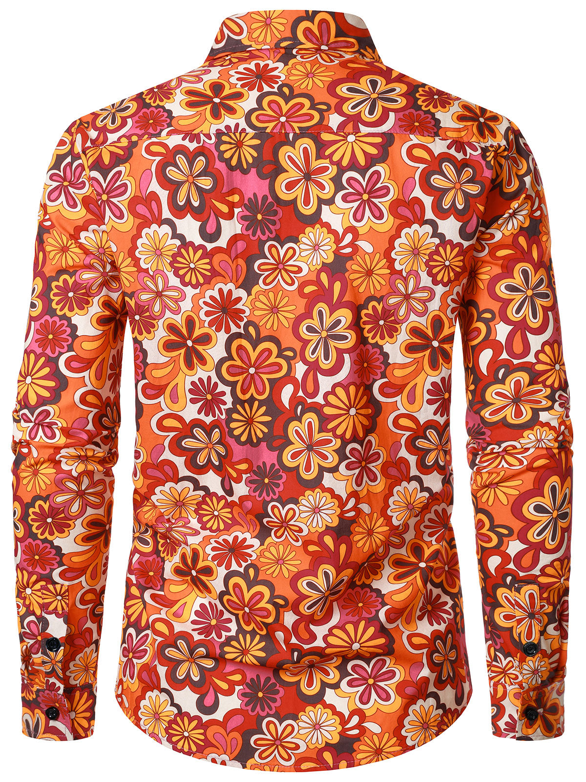 Men's Vintage 70s Floral Print Disco Long Sleeve Shirt