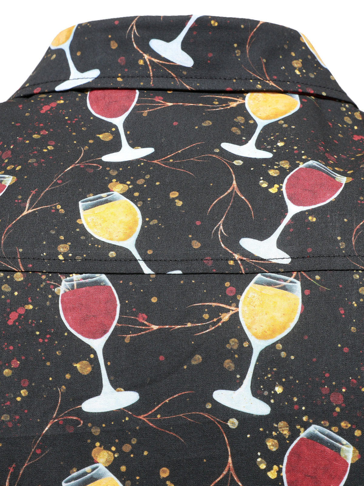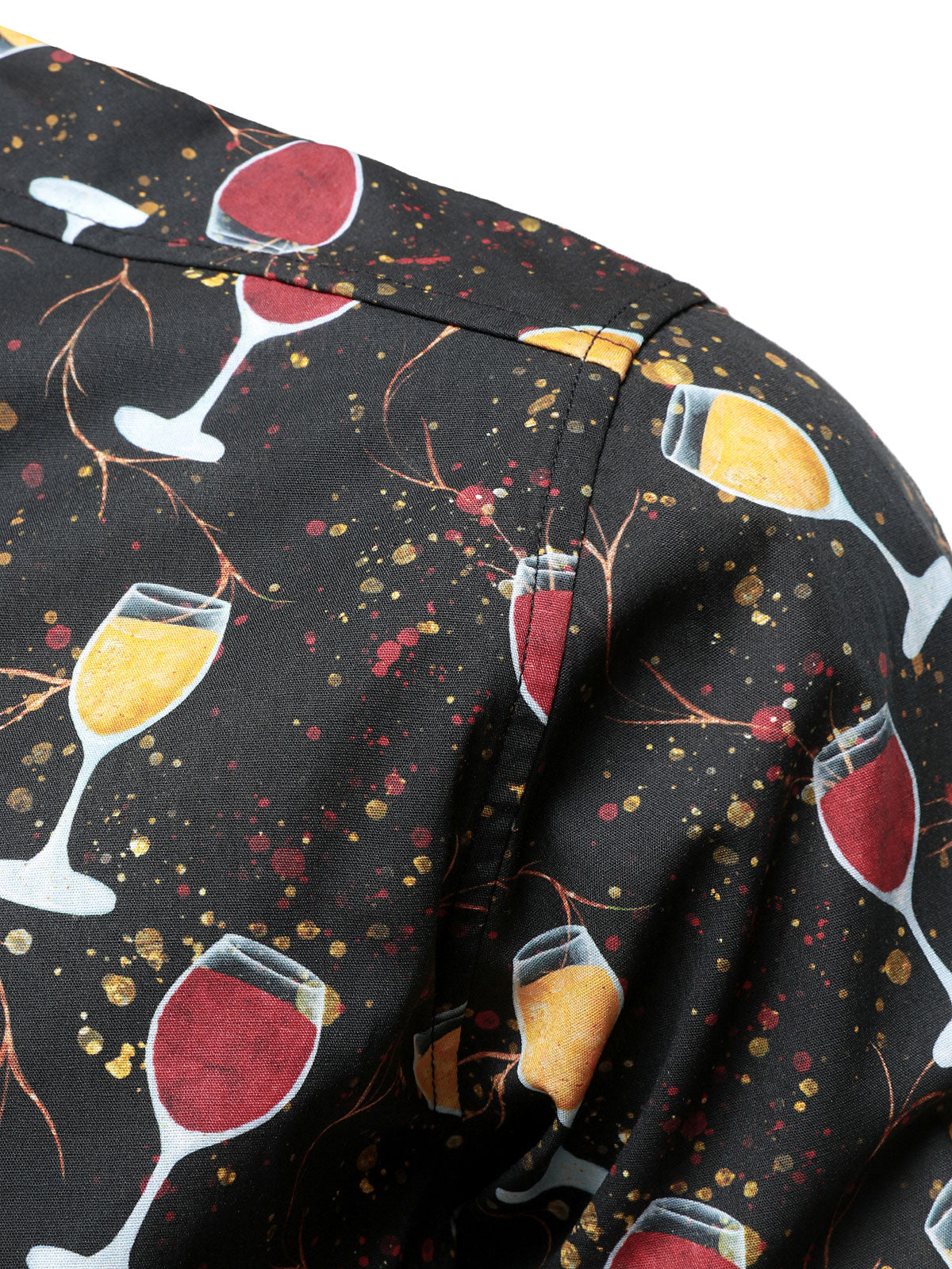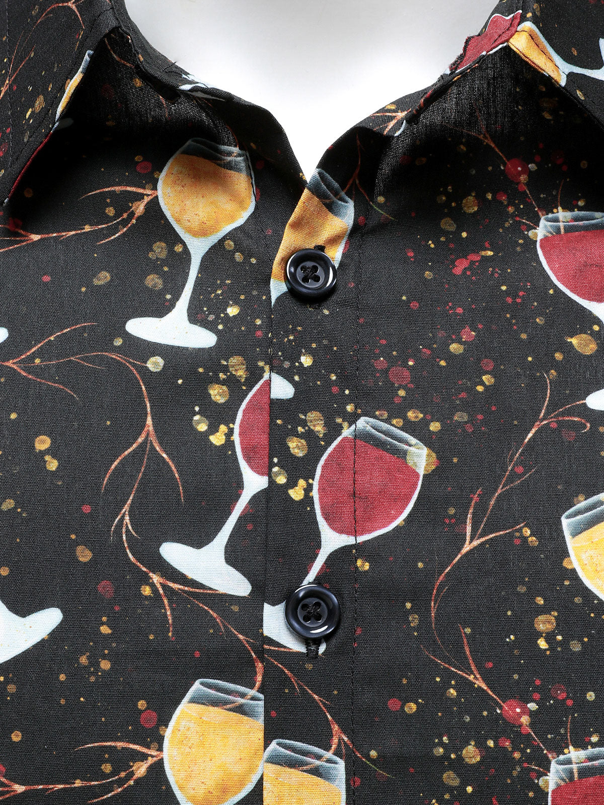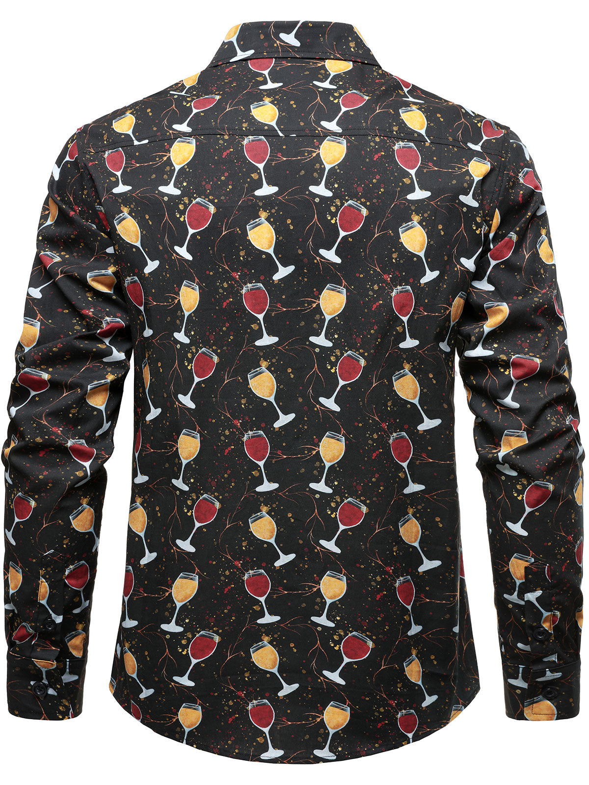 Men's Casual Holiday Wine Glass Print Black Long Sleeve Cotton Party Shirt