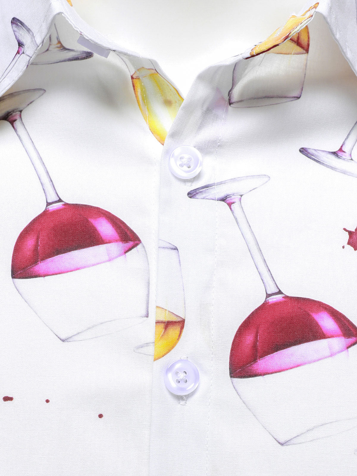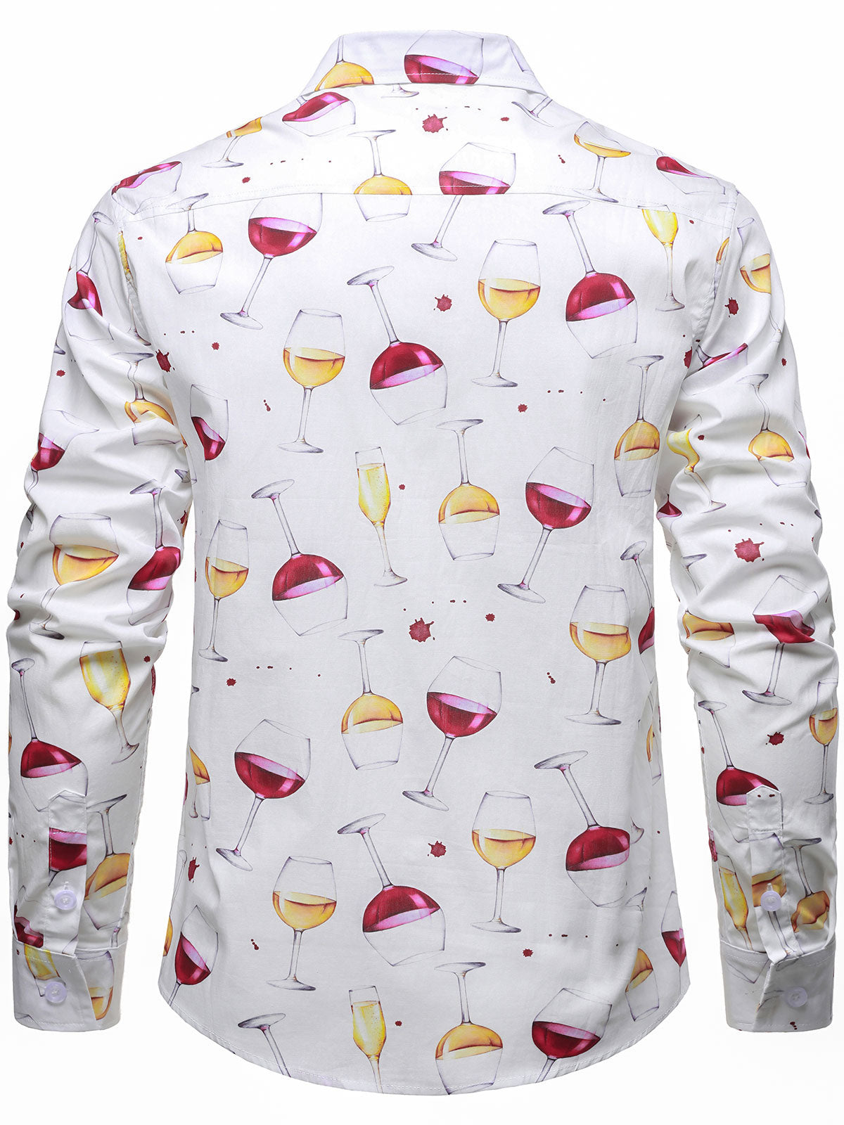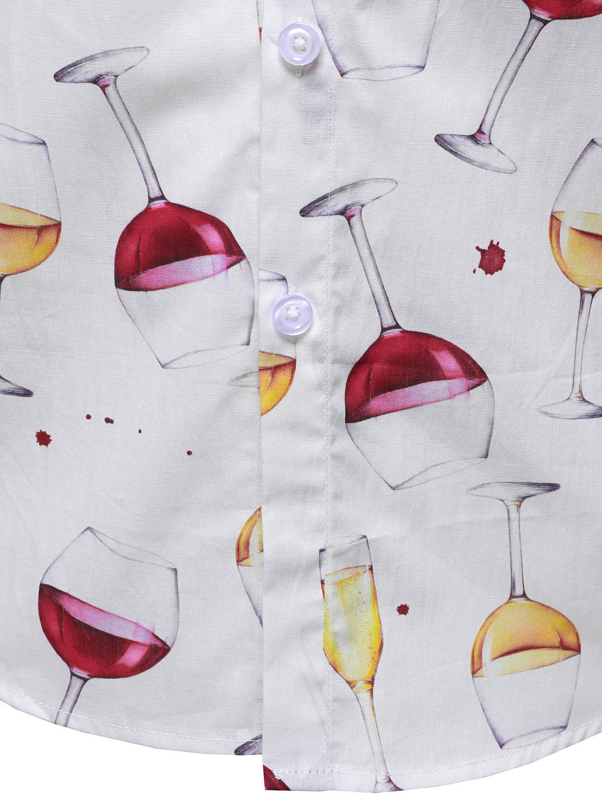 Men's Casual Holiday Wine Glass Print Button Up Long Sleeve Cotton Party Shirt