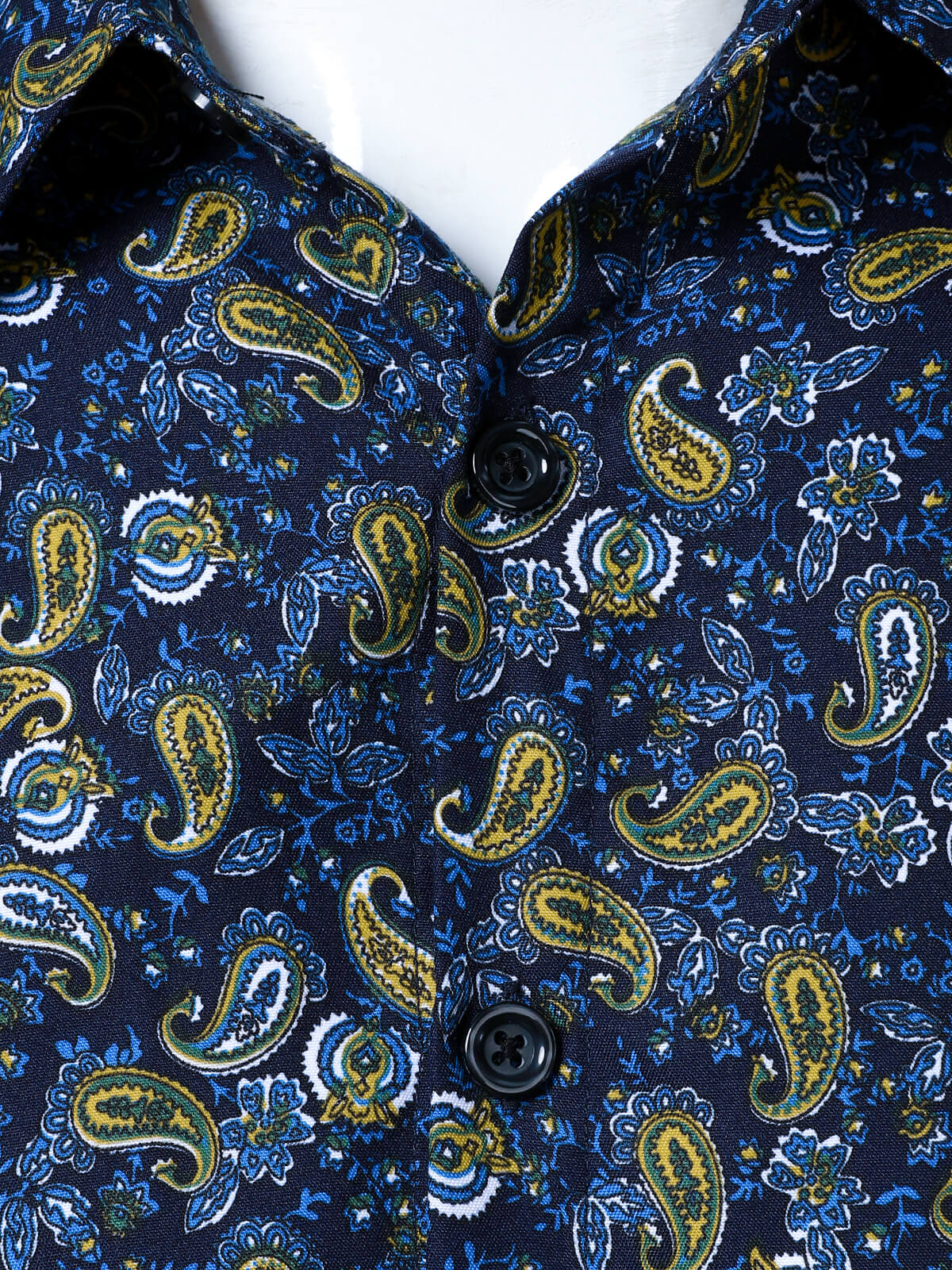Men's Paisley Floral Cotton Blue Long Sleeve Shirt