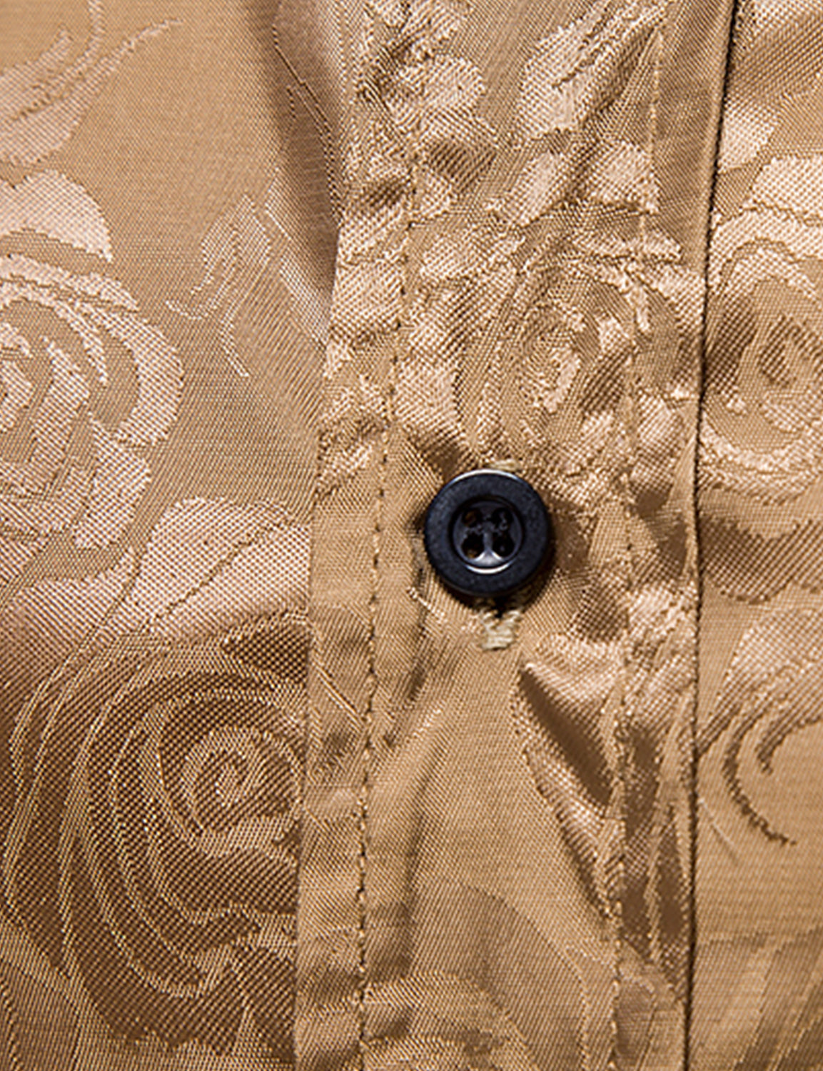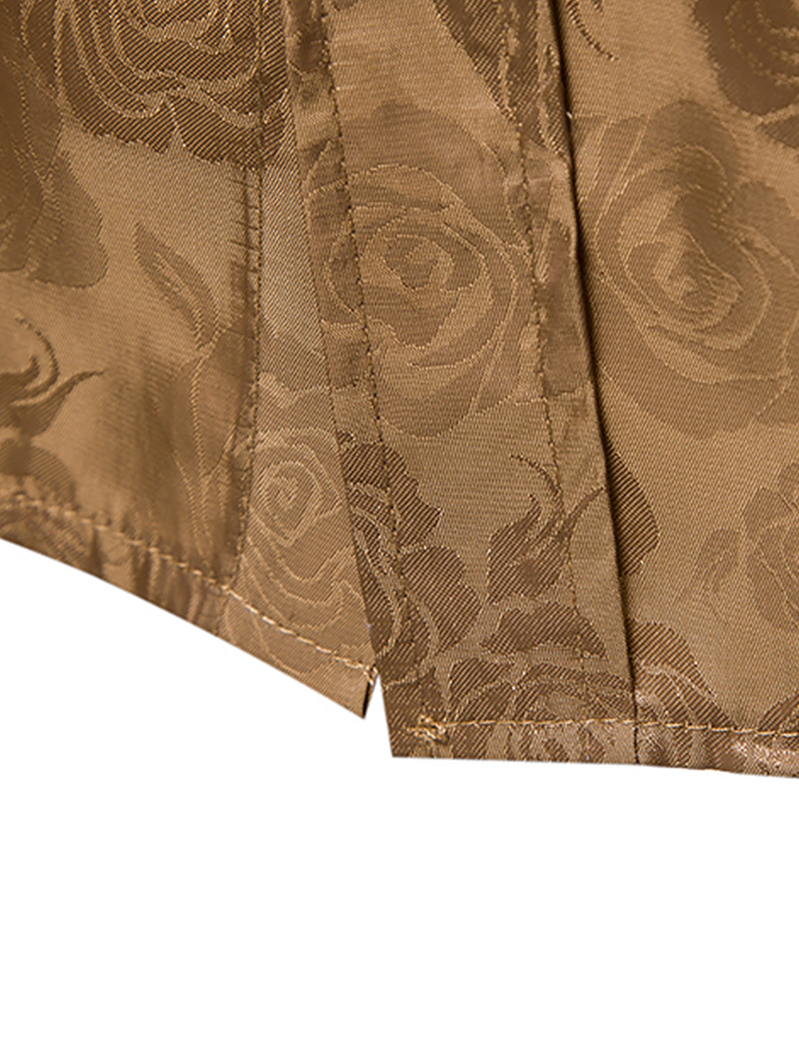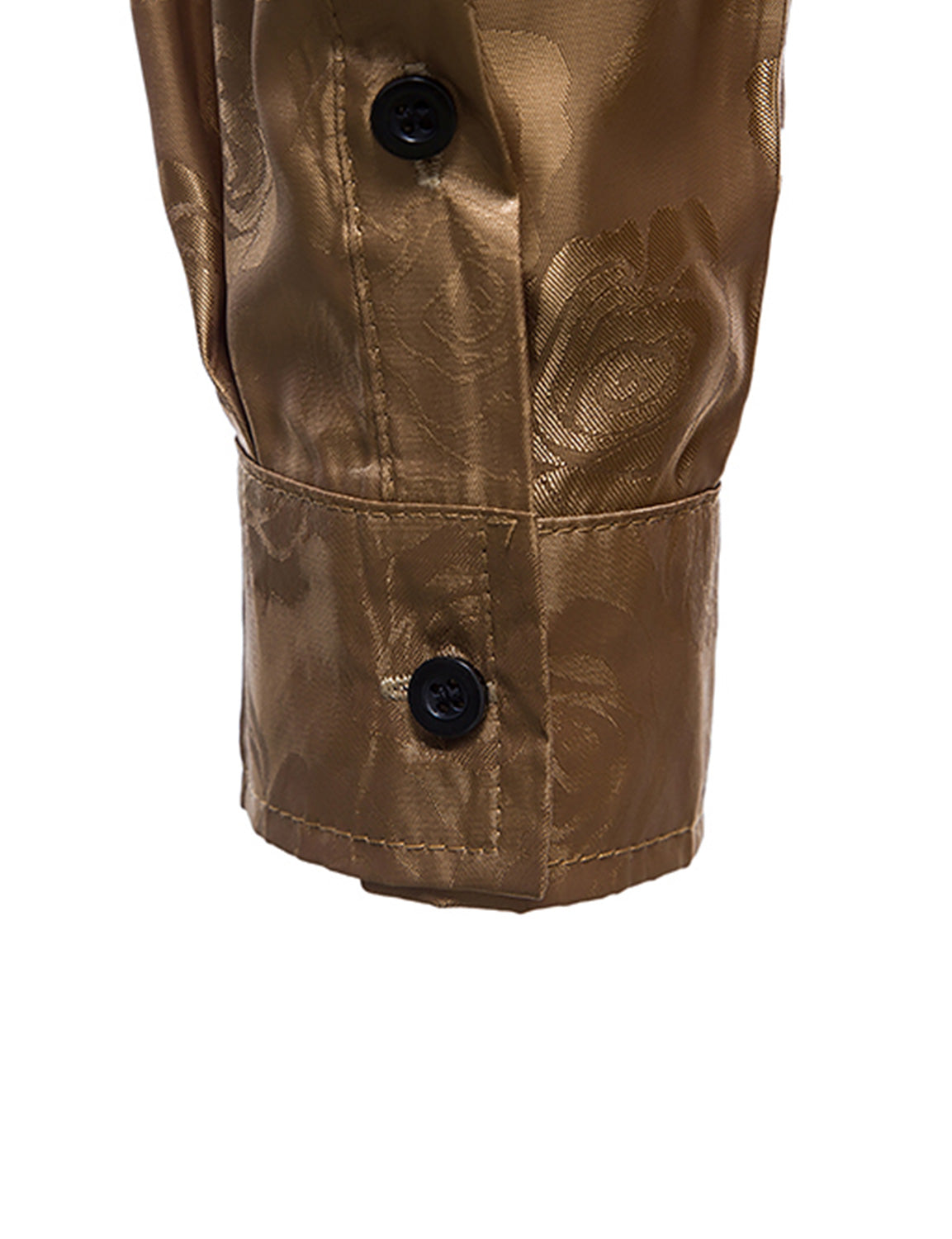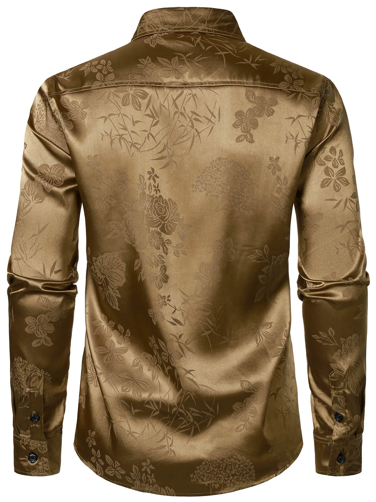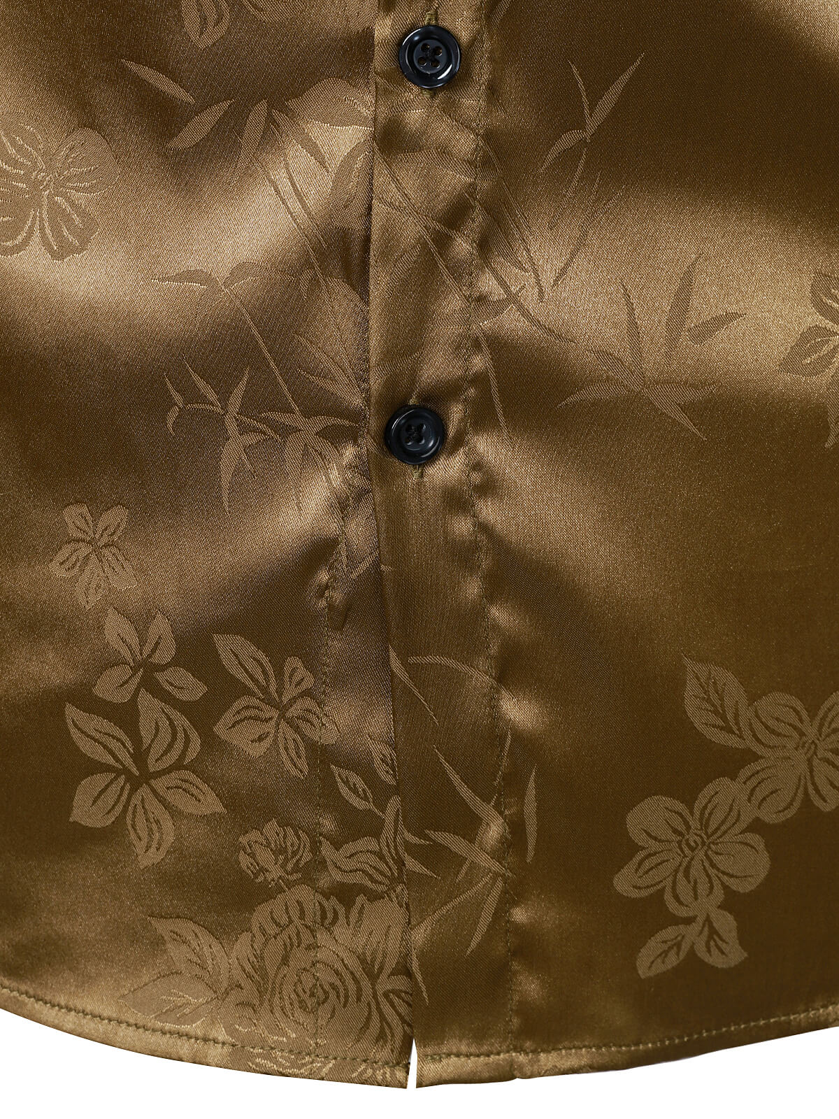 Men's Khaki Floral Jacquard Shiny Satin Long Sleeve Dress Shirt