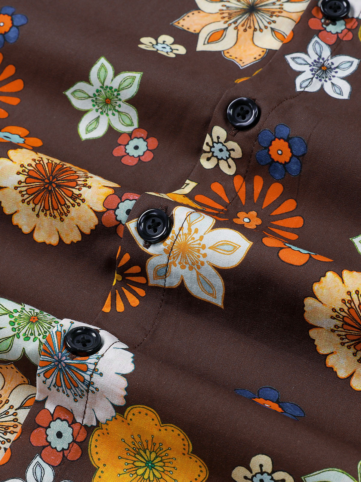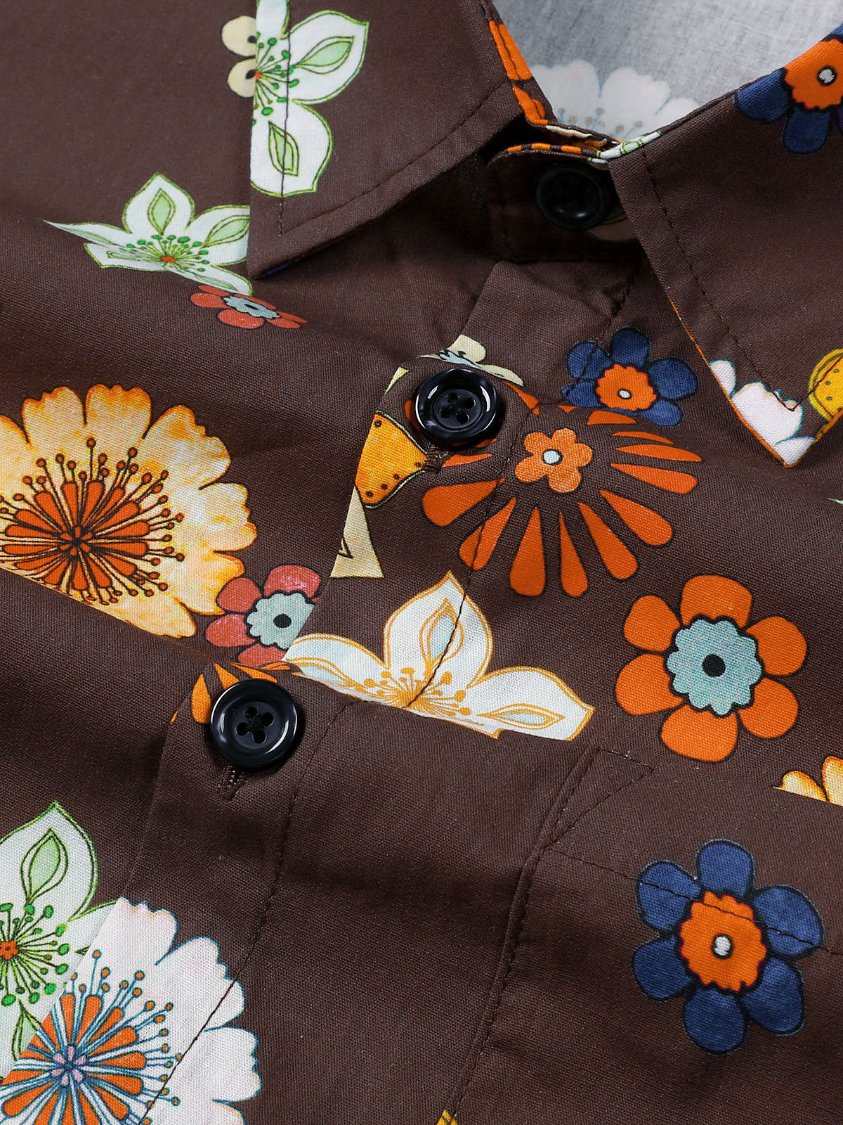 Men's Floral Print Vintage Holiday Brown Hawaiian Short Sleeve Shirt