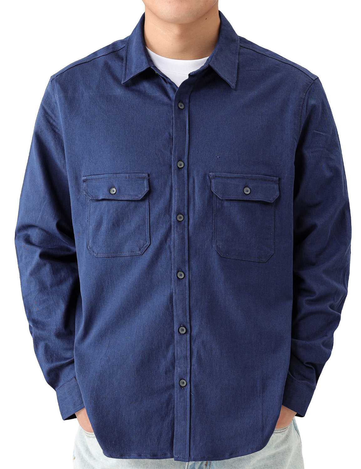 Men's Casual Pockets Long Sleeve Button Up Shirts