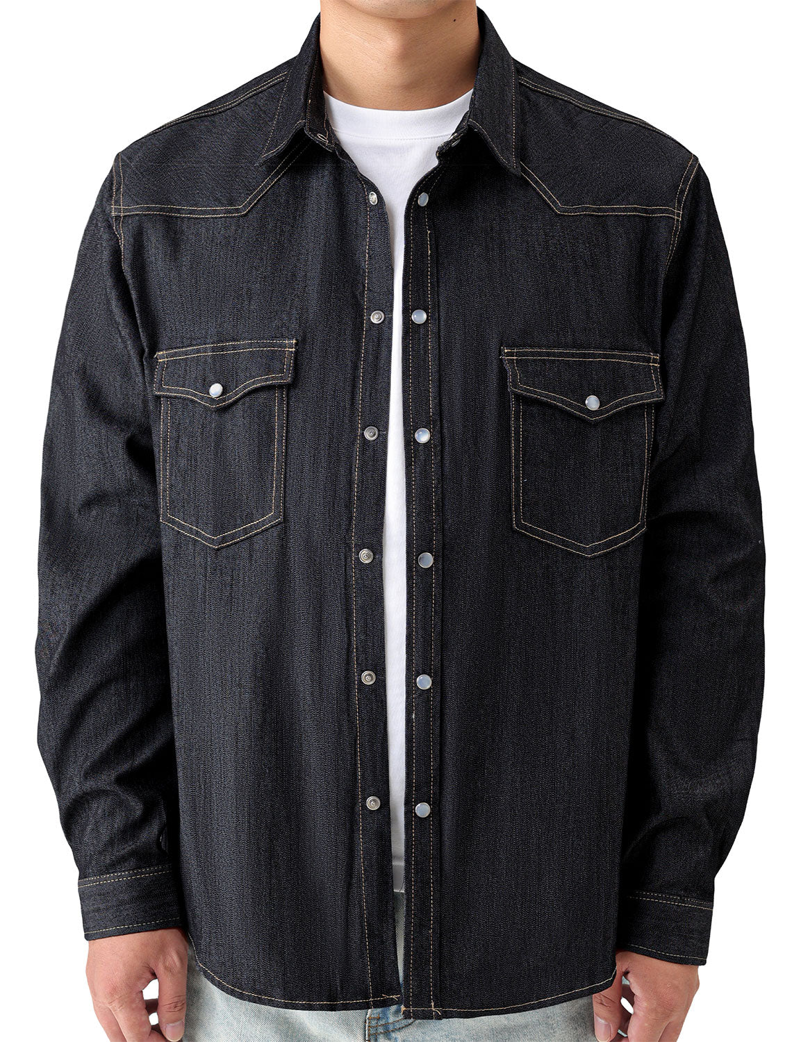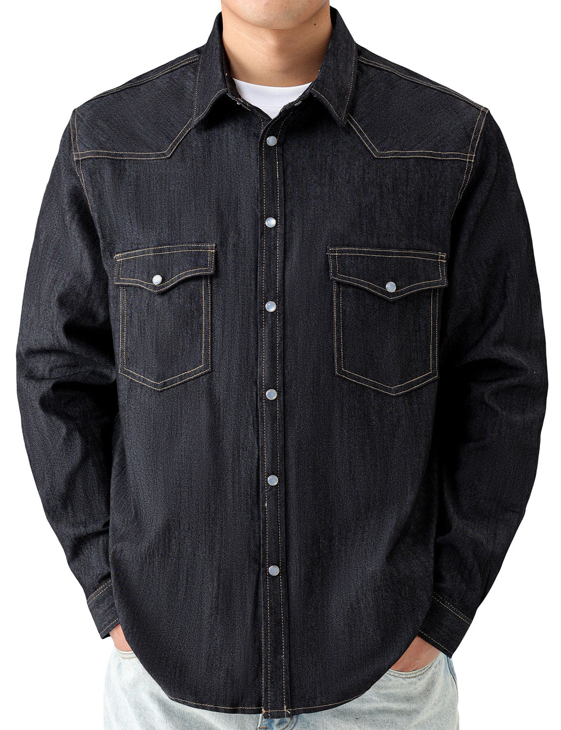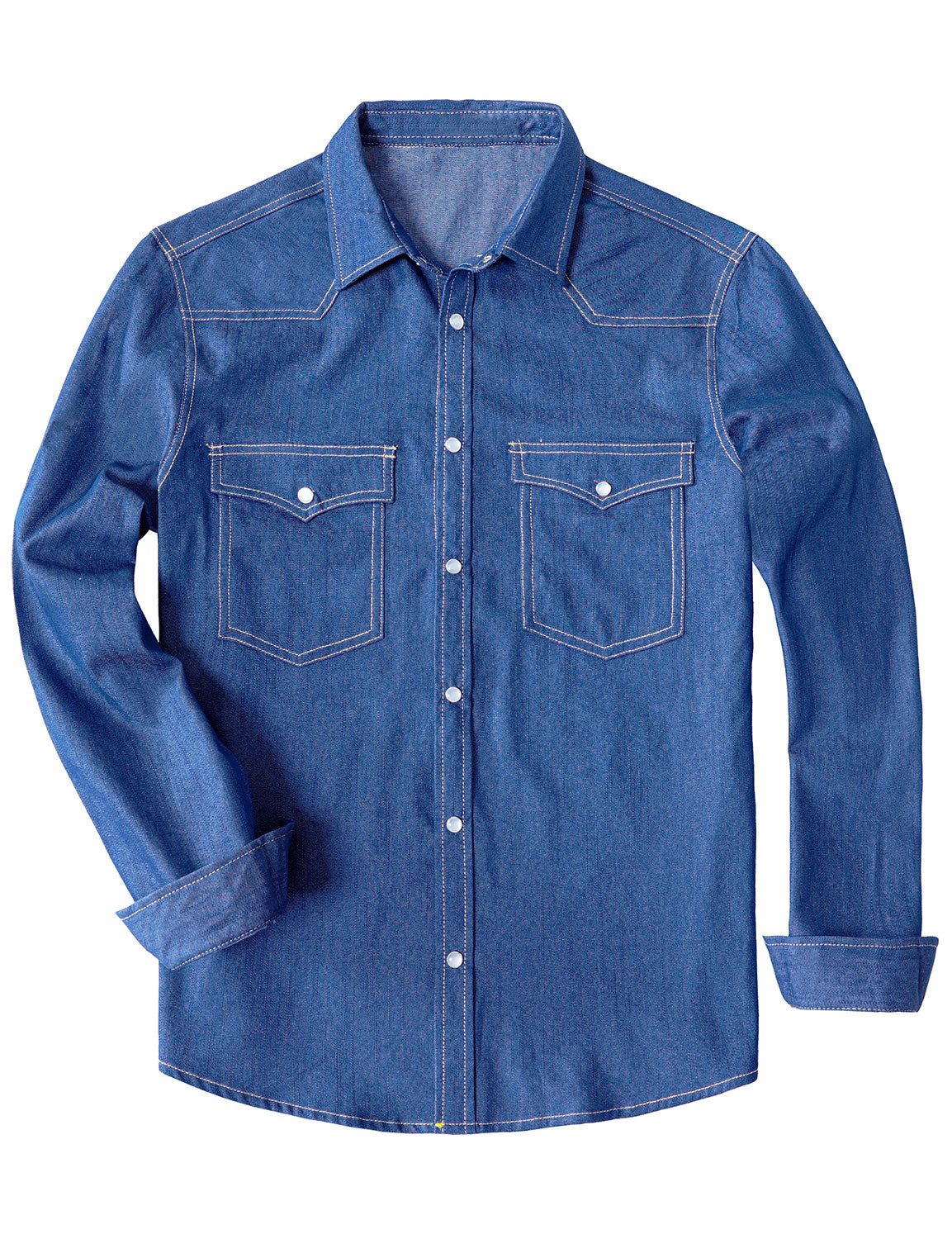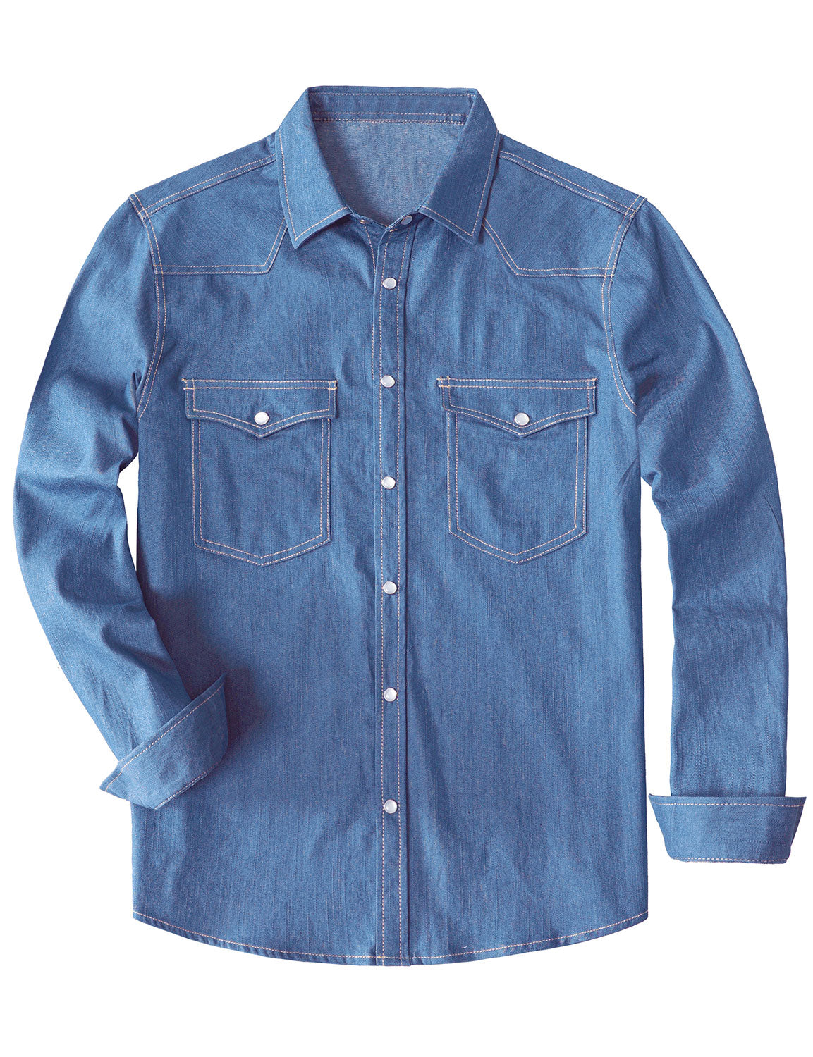 Men’s Cowboy Denim Pearl Snap Long Sleeve Shirt
