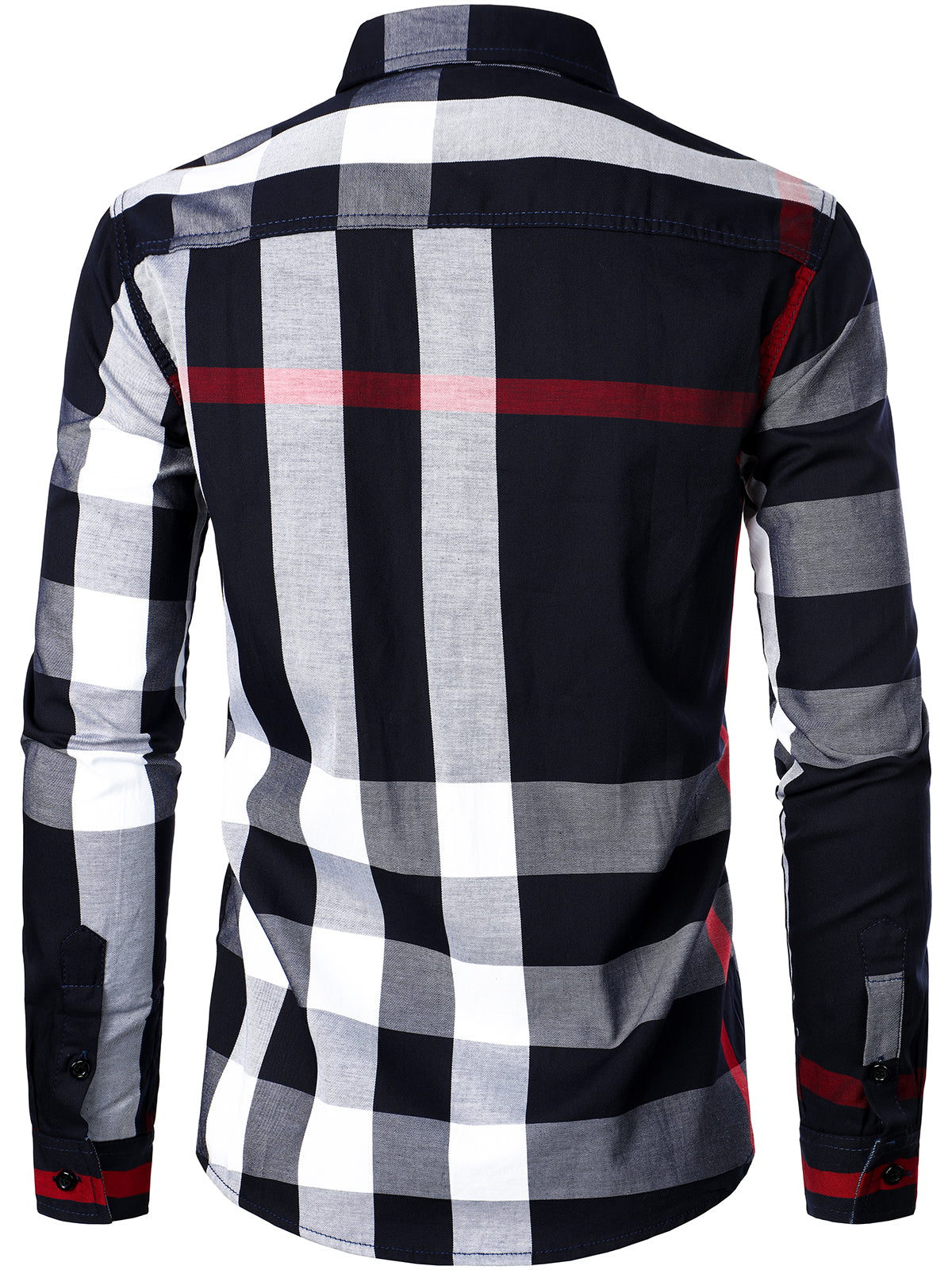Men's Long-sleeved Cotton Color-blocking Plaid Shirt