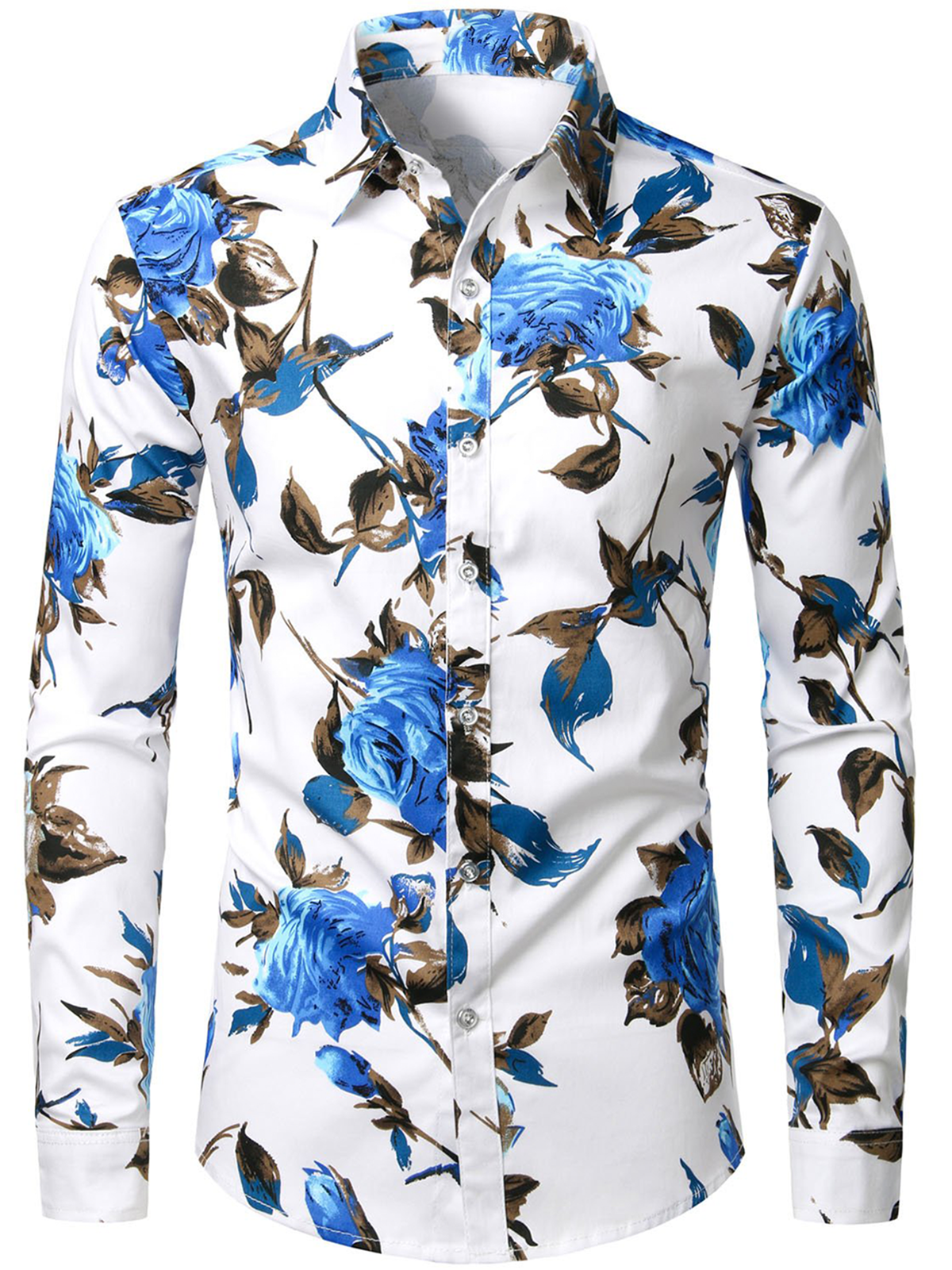 Men's Casual Rose Floral Long Sleeve Shirt