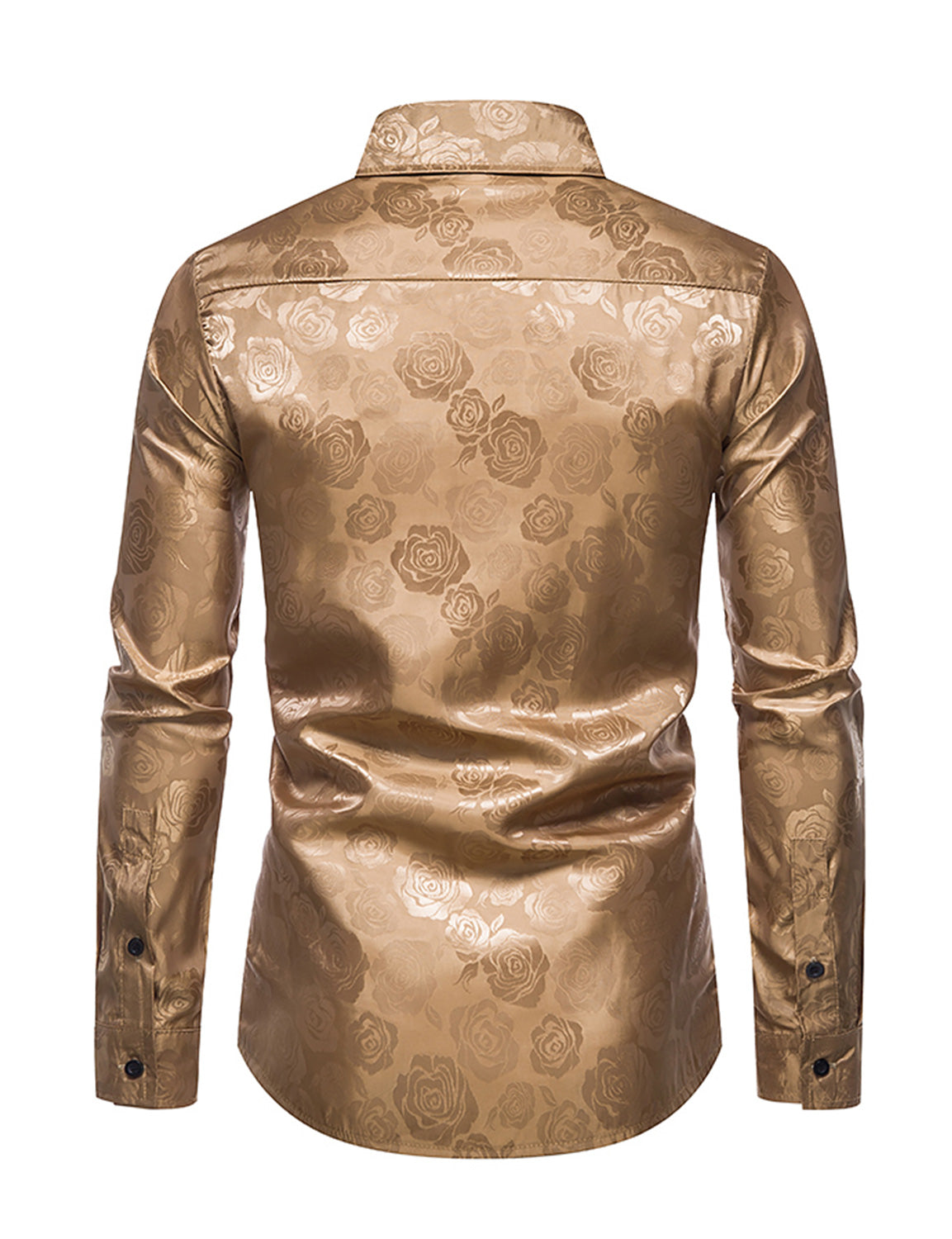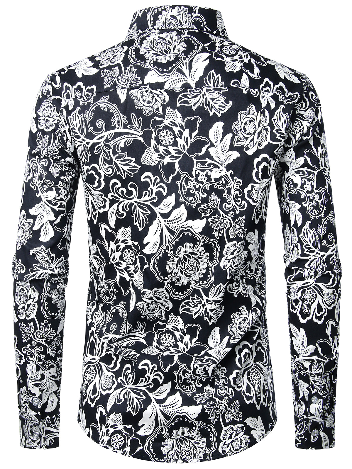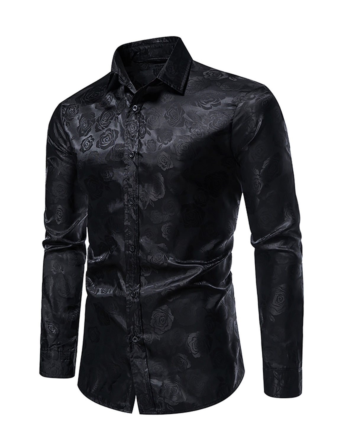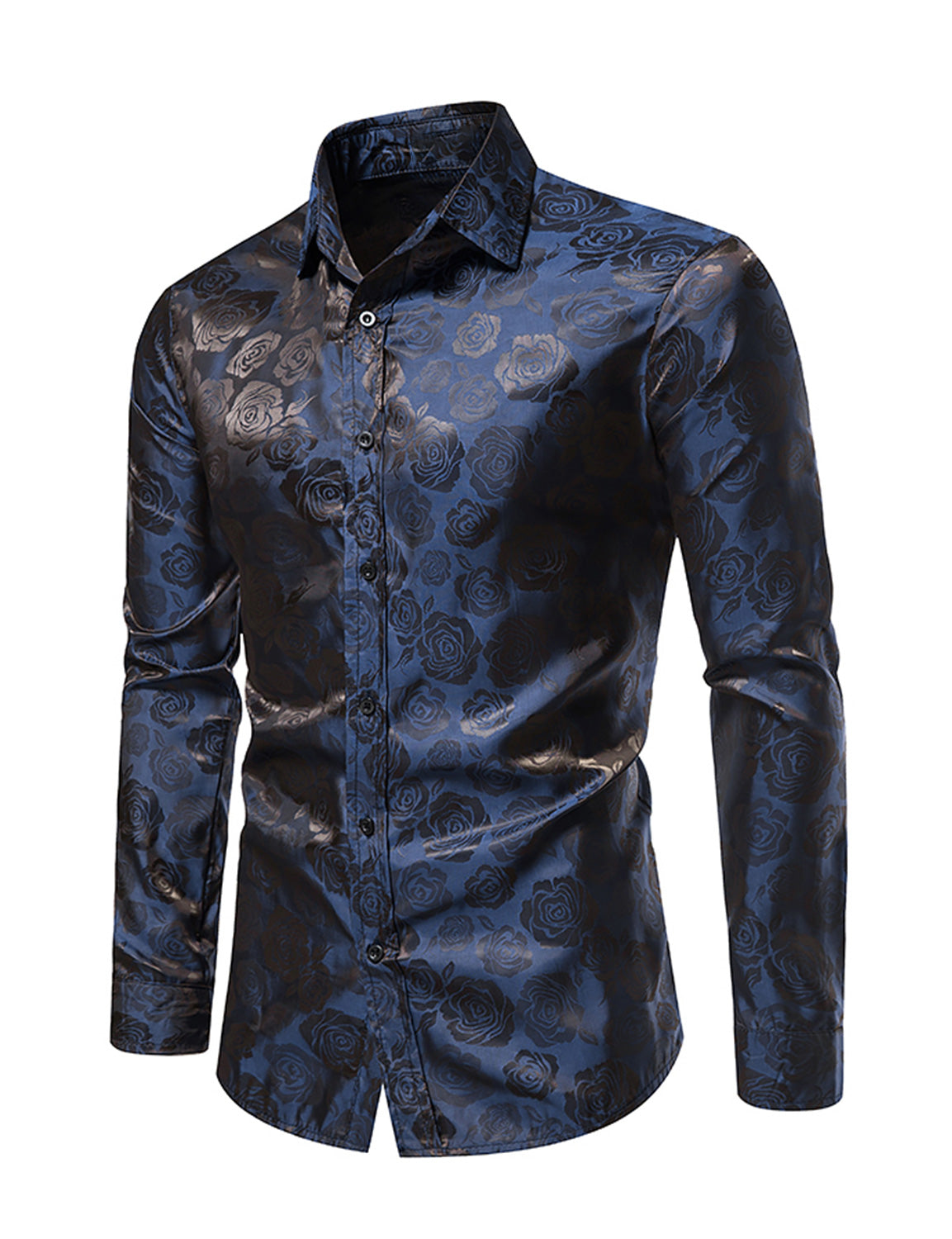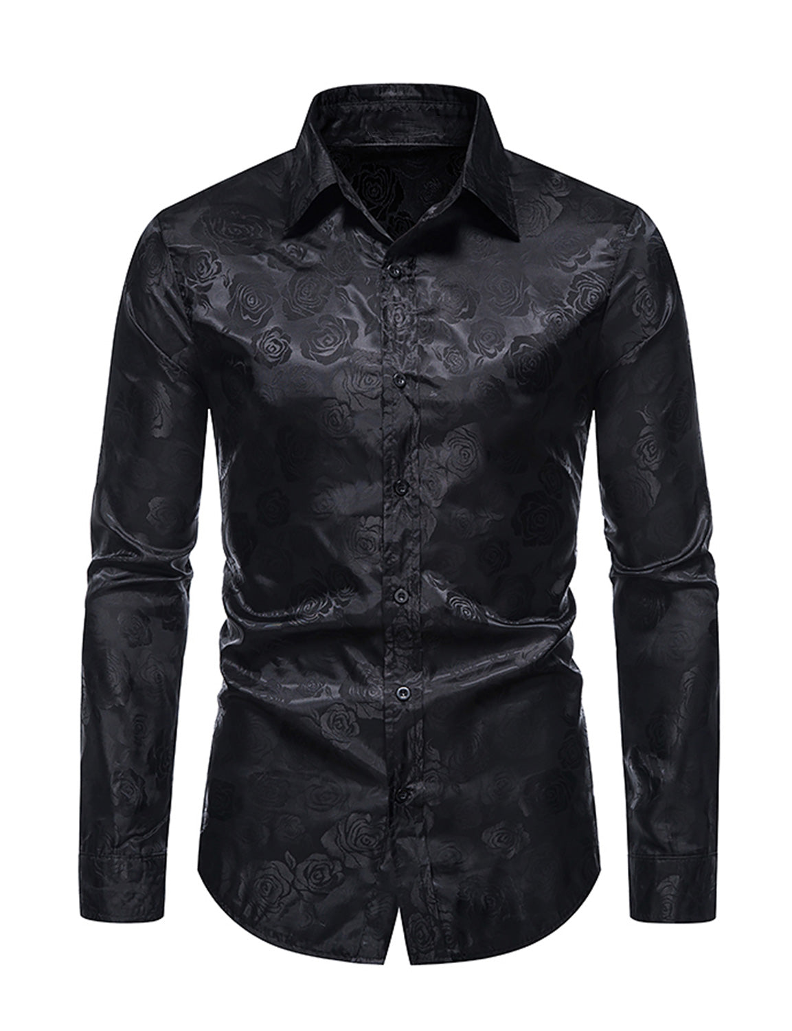Men's Jacquard Vintage Rose Flower Print Party Prom Long Sleeve Dress Shirt
