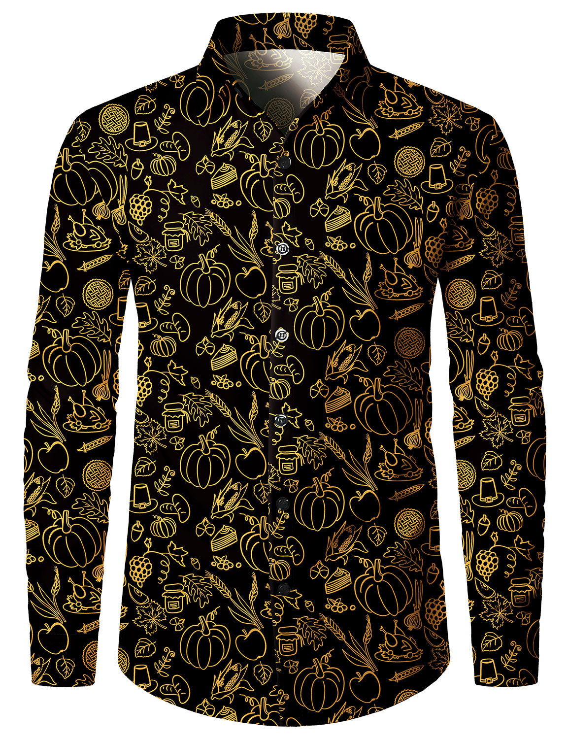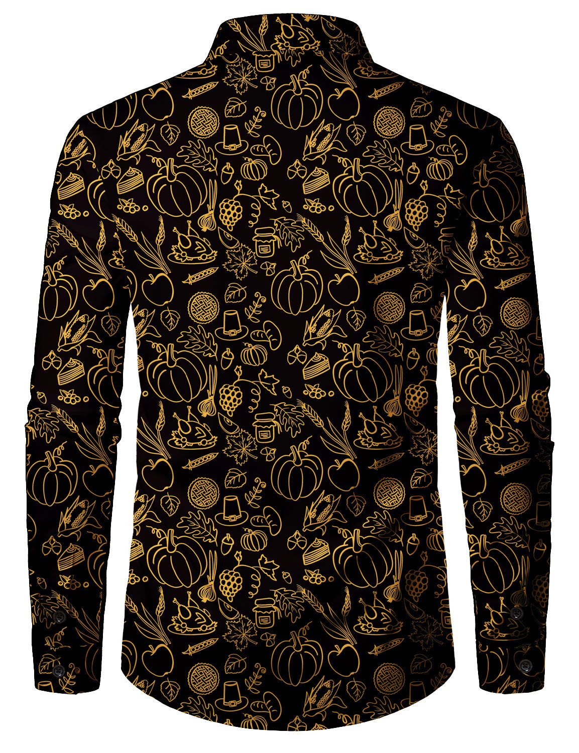 Men's Golden Thanksgiving Festive Print Long Sleeve Shirt