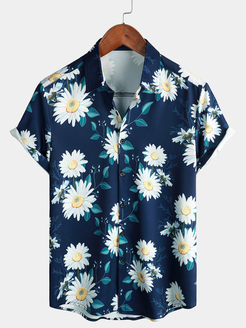 Boy's Floral Beach Casual Vacation Aloha Short Sleeve Hawaiian Shirt