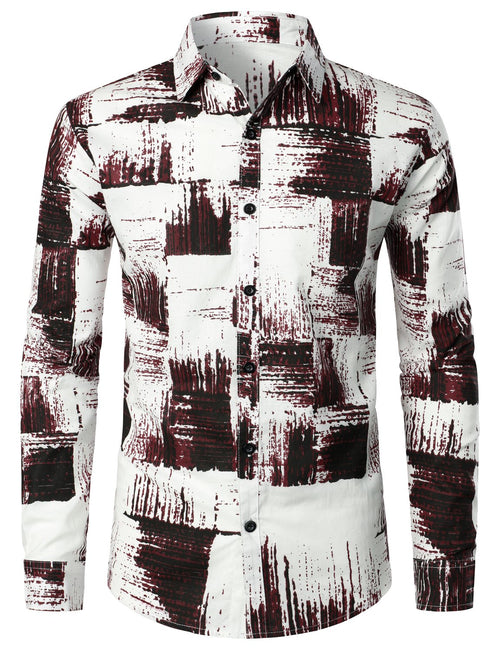 Men's Casual Holiday Wine Glass Print Button Up Long Sleeve Cotton Party Shirt