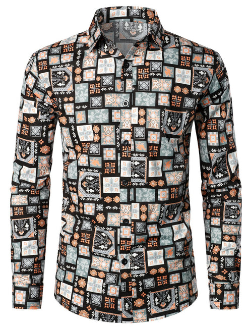 Men's Holiday Party Disco Champagne Fireworks Print Long Sleeve Button Down Shirt