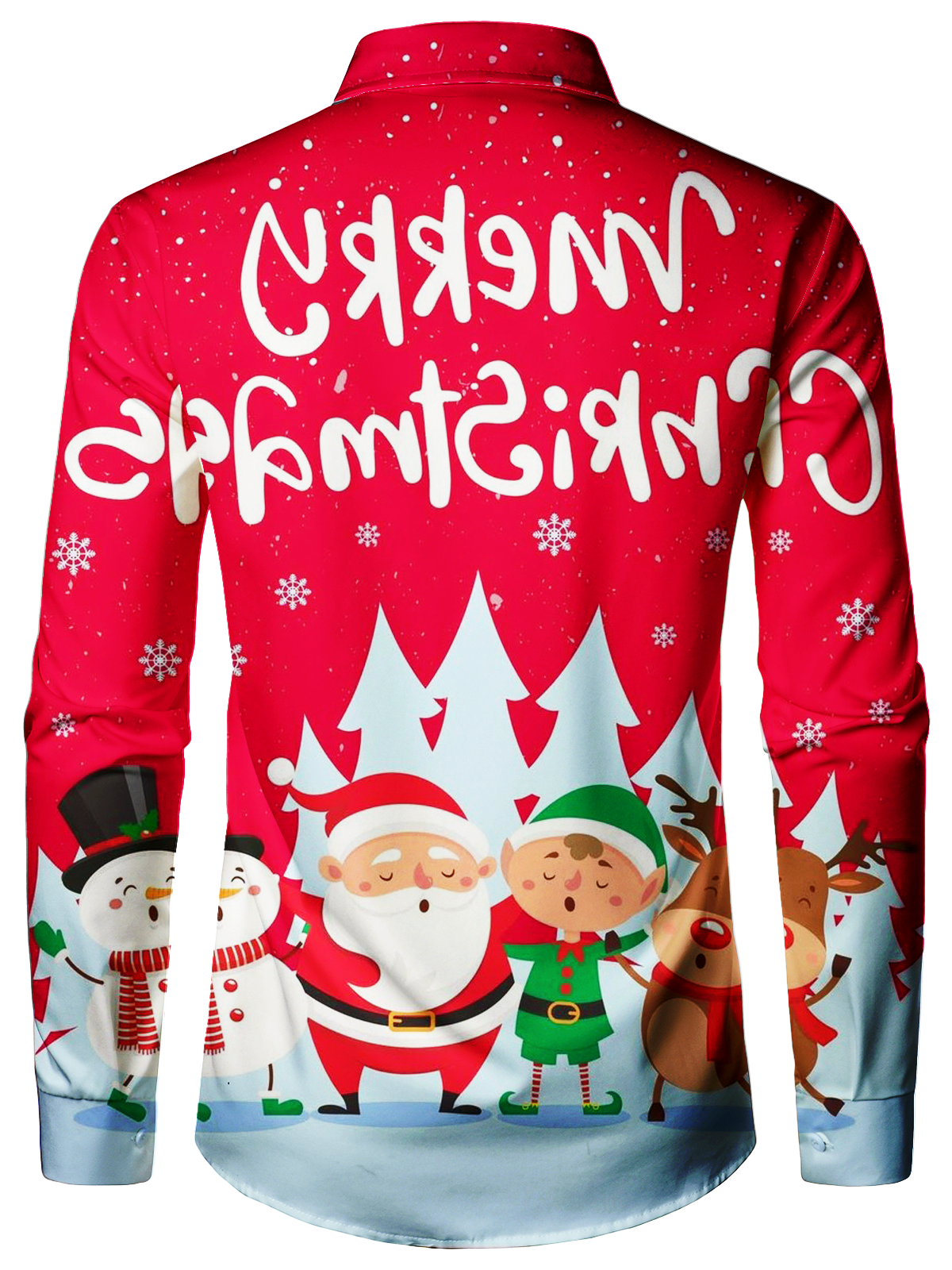 Men's Merry Christmas Cute Santa Elk Reindeer Snowman Print Holiday Xmas Day Button Up Red Long Sleeve Shirt