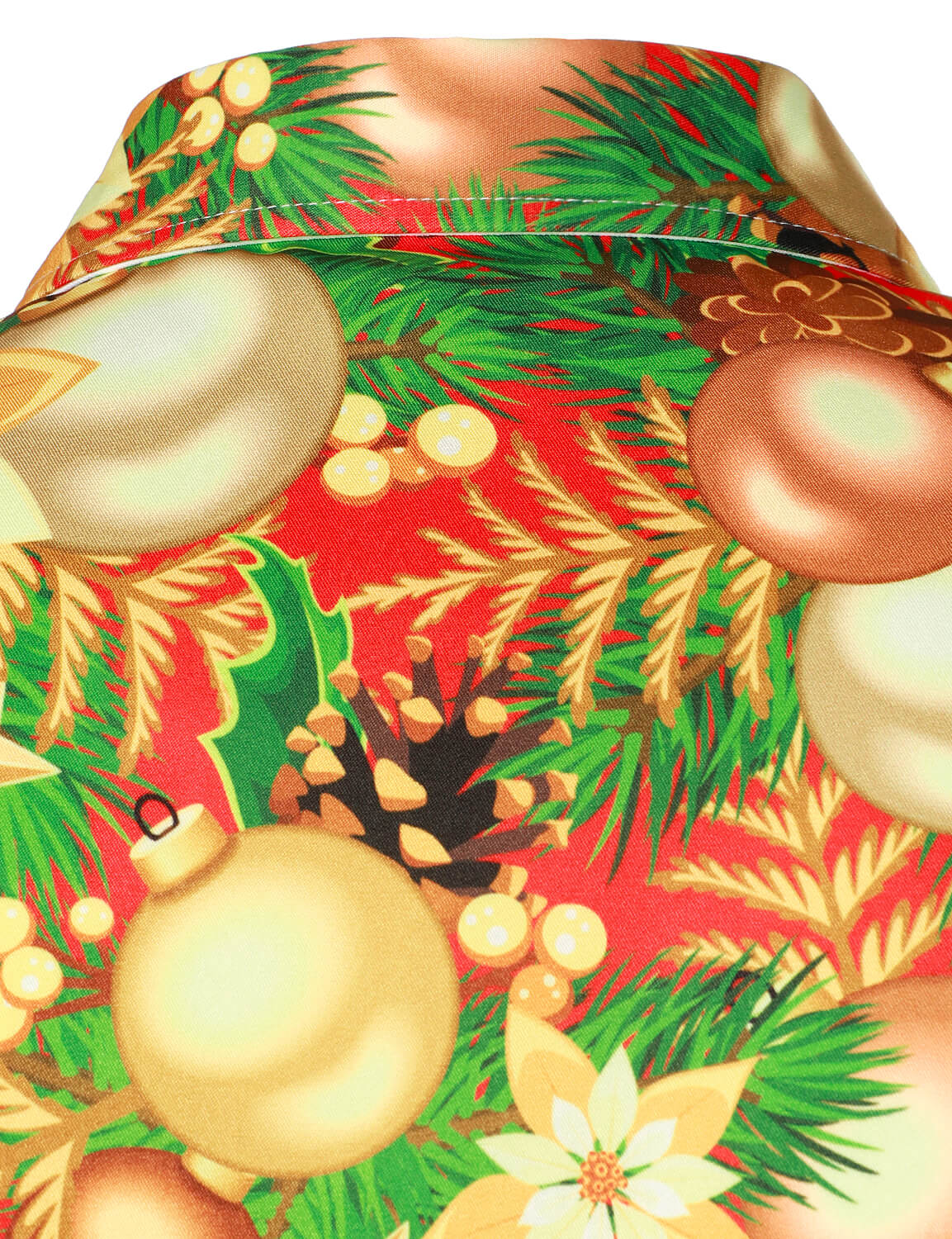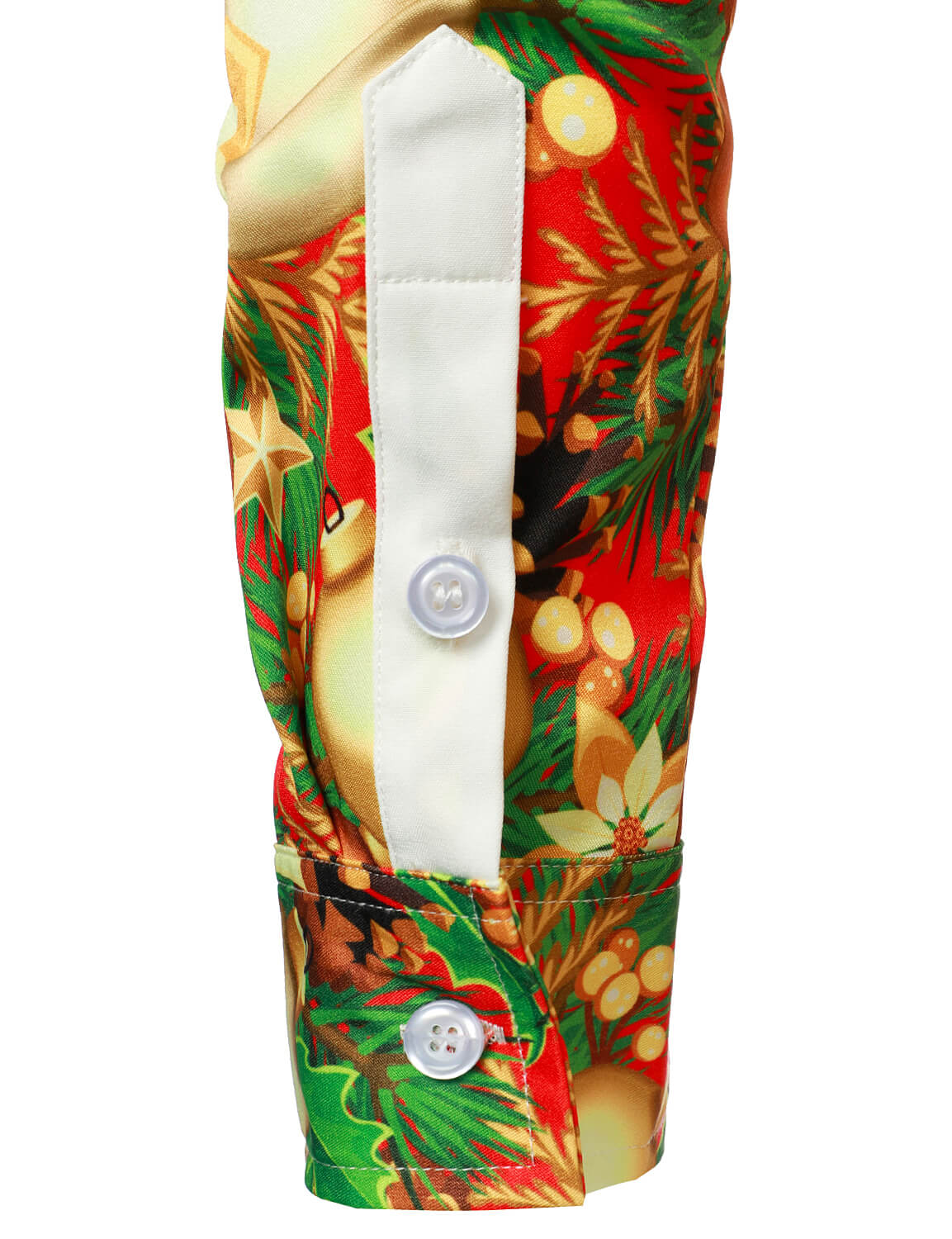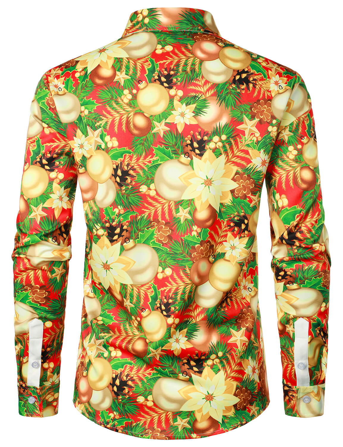 Men's Party Christmas Decoration Floral Print Holiday Shiny Button Long Sleeve Shirt