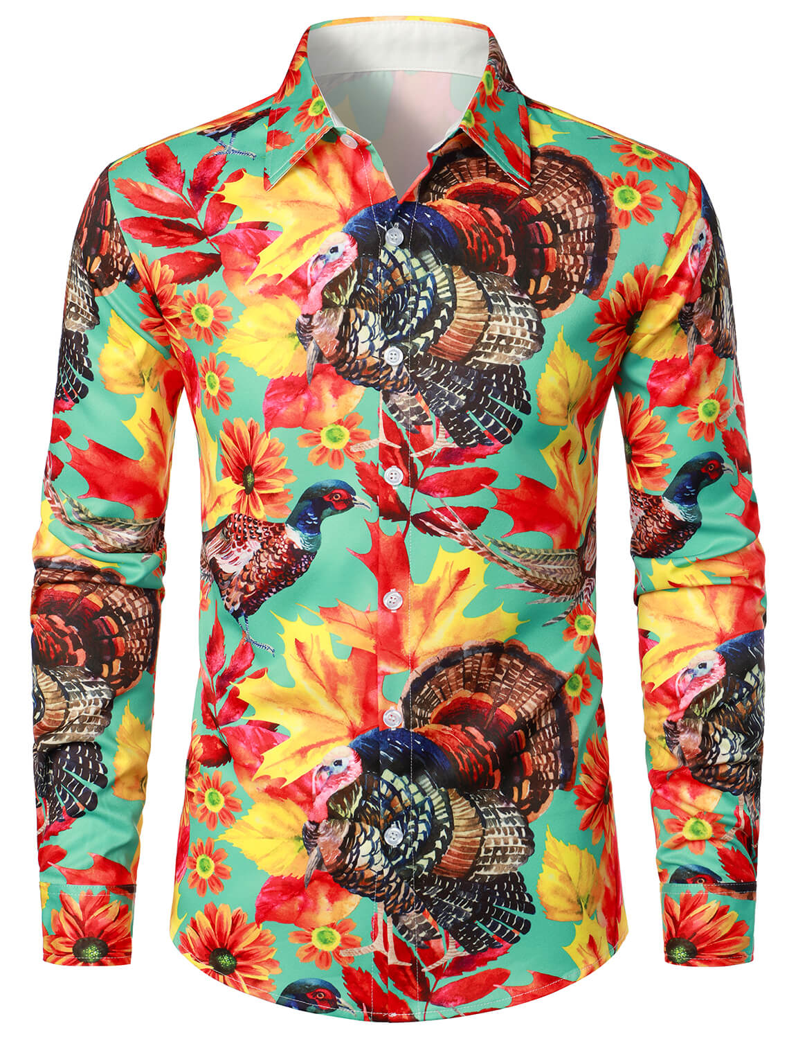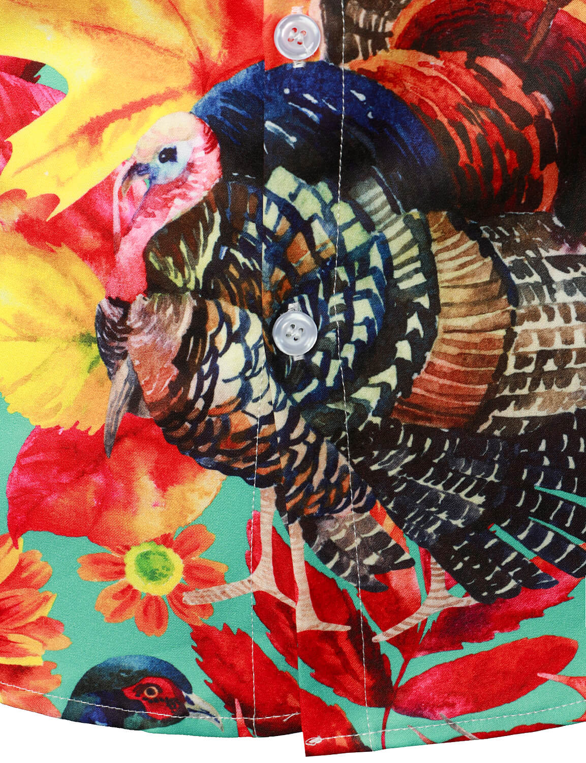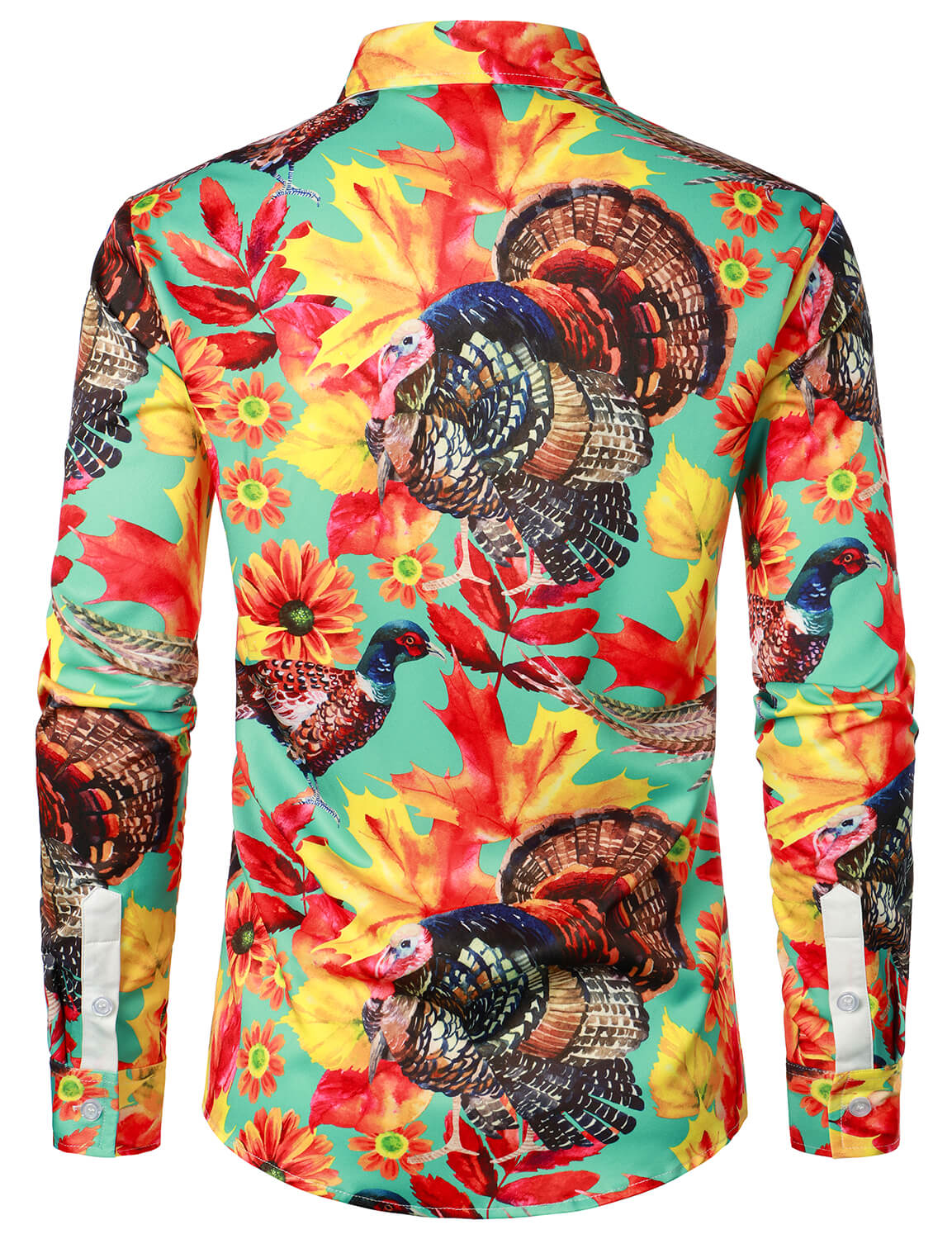 Men's Thanksgiving Day Floral Turkey Button Long Sleeve Shirt