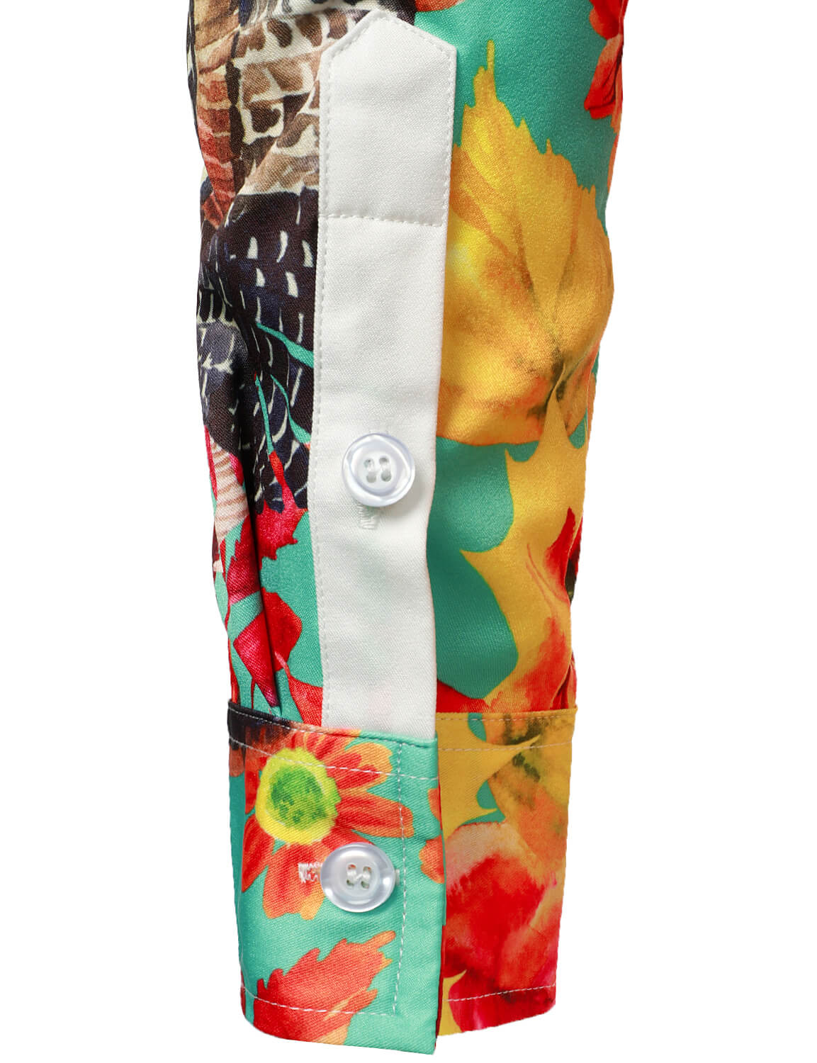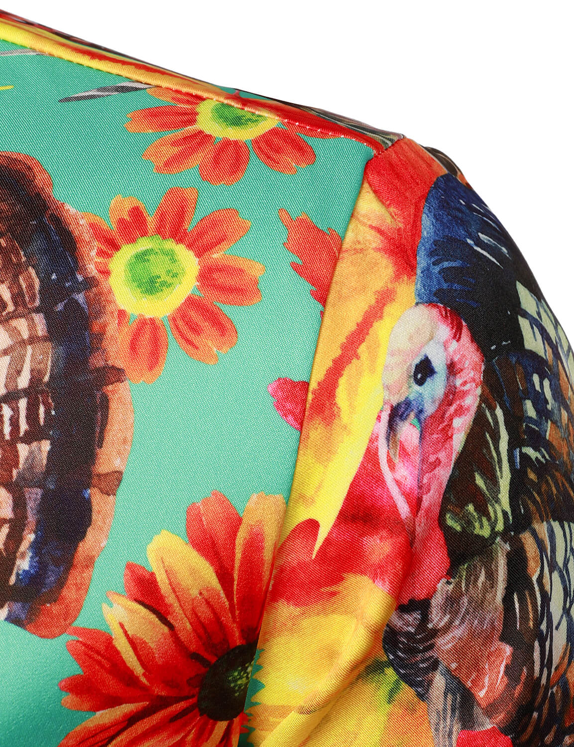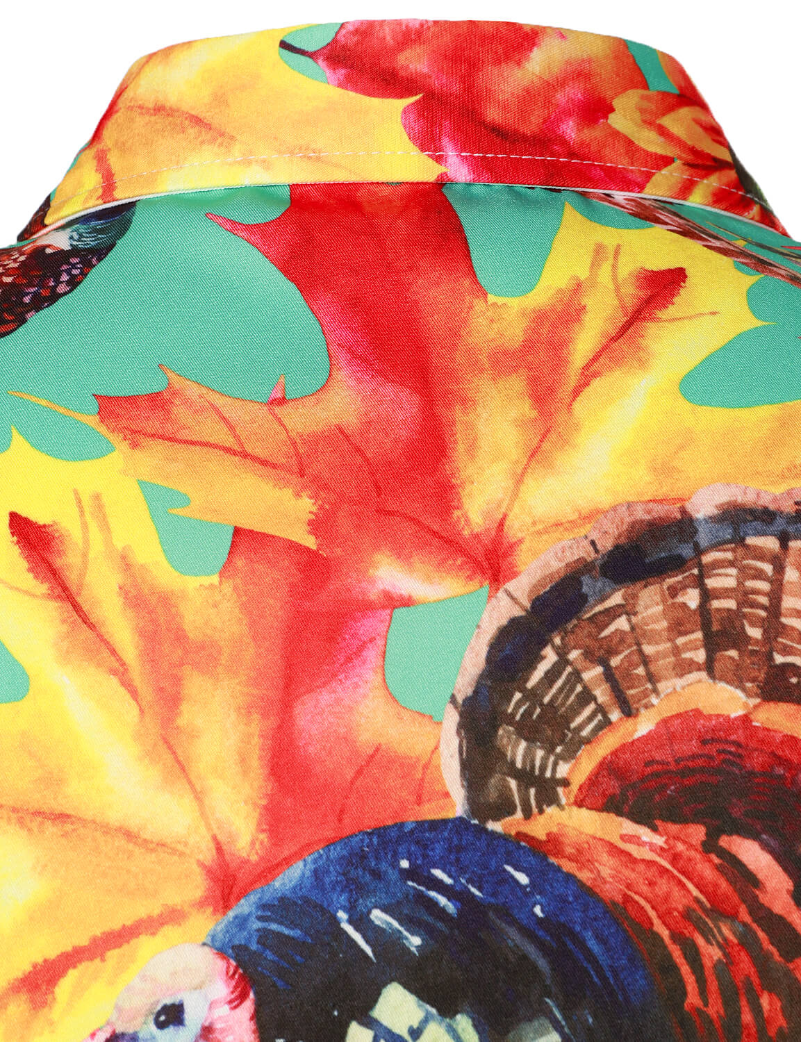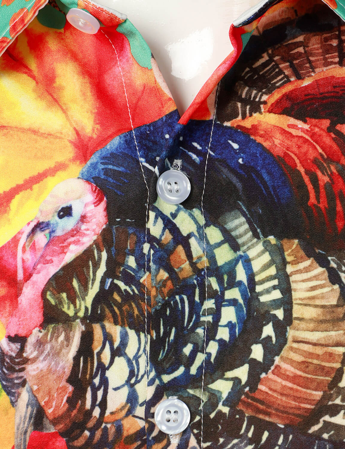 Men's Thanksgiving Day Floral Turkey Button Long Sleeve Shirt