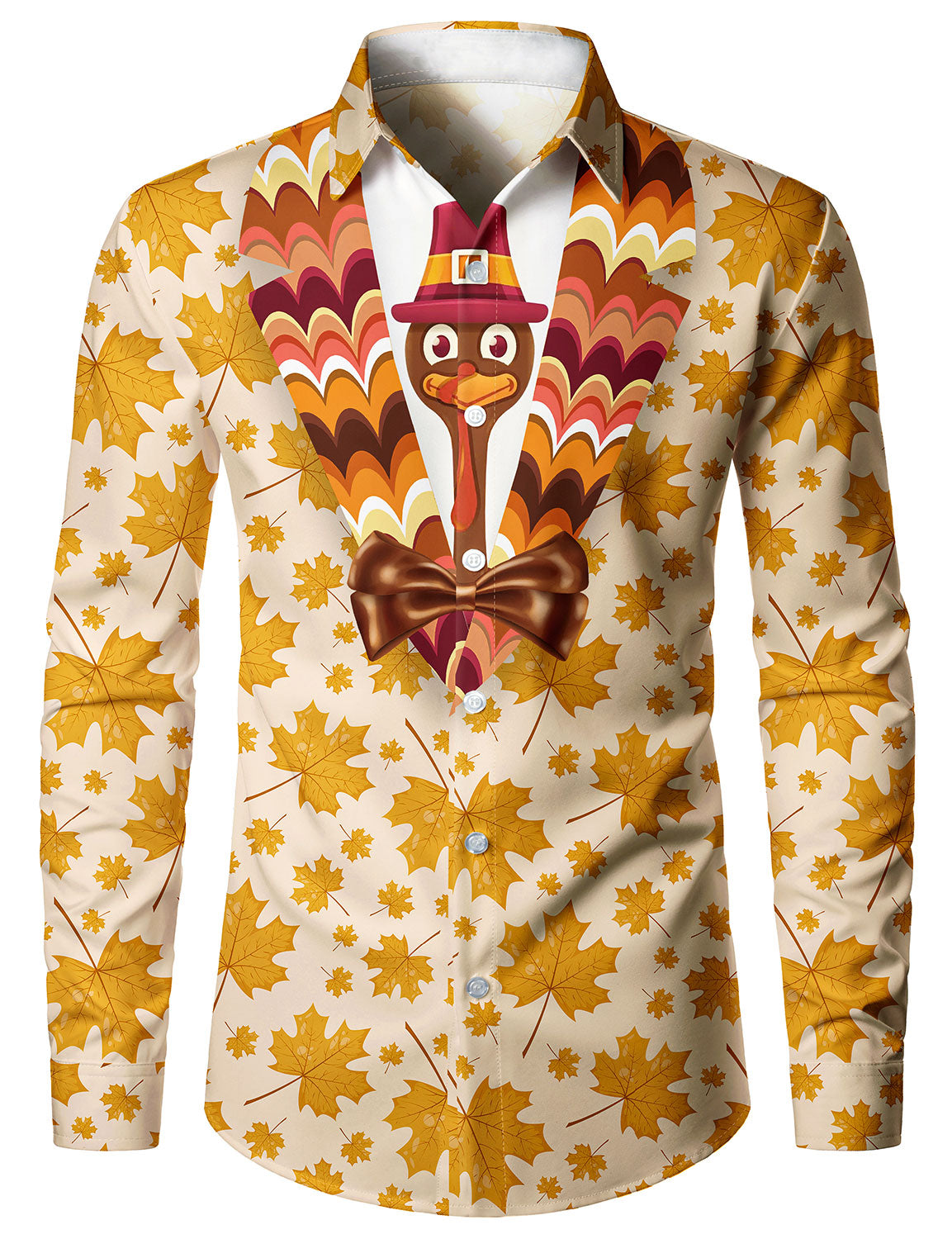 Men's Thanksgiving Funny Turkey Print Holiday Long Sleeve Shirt