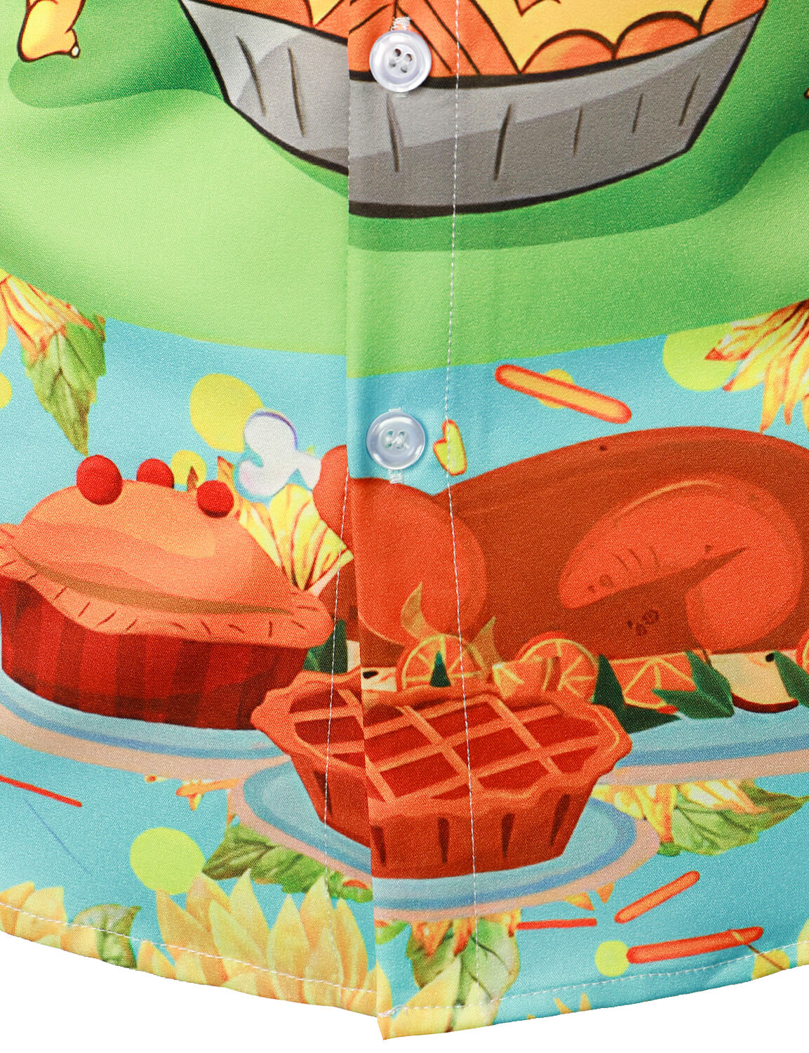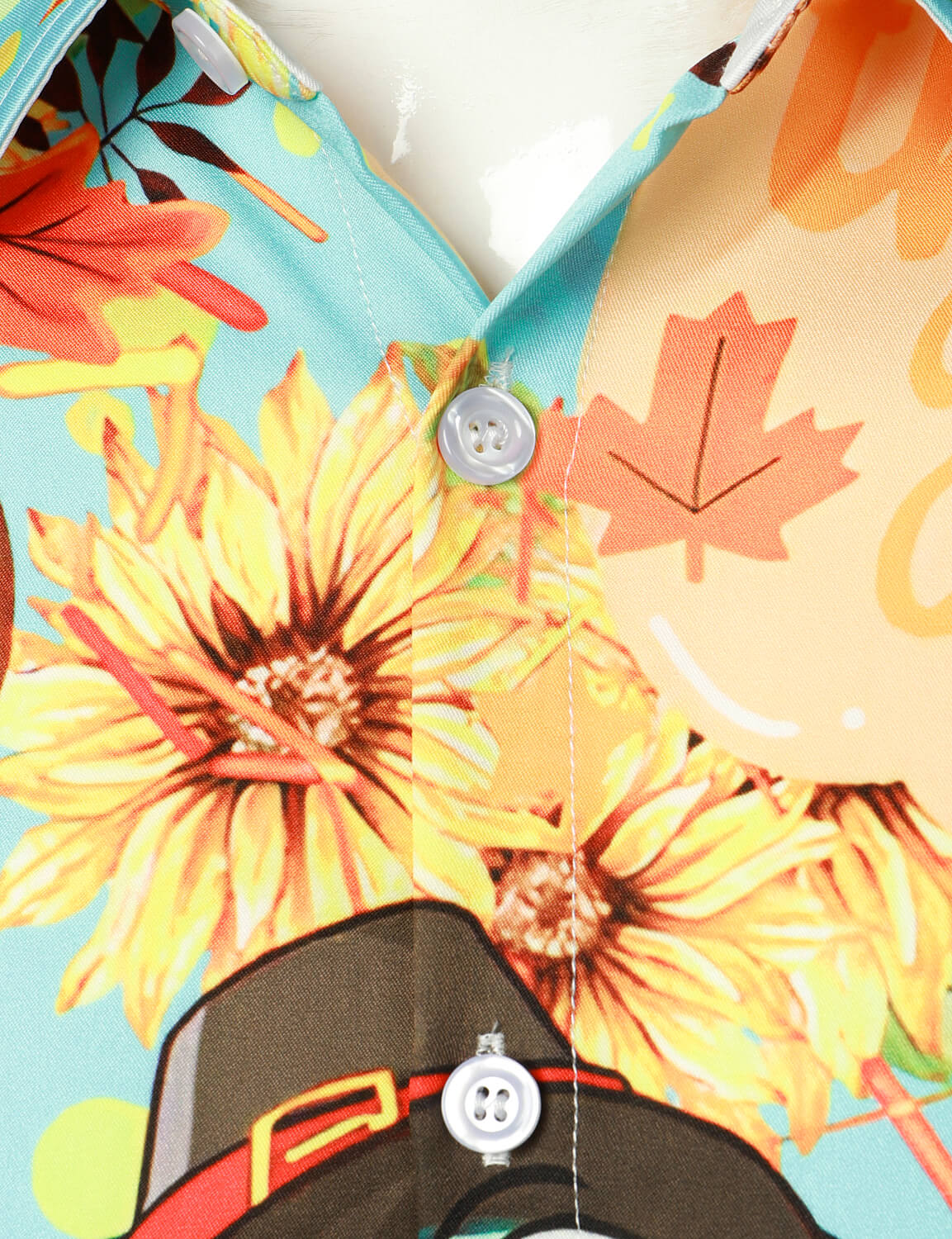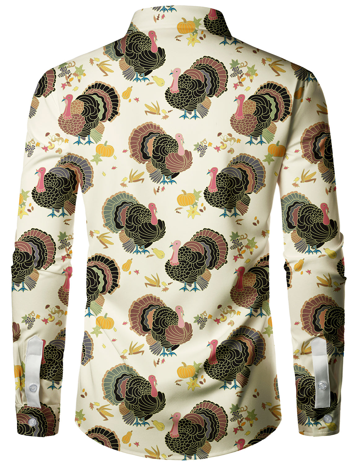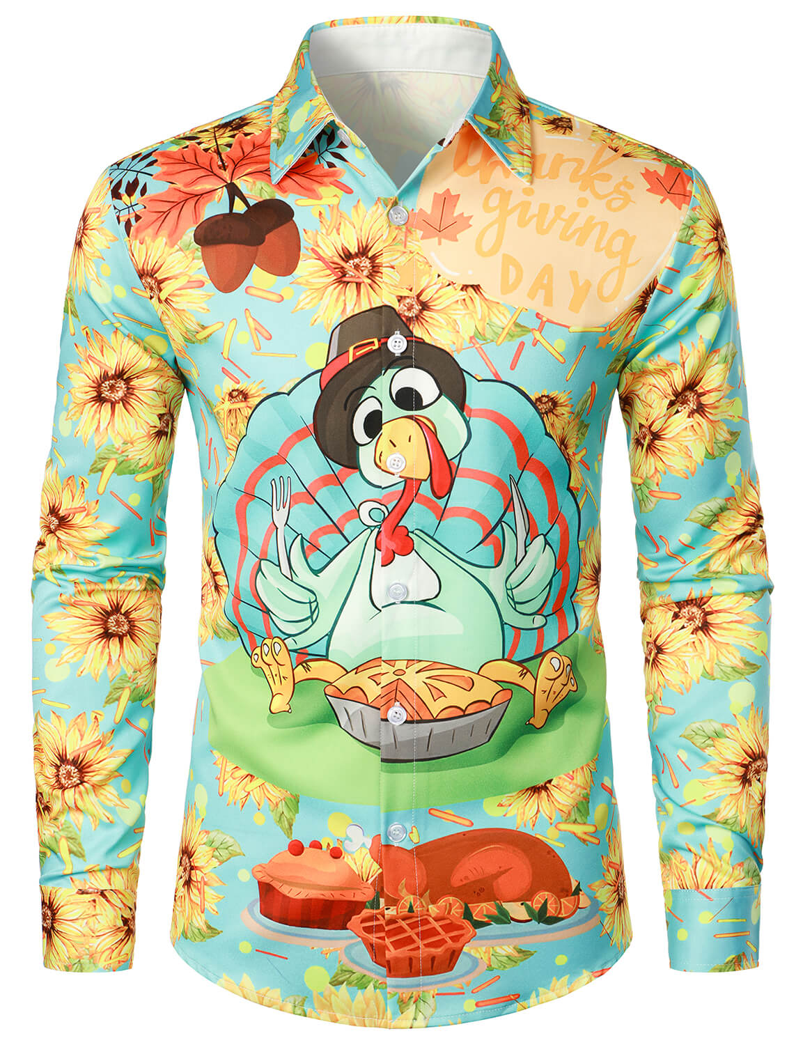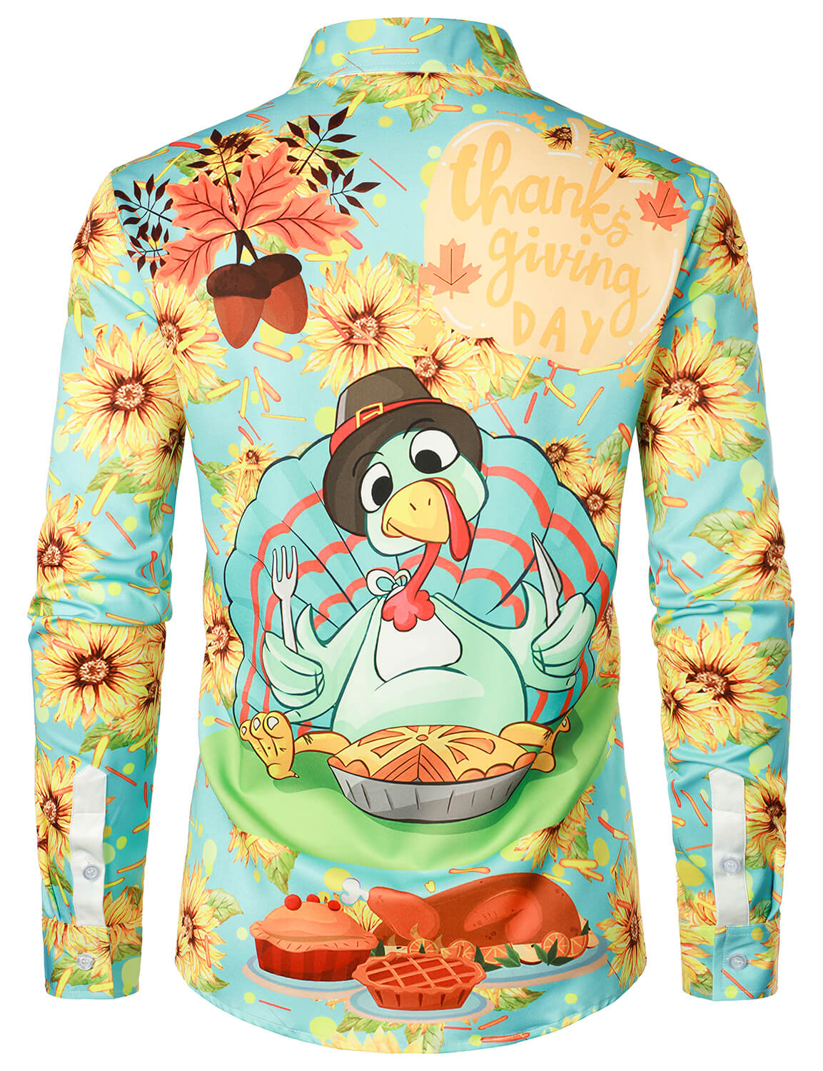 Men's Turkey Thanksgiving Fall Festival Cute Cartoon Holiday Button Up Long Sleeve Shirt