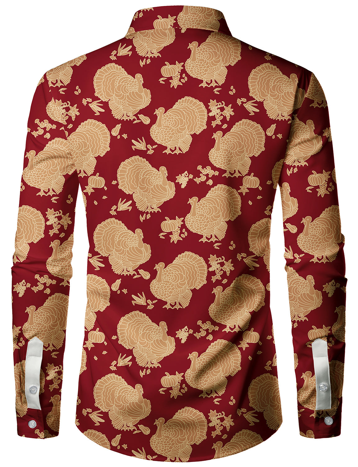 Men's Thanksgiving Turkey Day Holiday Fall Festival Gift Button Up Long Sleeve Shirt