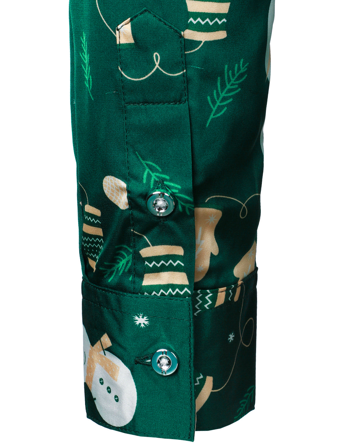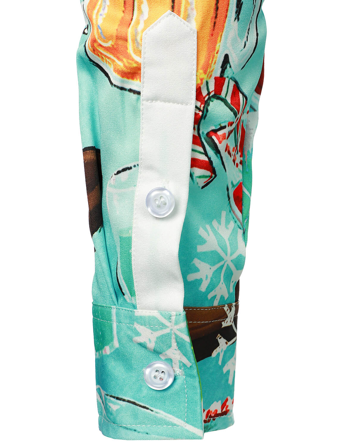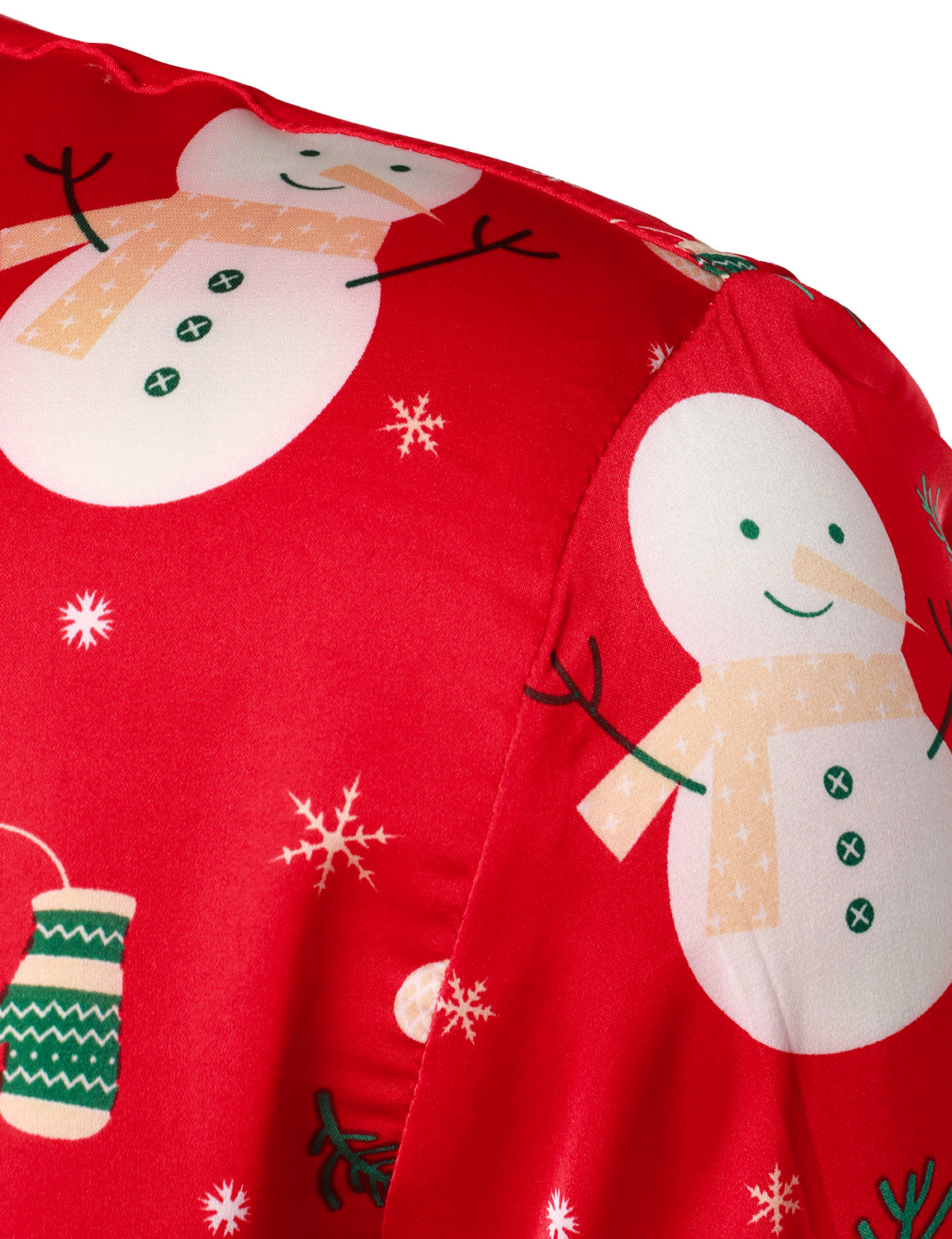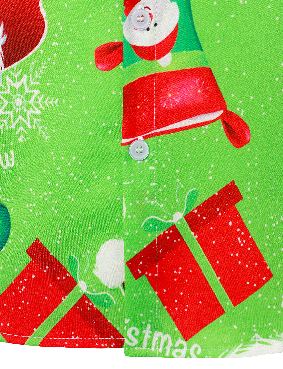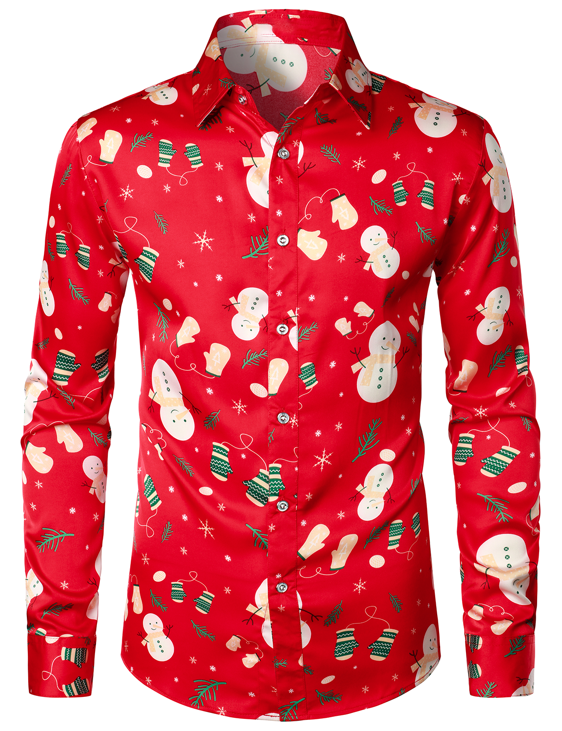 Men's Christmas Snowman Print Xmas Party Holiday Button Up Long Sleeve Shirt