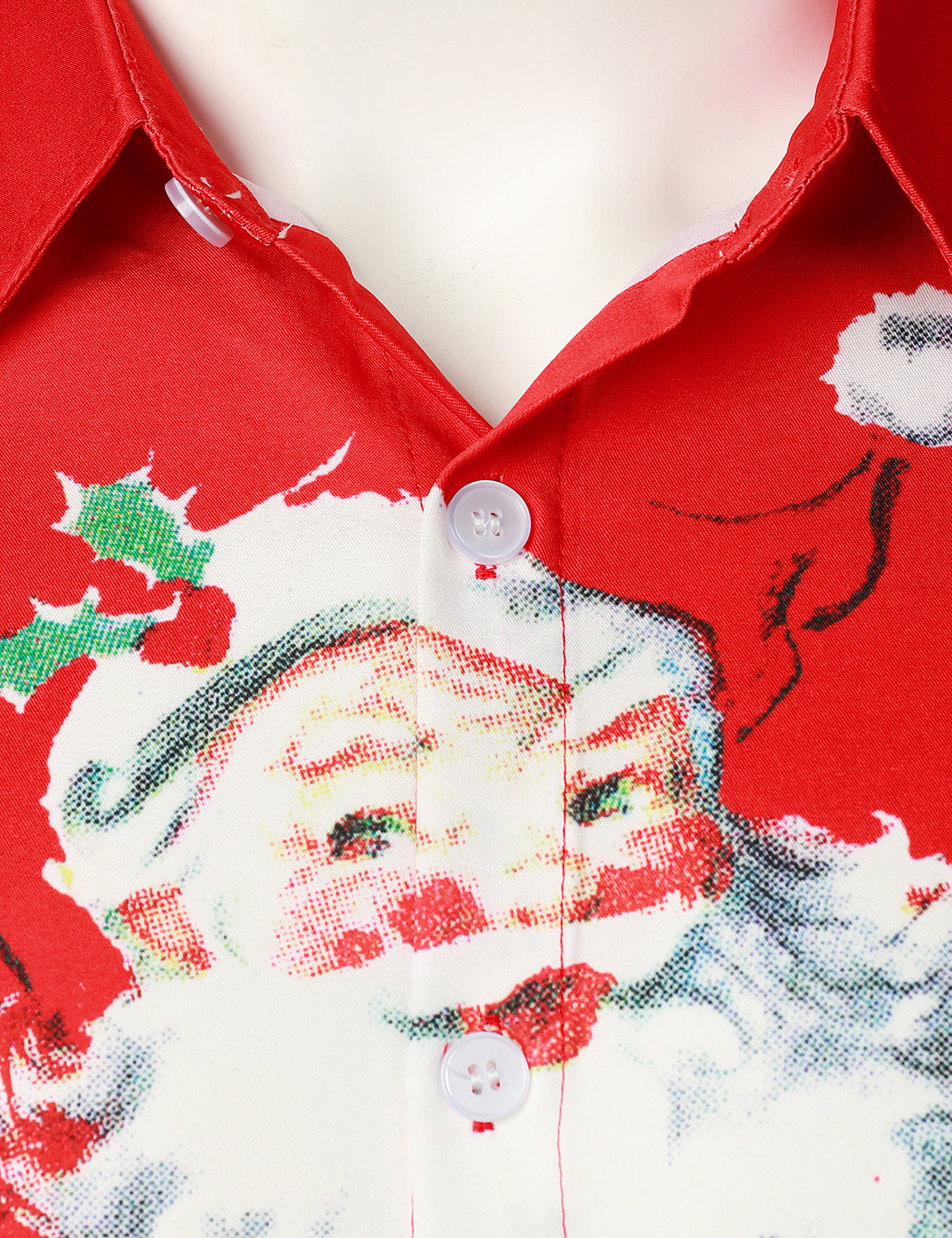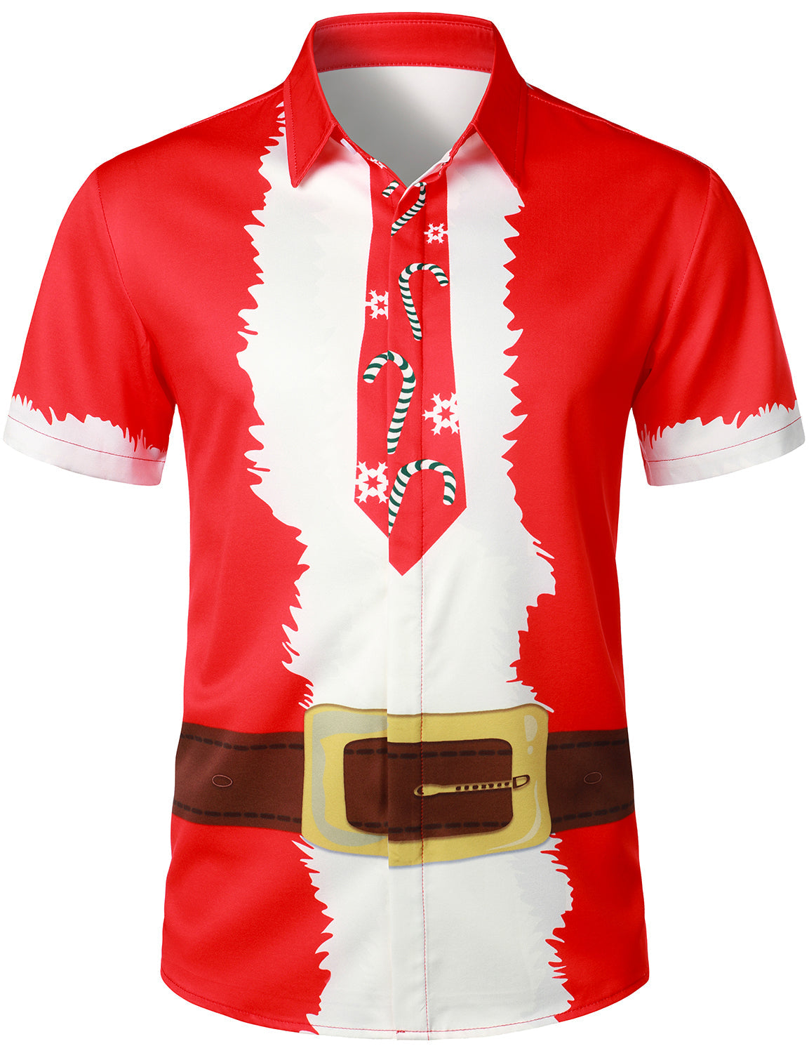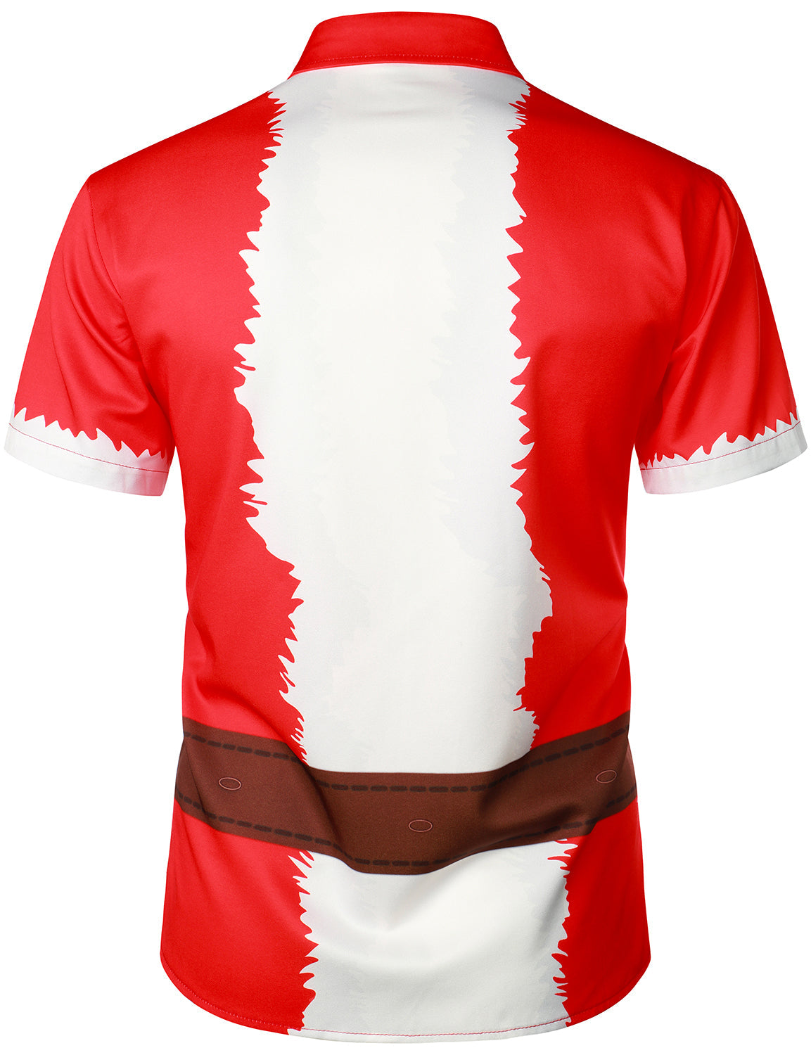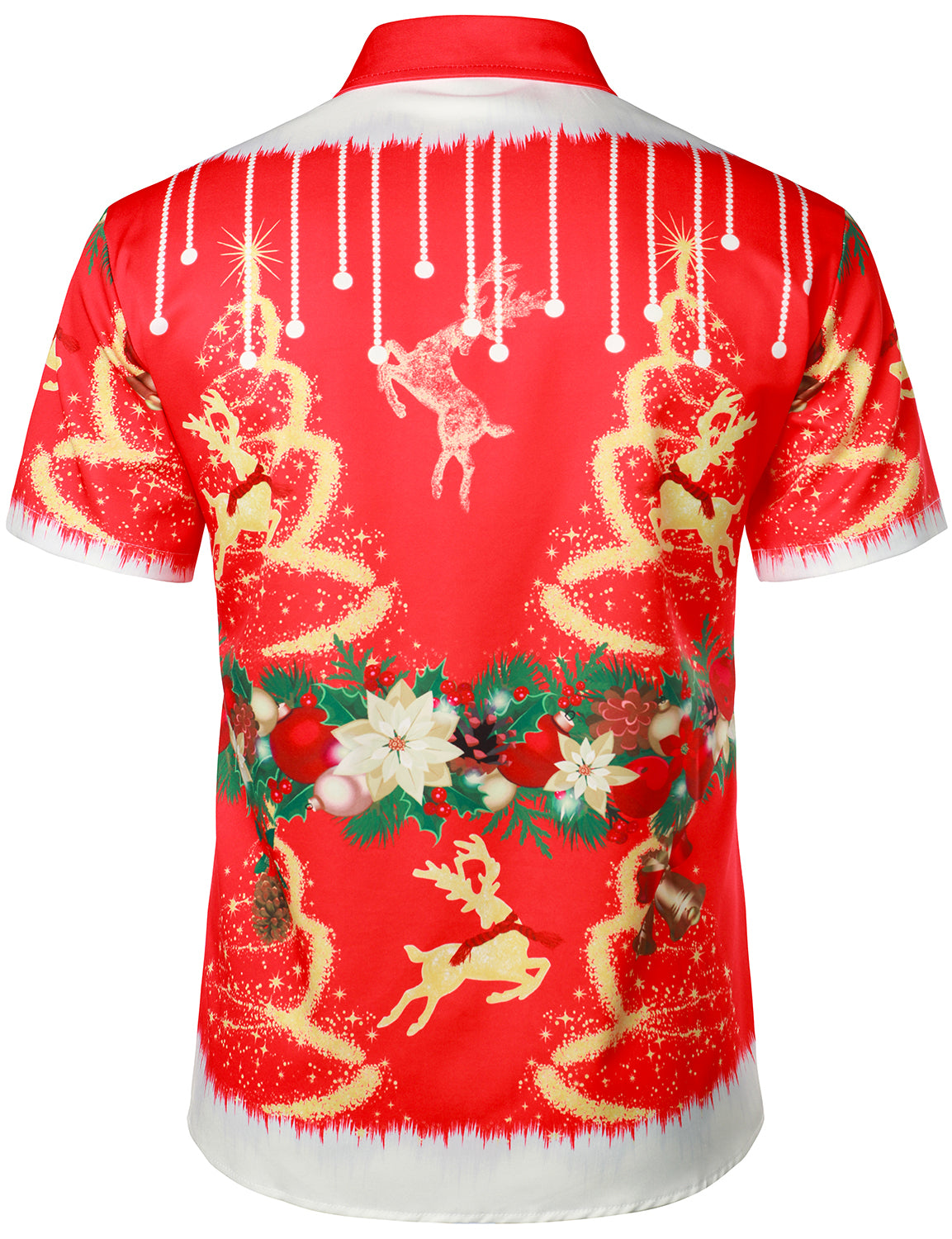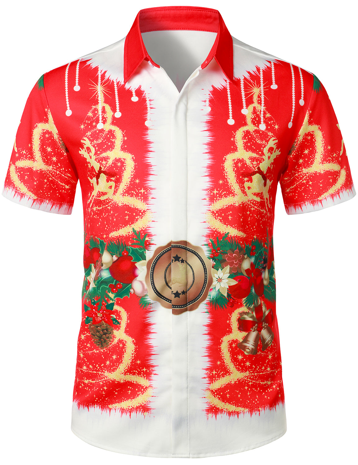 Men's Vintage Christmas Themed Costume Red Funny Lapel Short Sleeve Shirt