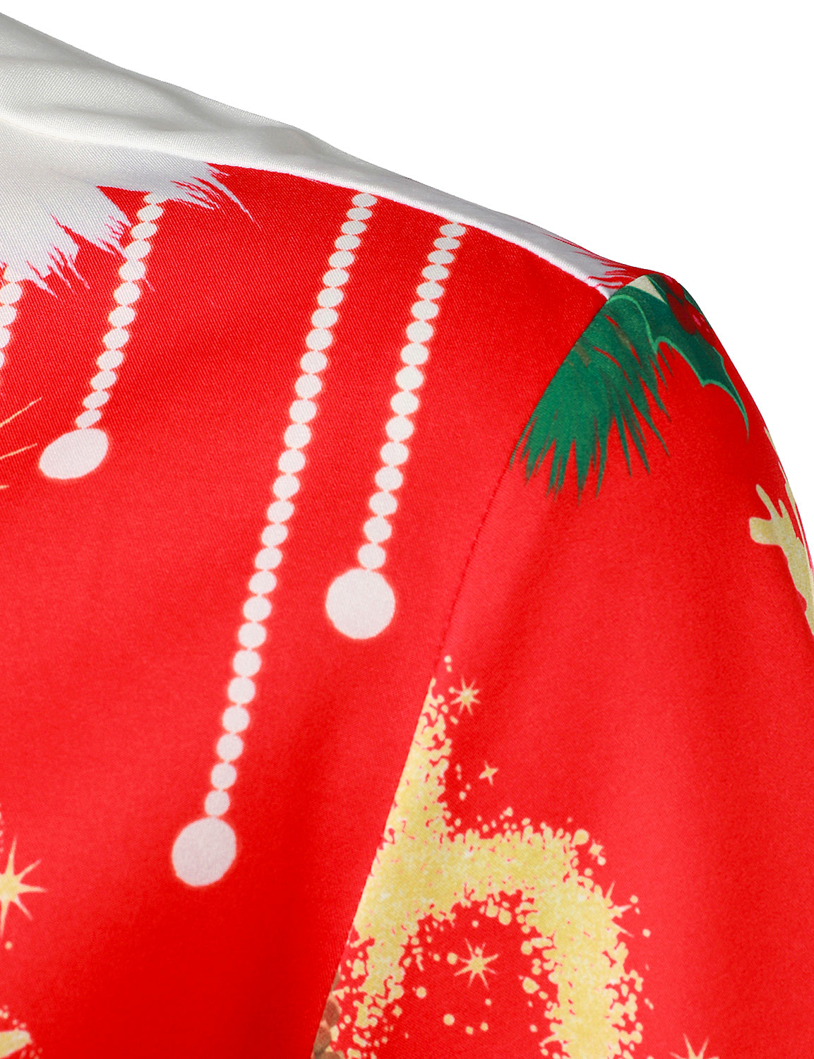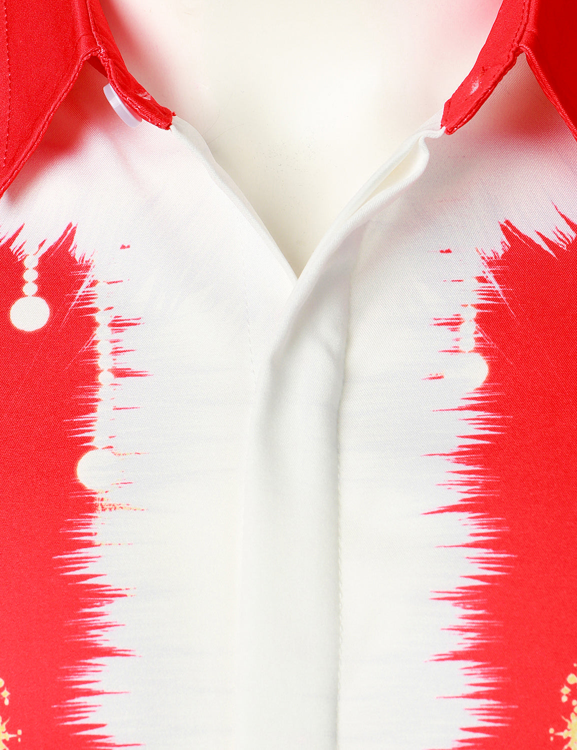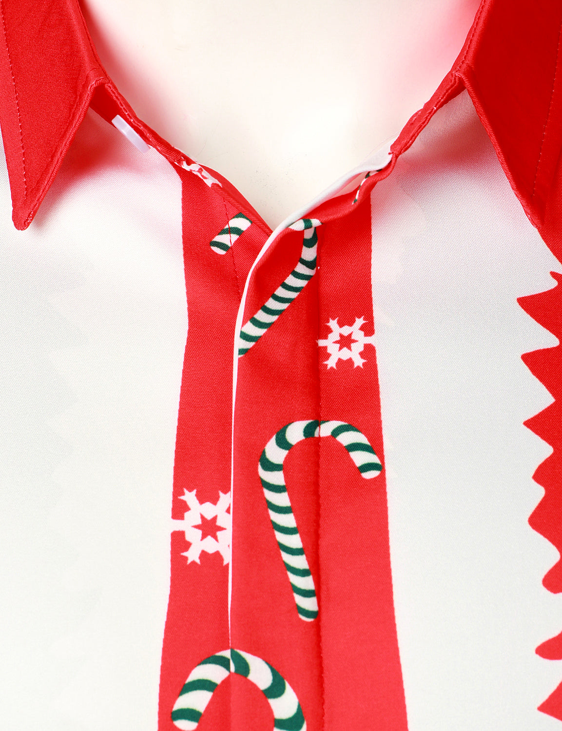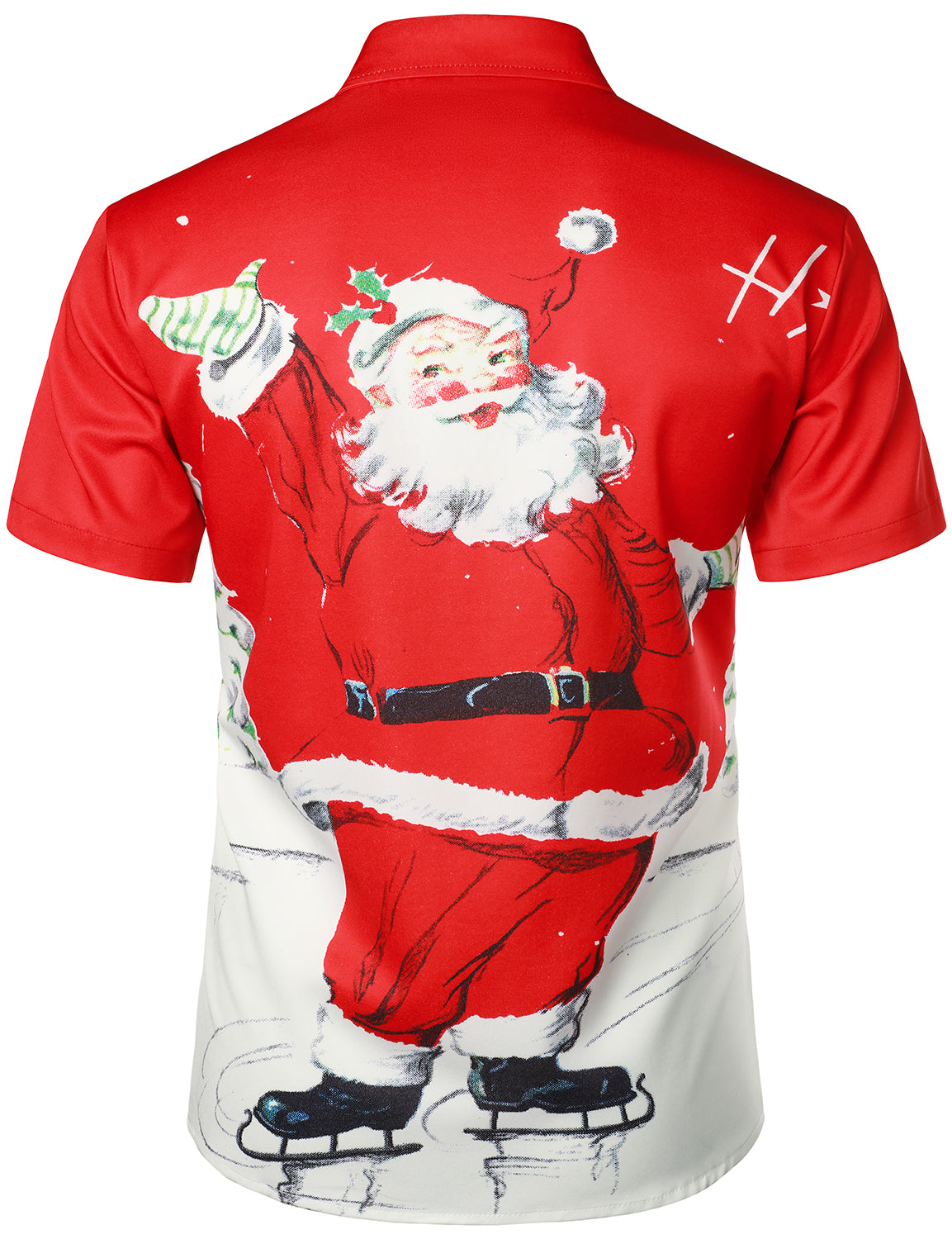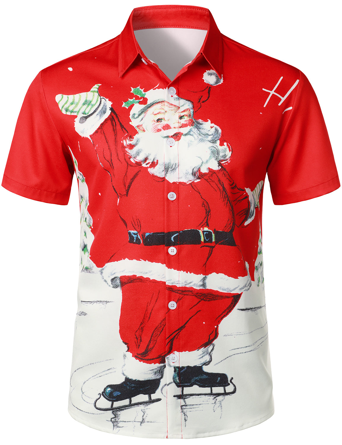 Men's Vintage Christmas Themed Costume Red Funny Lapel Short Sleeve Shirt