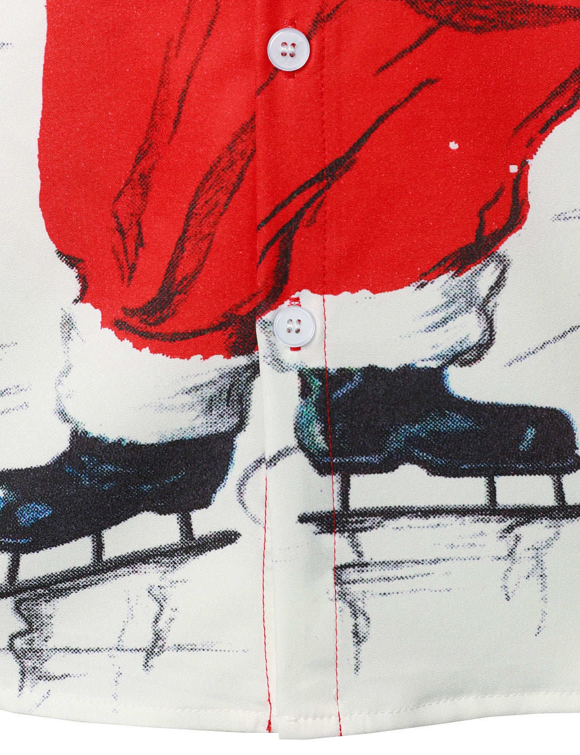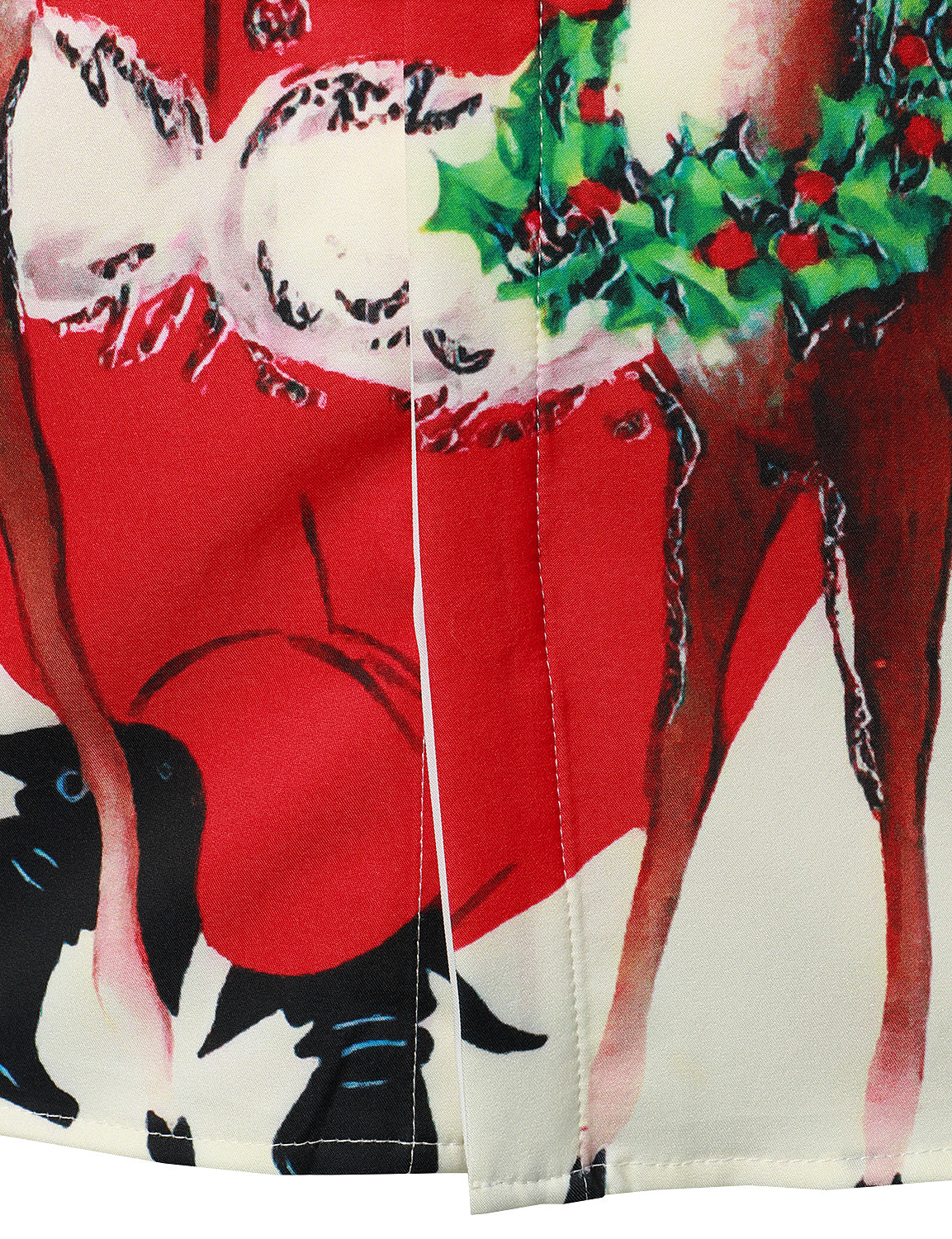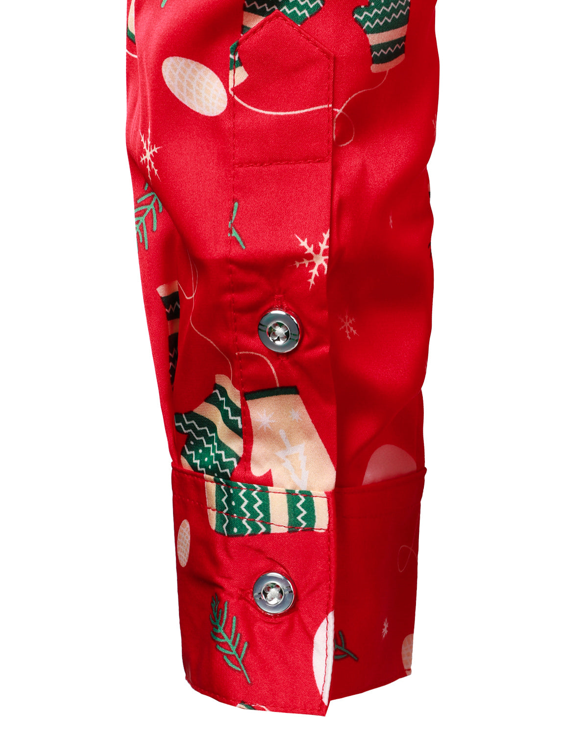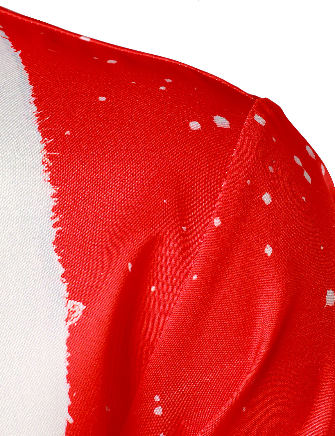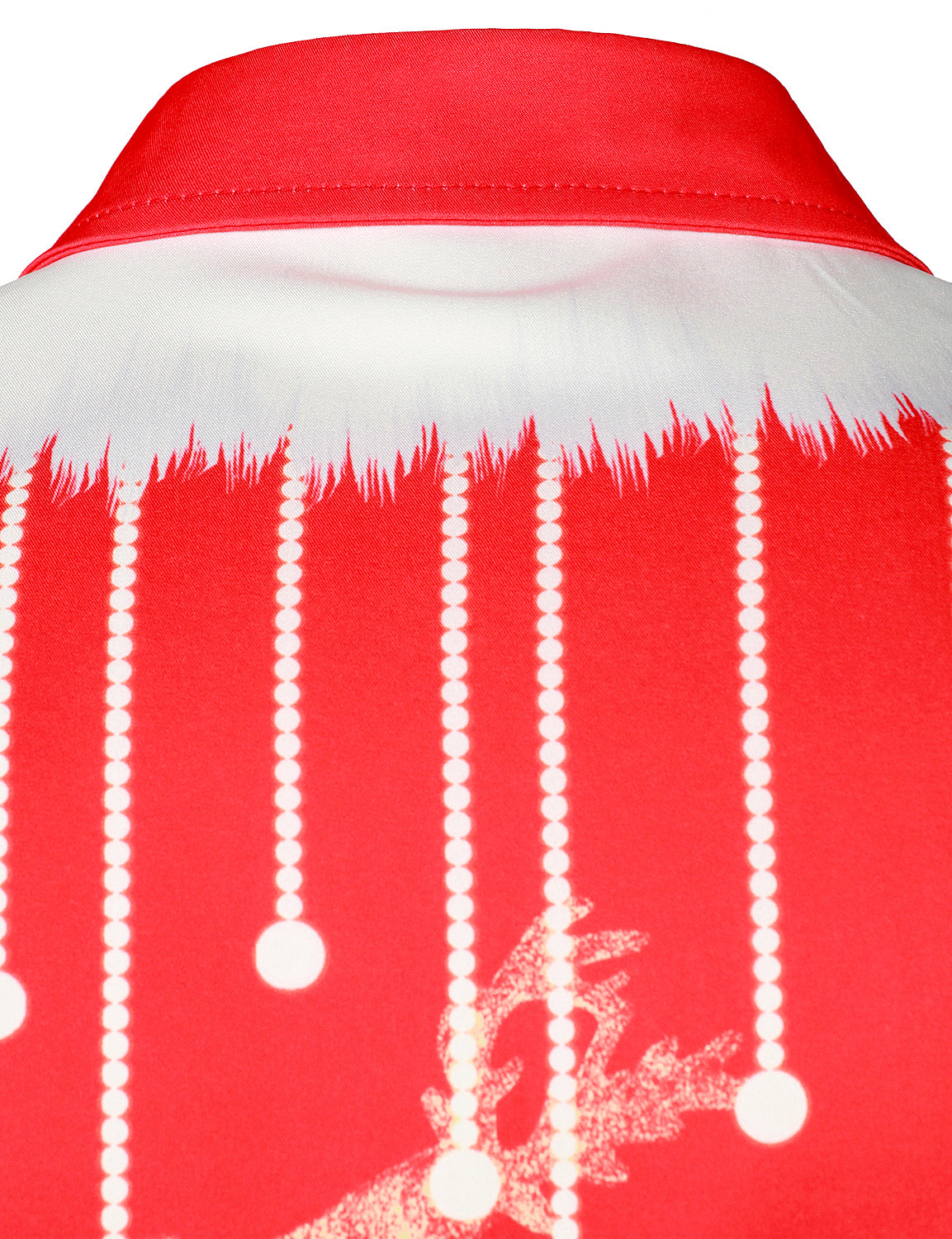 Men's Vintage Christmas Themed Costume Red Funny Lapel Short Sleeve Shirt