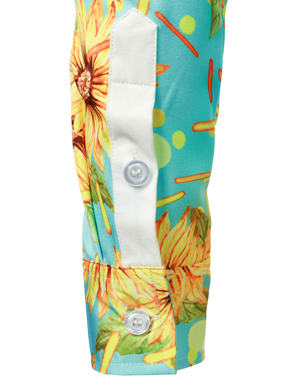 Men's Holiday Party Disco Champagne Fireworks Print Long Sleeve Button Down Shirt