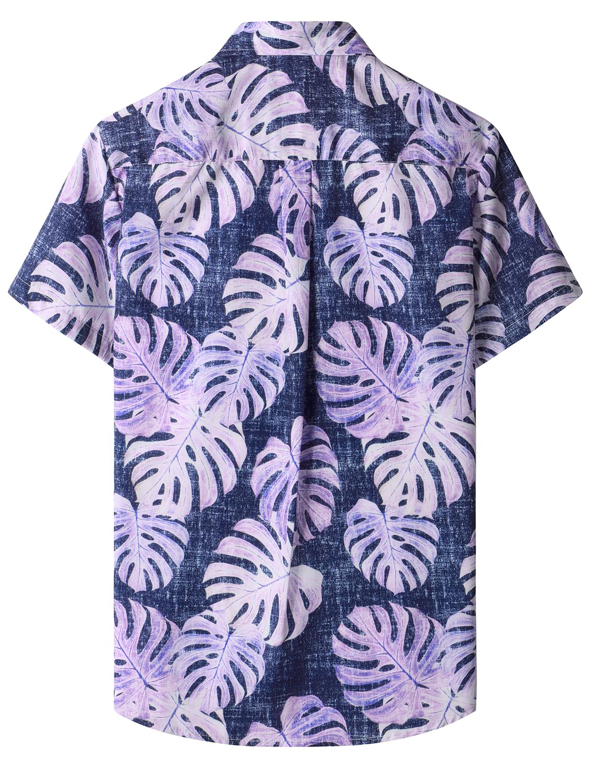 Men's Purple Hawaiian Casual Pocket Tropical Plant Print Button Up Beach Short Sleeve Shirt