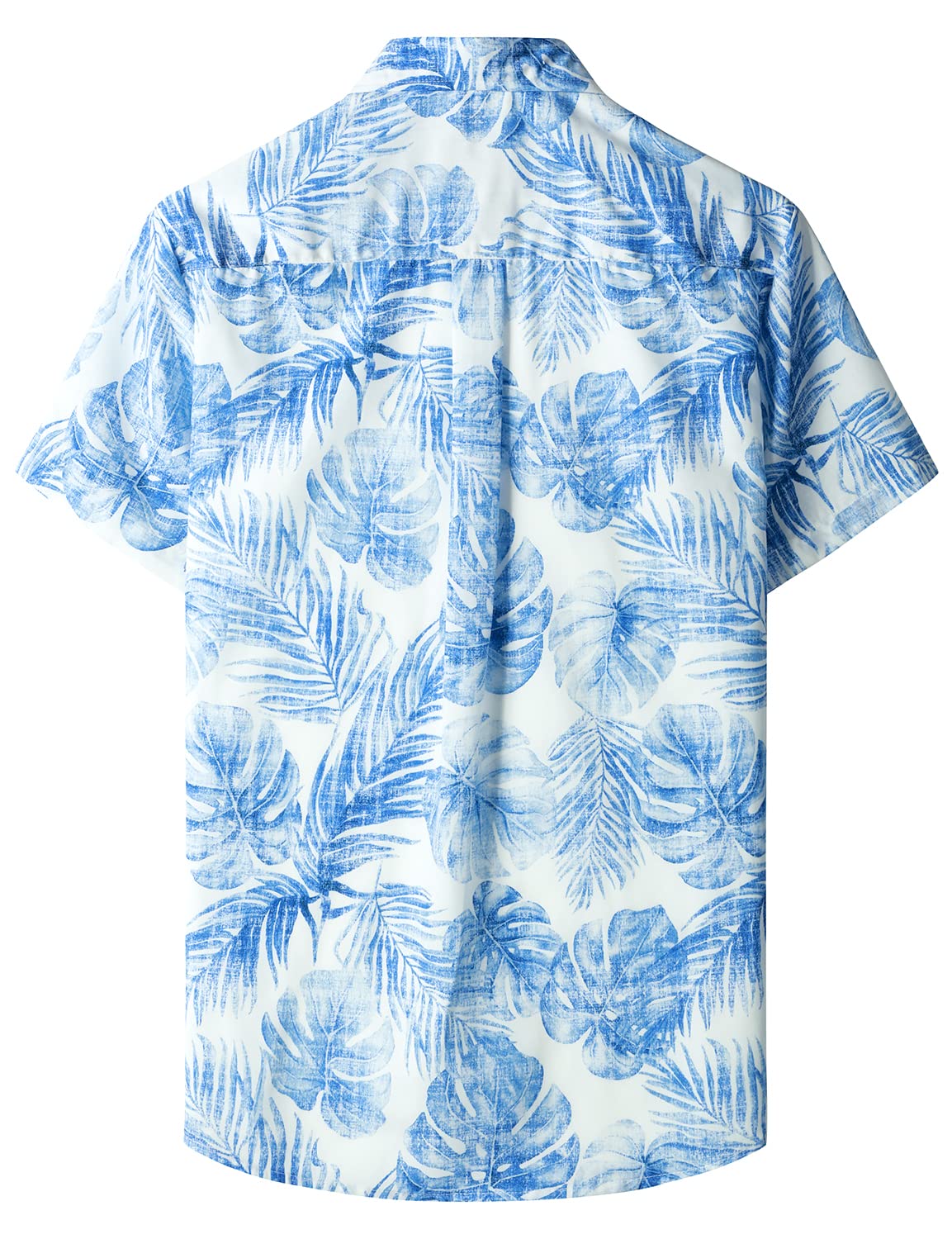 Men's Blue Hawaiian Casual Pocket Tropical Plant Print Vacation Button Short Sleeve Shirt