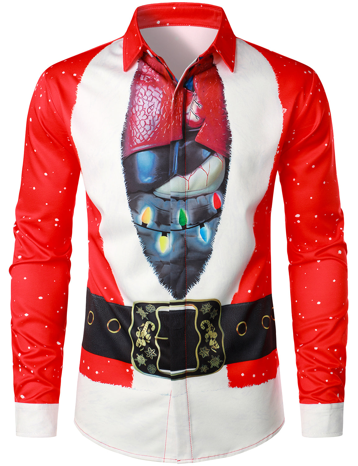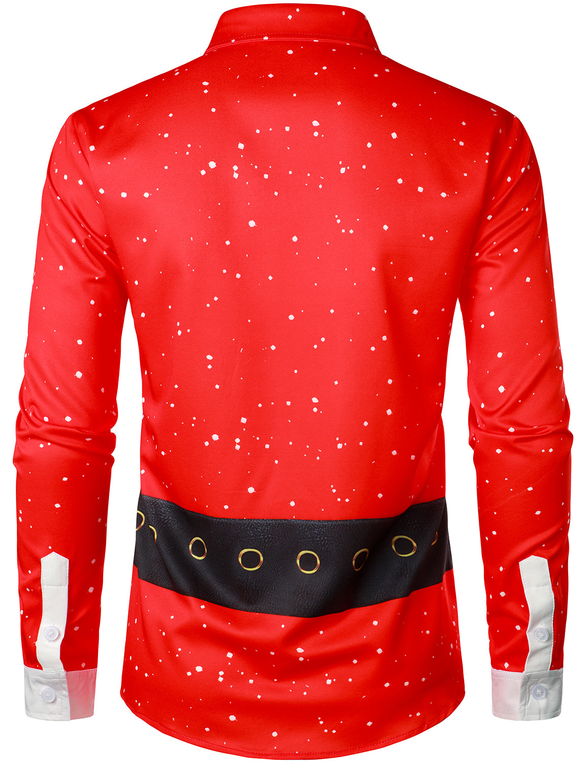 Men's Red Christmas Belt Print Holiday Top Santa Claus Funny Long Sleeve Shirt