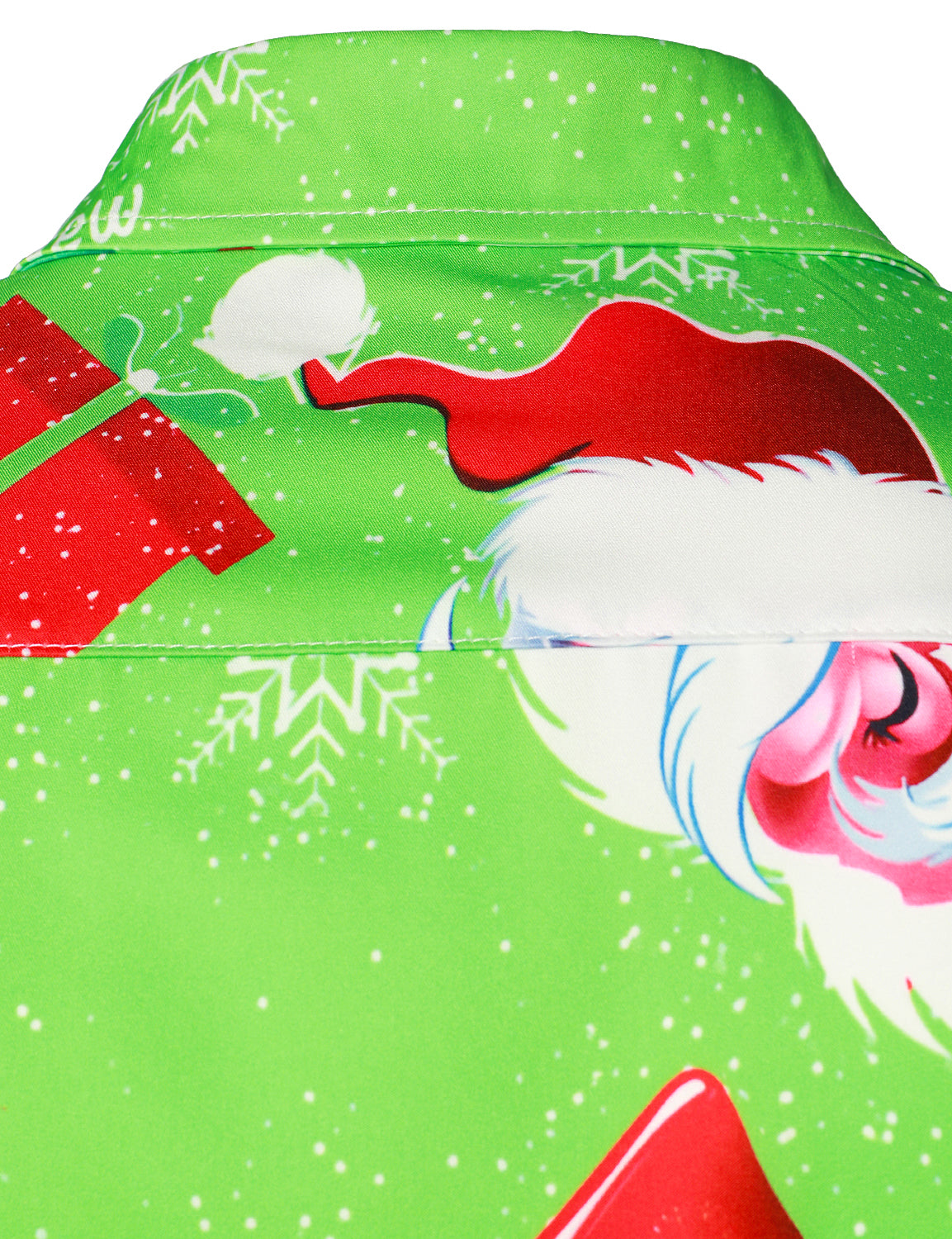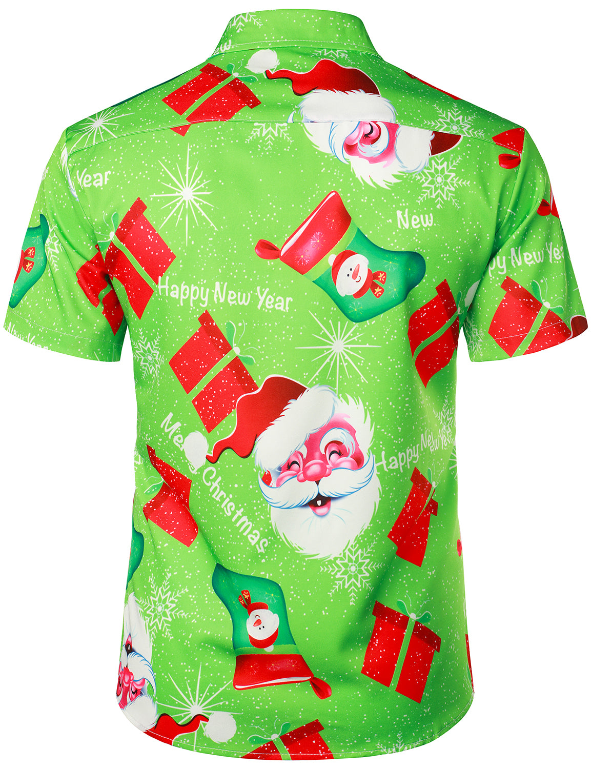 Men's Green Ugly Christmas Santa Print Claus Short Sleeve Shirt