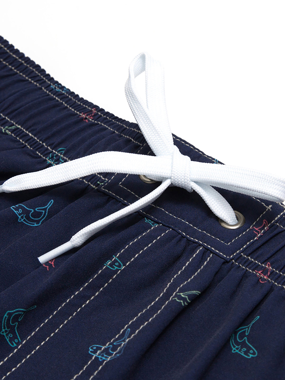 Men's Whale Print Animal Casual Beach Navy Blue Shorts Swimming Trunks