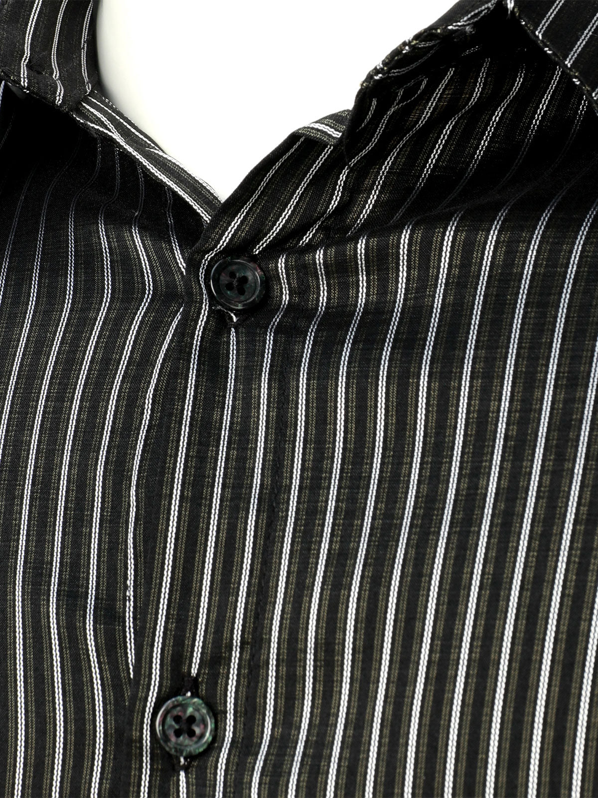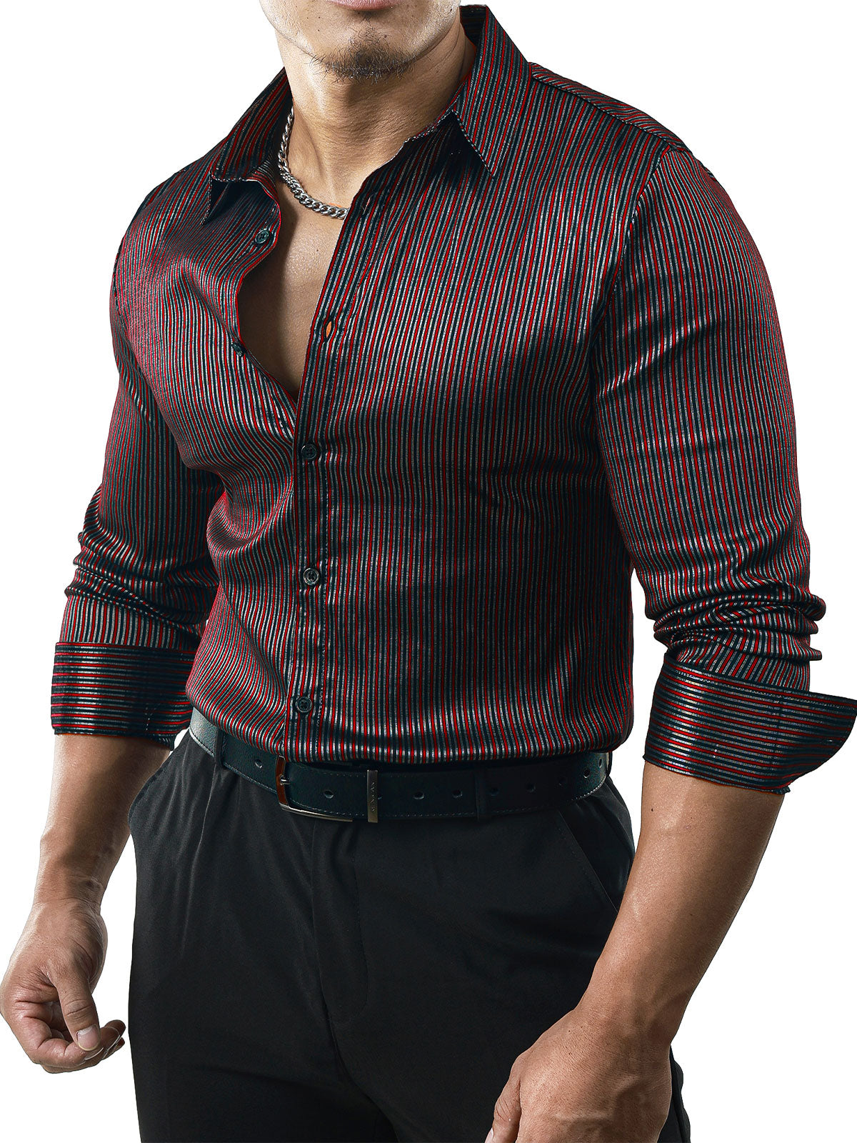 Men‘s Striped Textured Satin Party Slim Fit Wrinkle-Free Button Long Sleeve Shirt