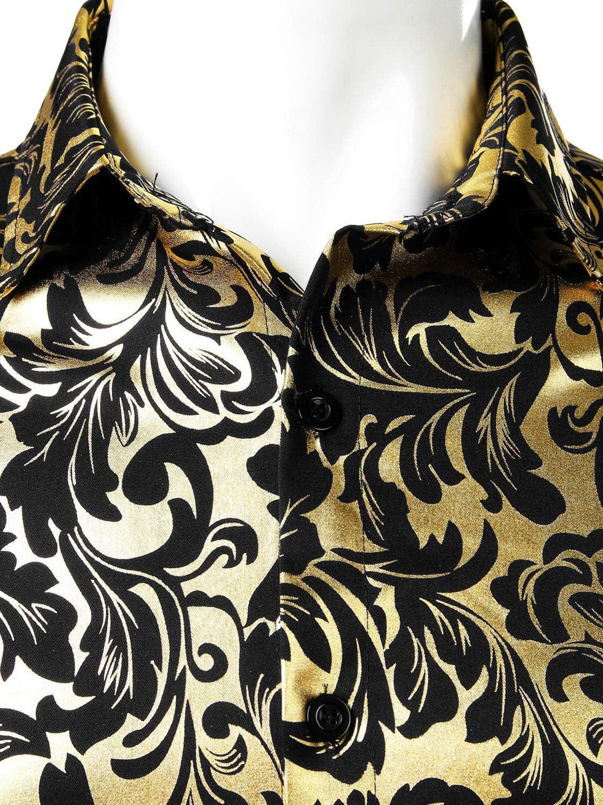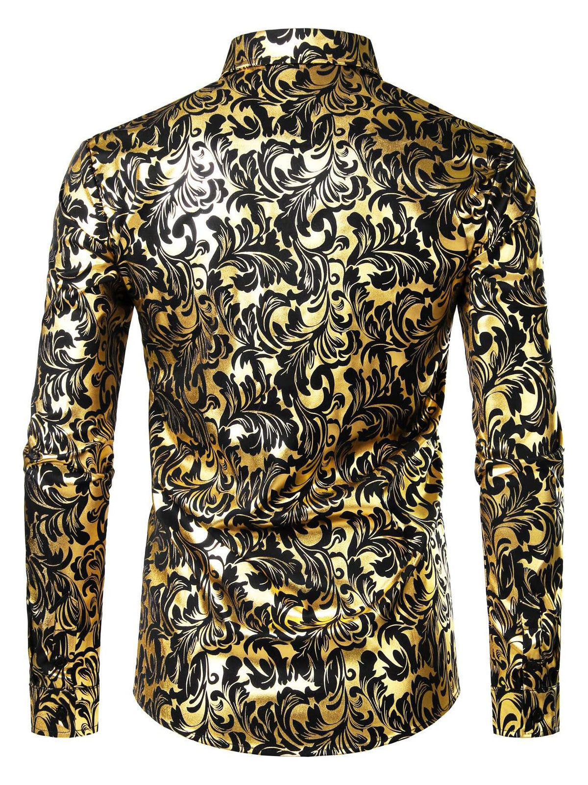 Men's Luxe Paisley Shiny Black & Golden Button Down Shirt