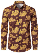 Men's Thanksgiving Turkey Brown Cotton Long Sleeve Shirt
