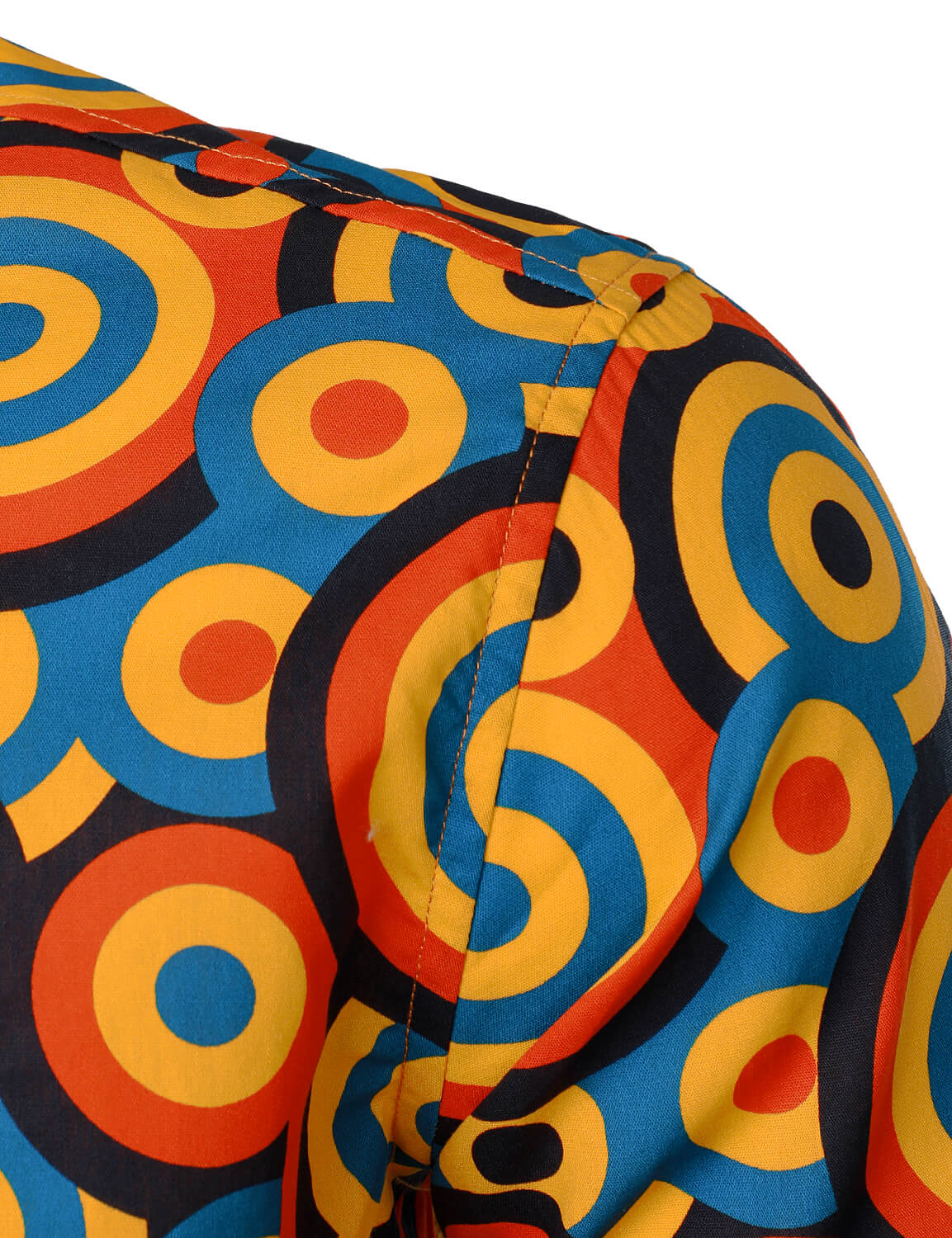 Bundle Of 2 | Men's Orange 70s Retro Vintage Geometric Circle Long Sleeve Shirt & Disco Slim Fit Retro Flared Trousers